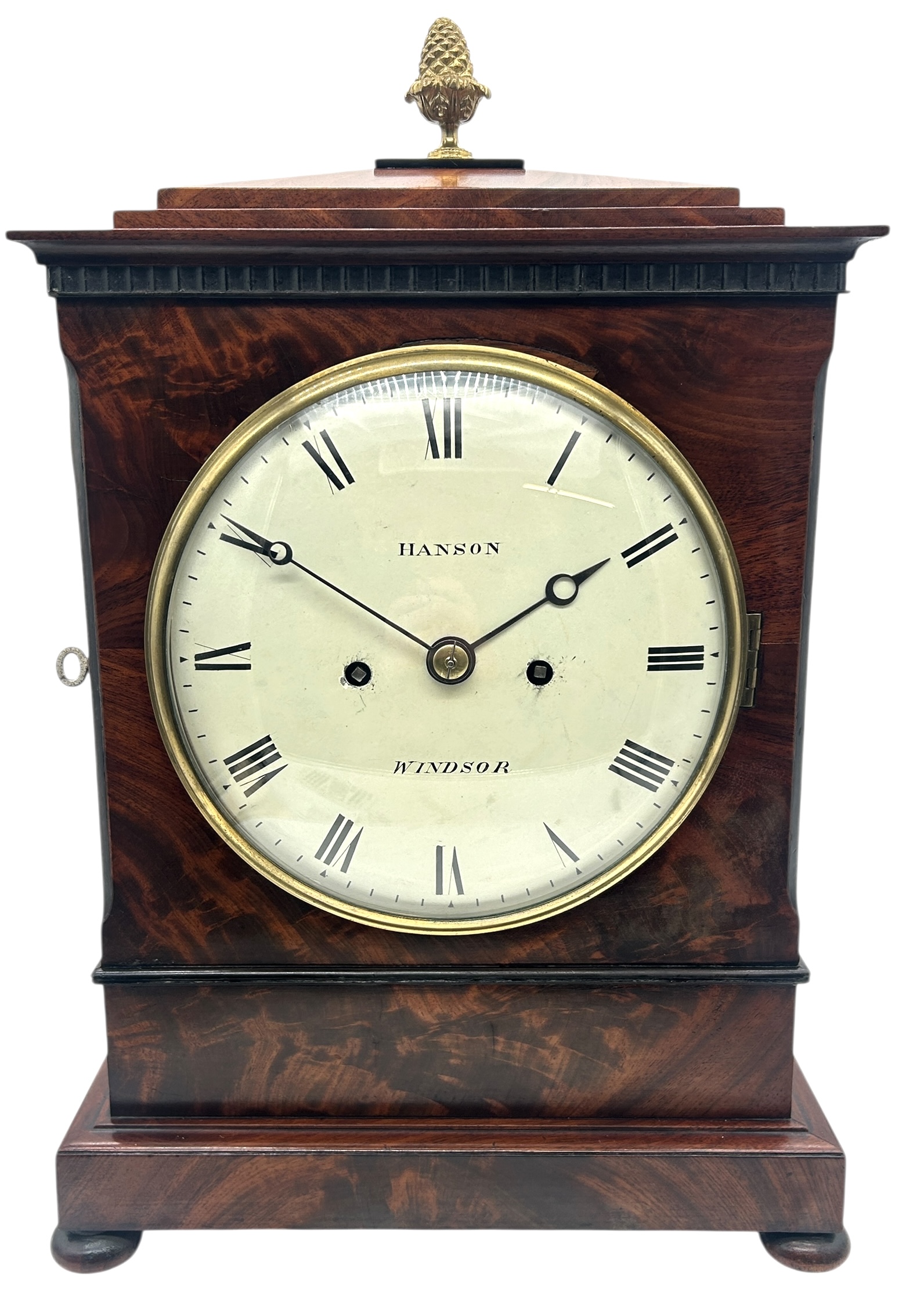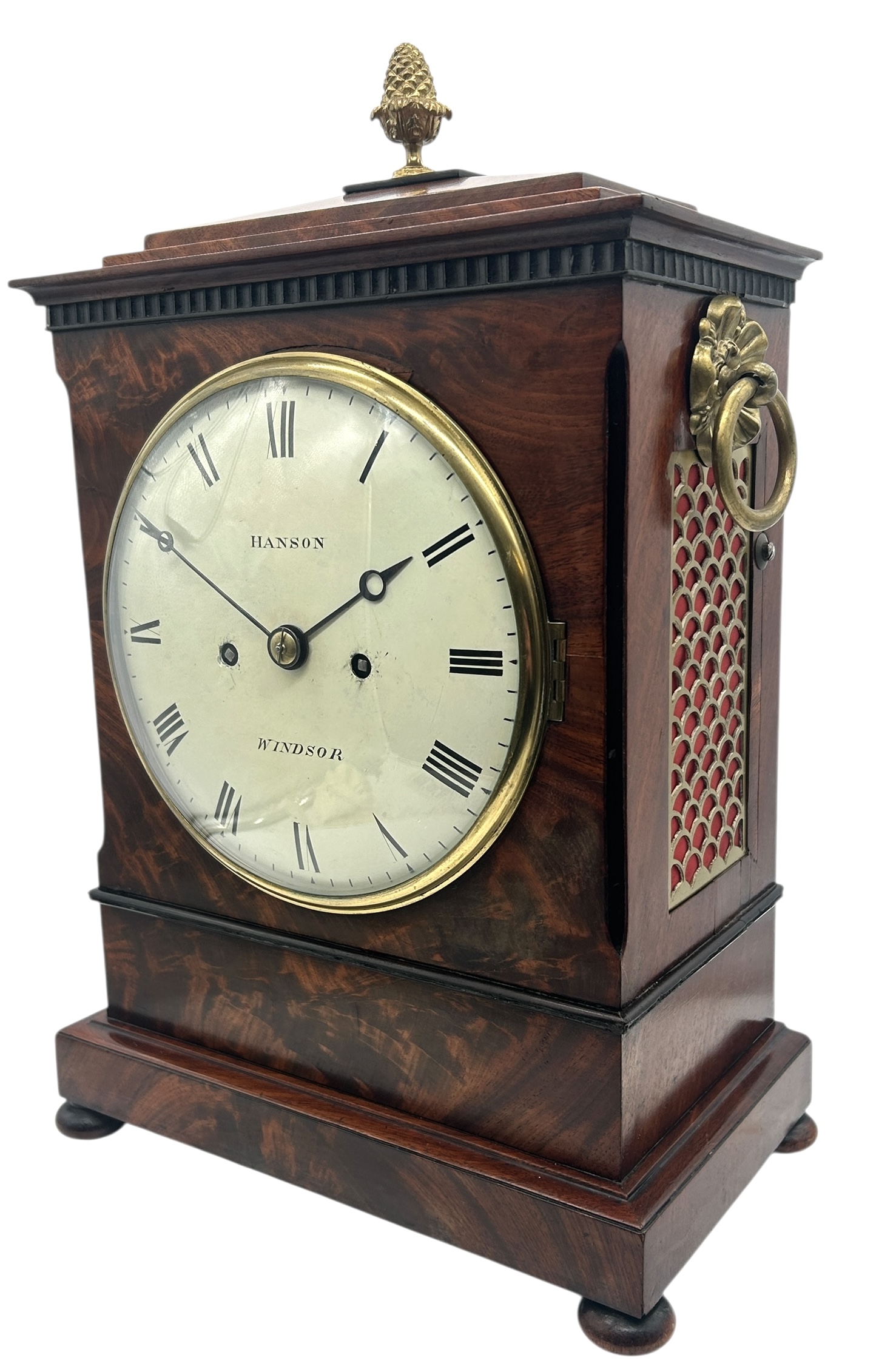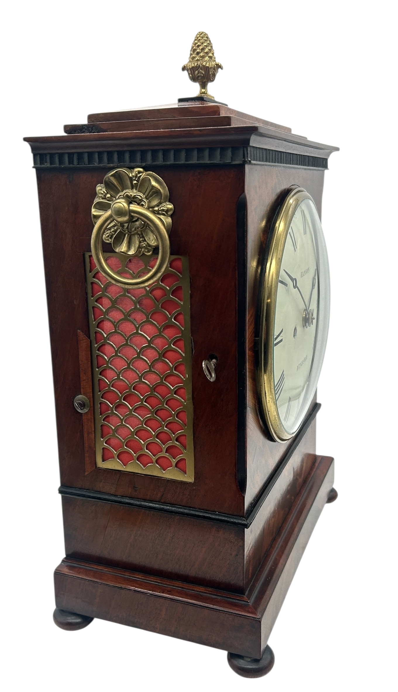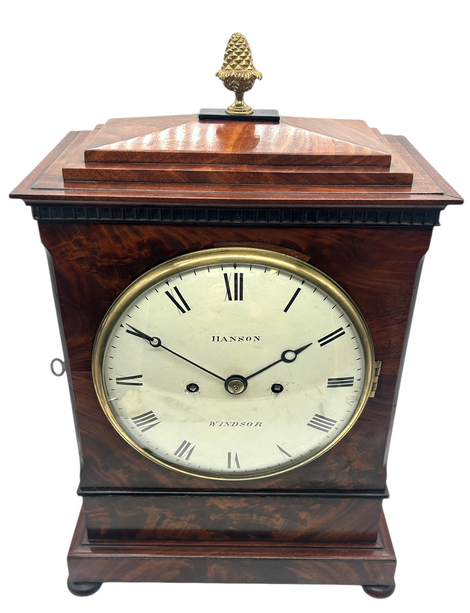 Superb Flame Mahogany English Bracket Clock – Double Fusee Mantel Clock by Hanson of Windsor