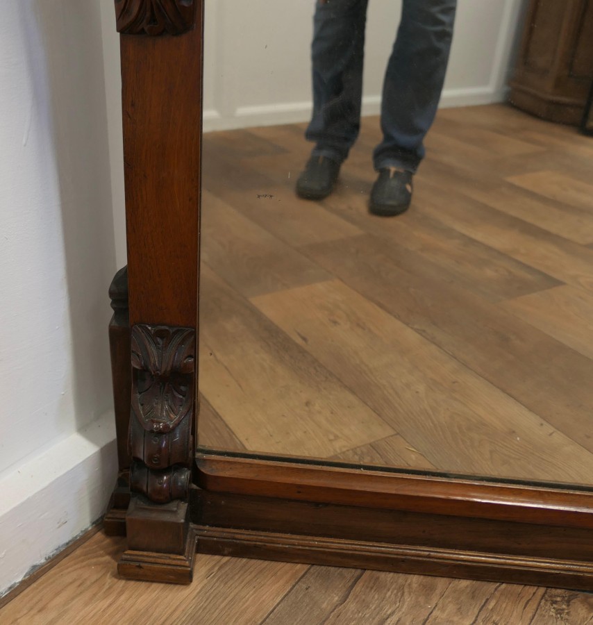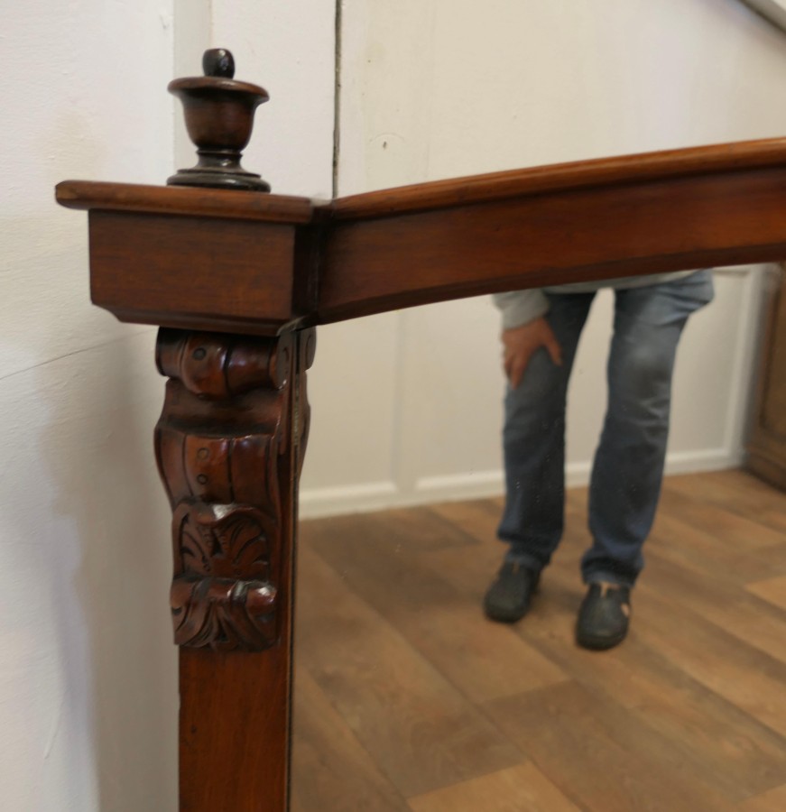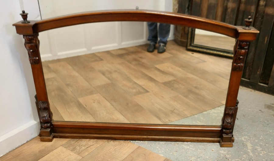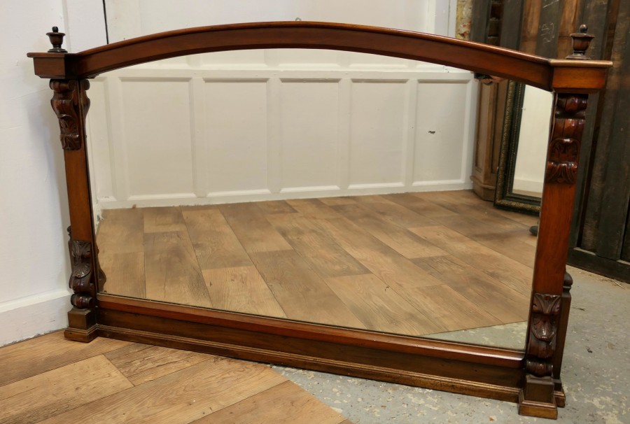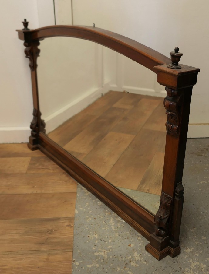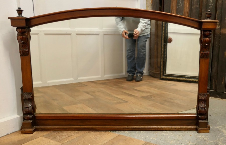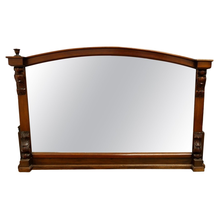A Superb Large Carved Walnut Overmantel Mirror This is a Striking piece it has a rectangular shape with a curved top, on each side there is carving both top and bottom with leaves The mirror is in lovely red Walnut and would set off the decoration of any room all in good condition The Mirror is 32” high, 50” wide and it is 5” deep MS121 Manufacture Date : 19th Century Materials : Walnut
