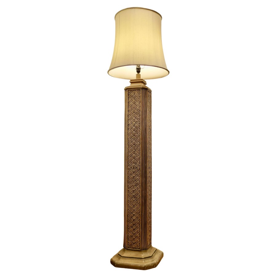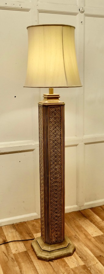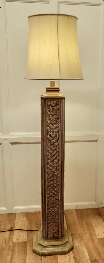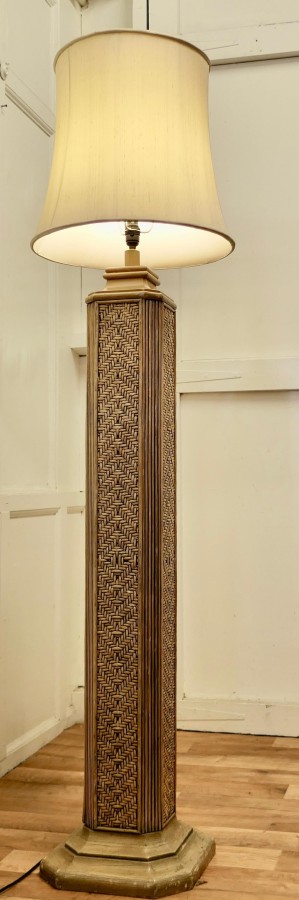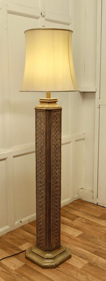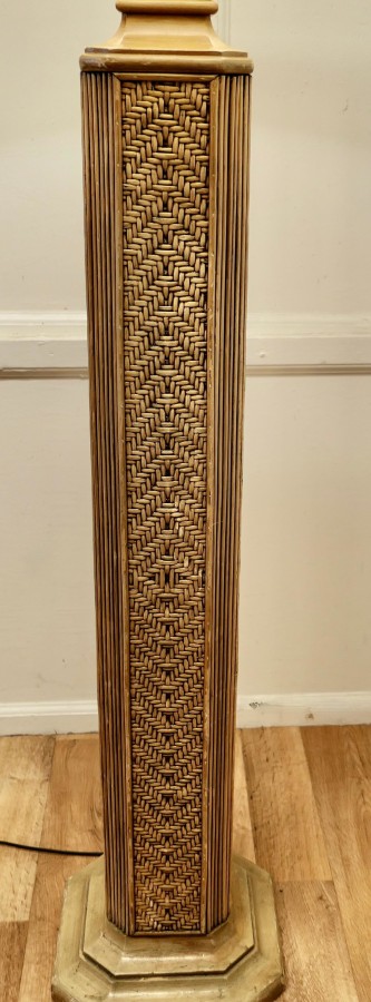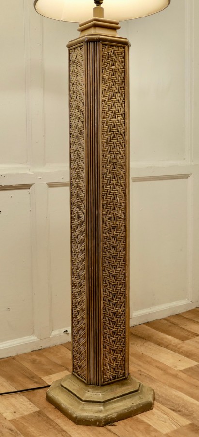 Tall Art Deco Bamboo Cane Column Floor Lamp