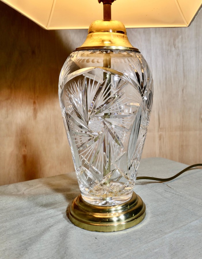 Tall Hand Star Cut Glass and Brass Table Lamp This is a very pretty piece