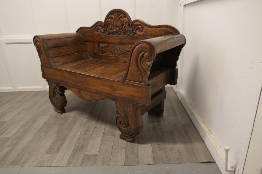 Teak Carved Settee, Bench