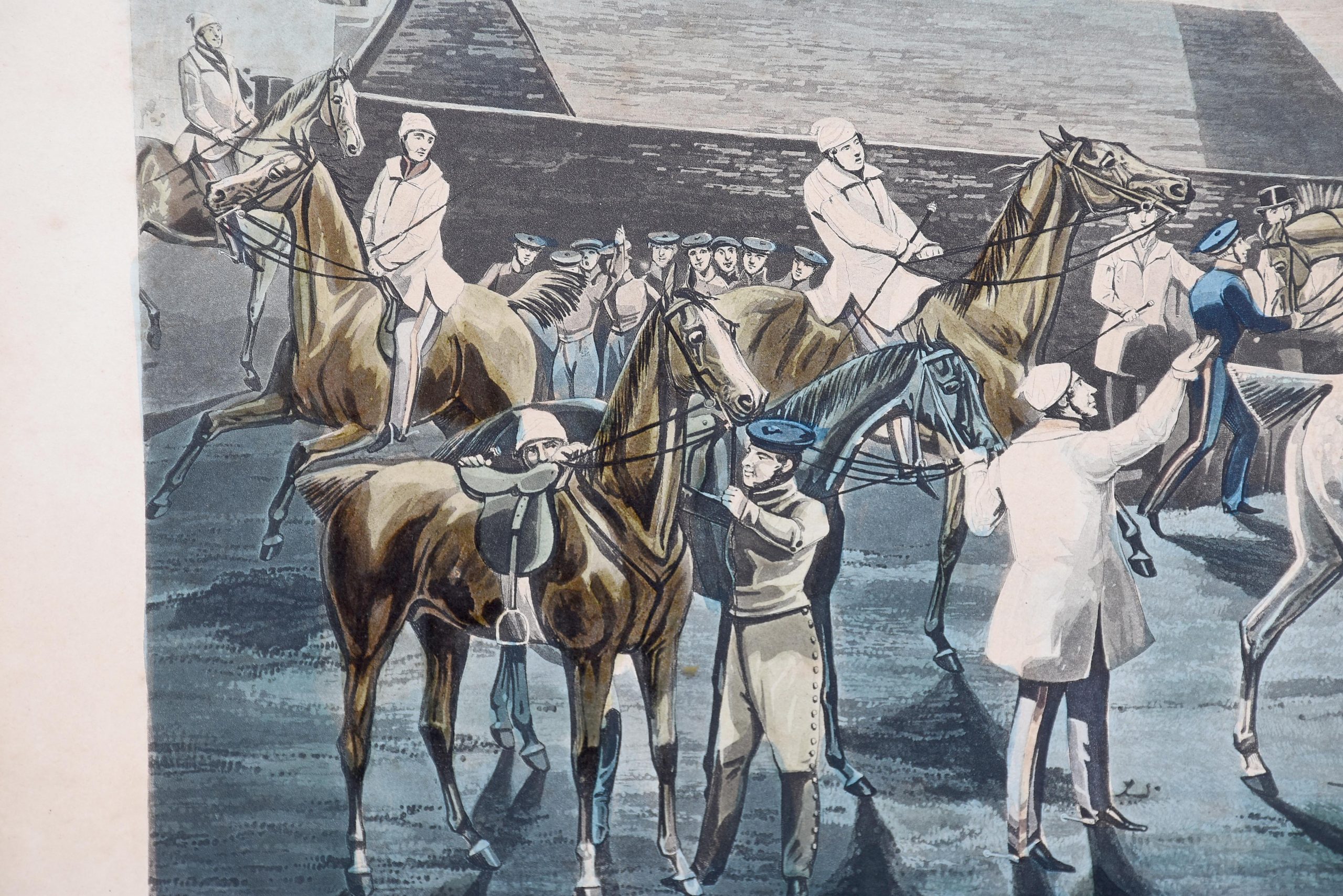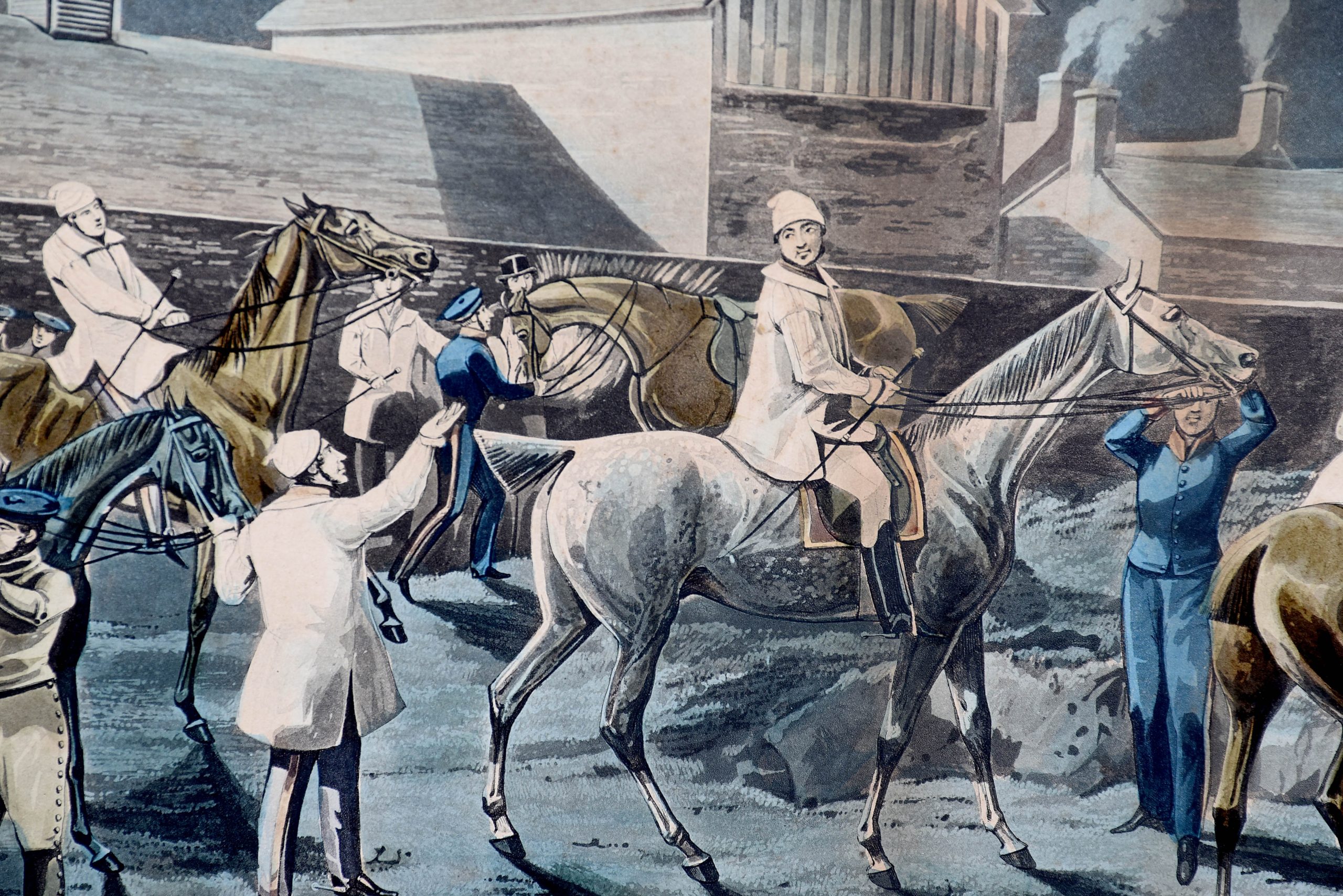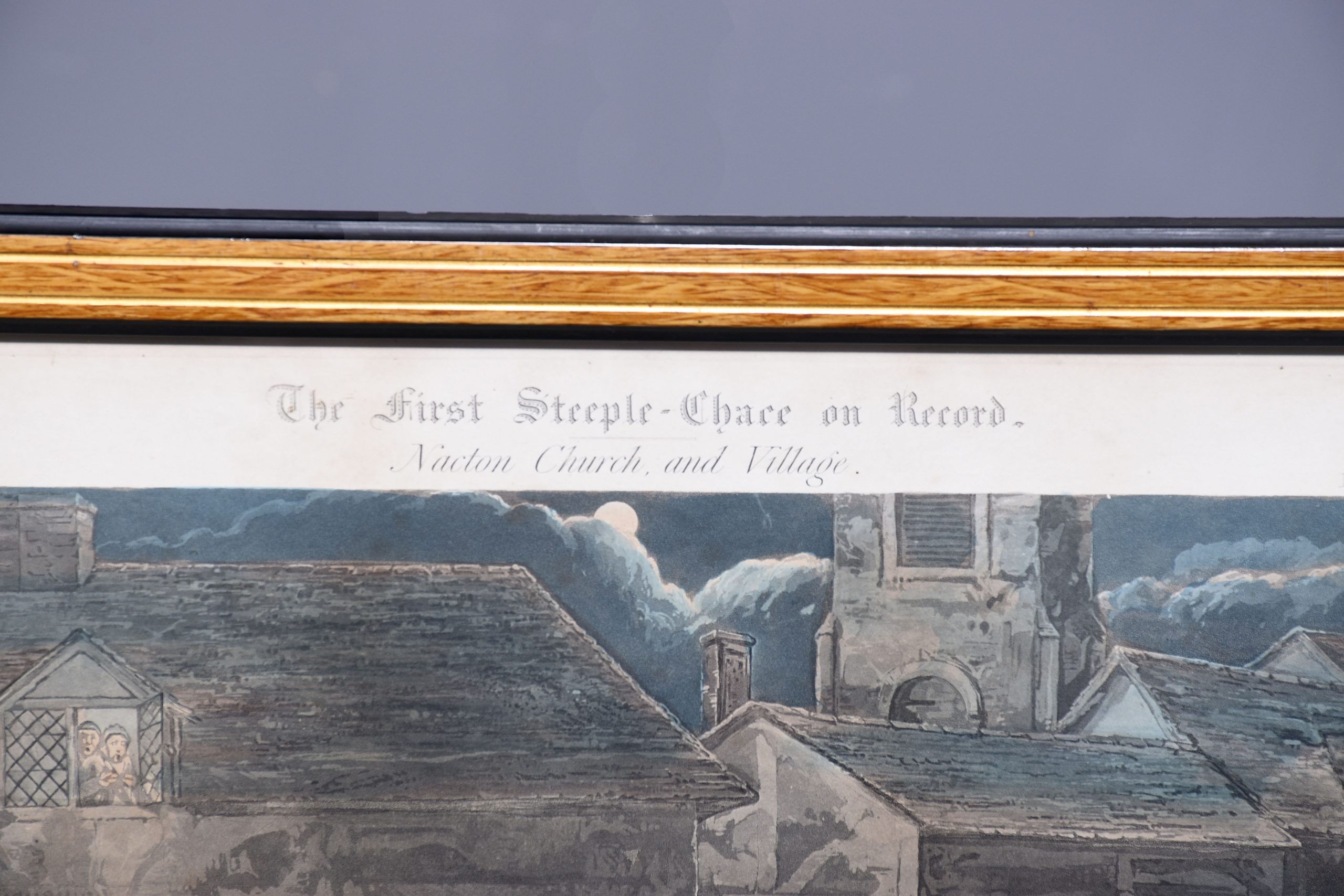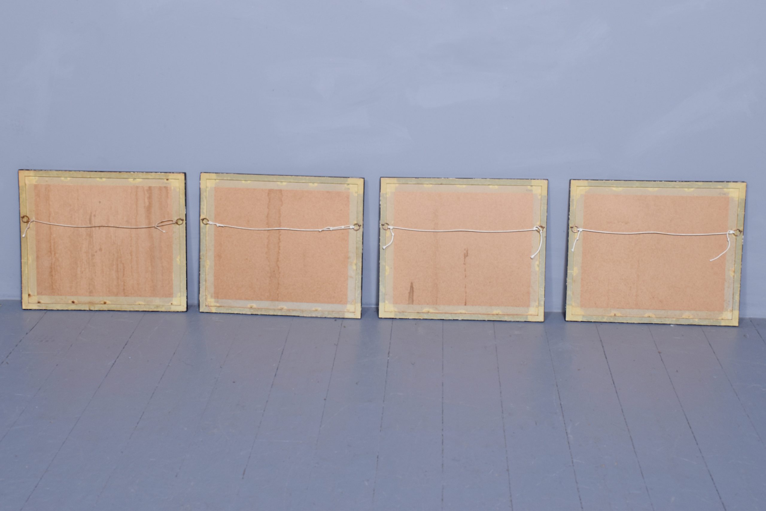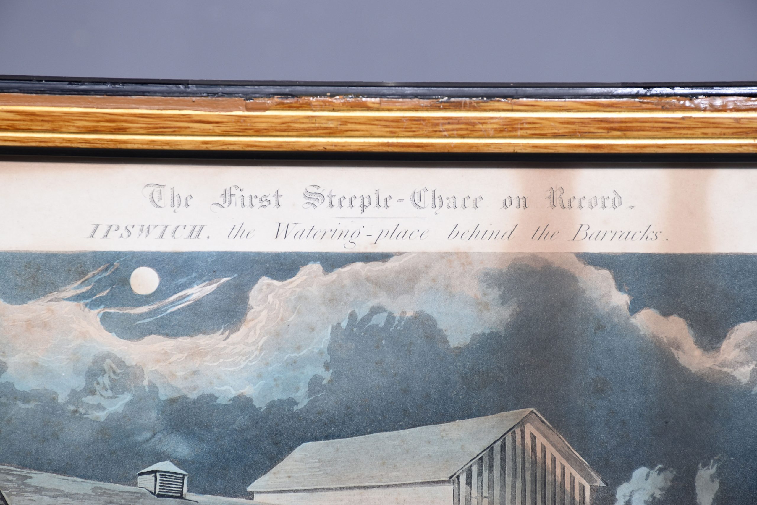 A set of 4 original hand coloured Aqua-prints after by ‘H. Aiken’ published 1st March 1862 by ‘Ben Brookes’, Oxford and engraved by ‘J. Harris’, the four plates with writing above and below the aqua-prints, all glazed and scumbled frames with two ribbed sections.