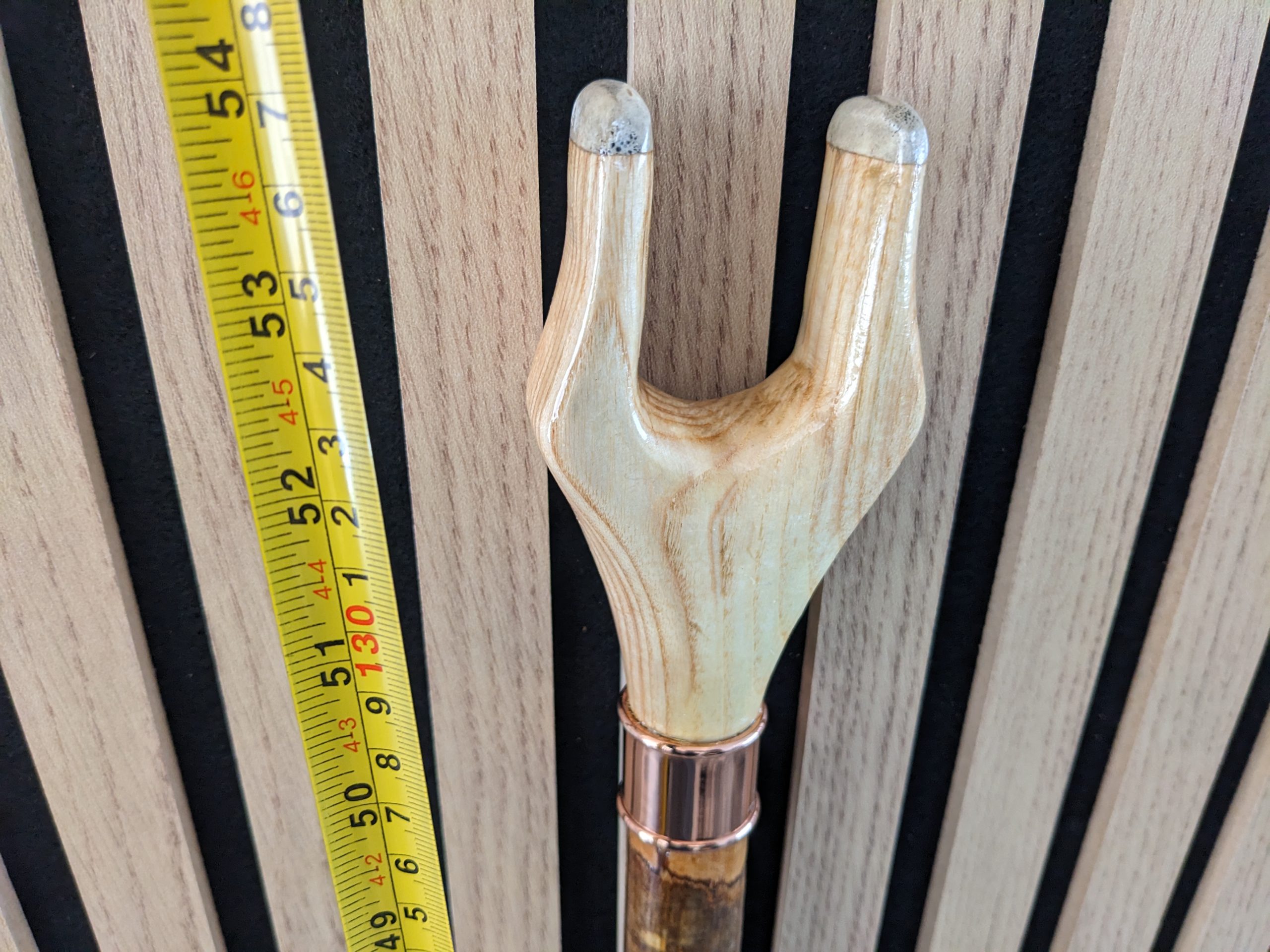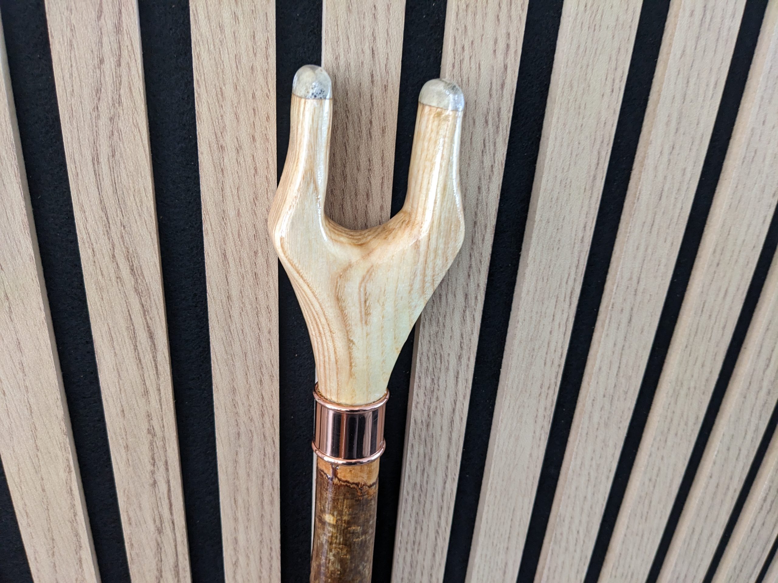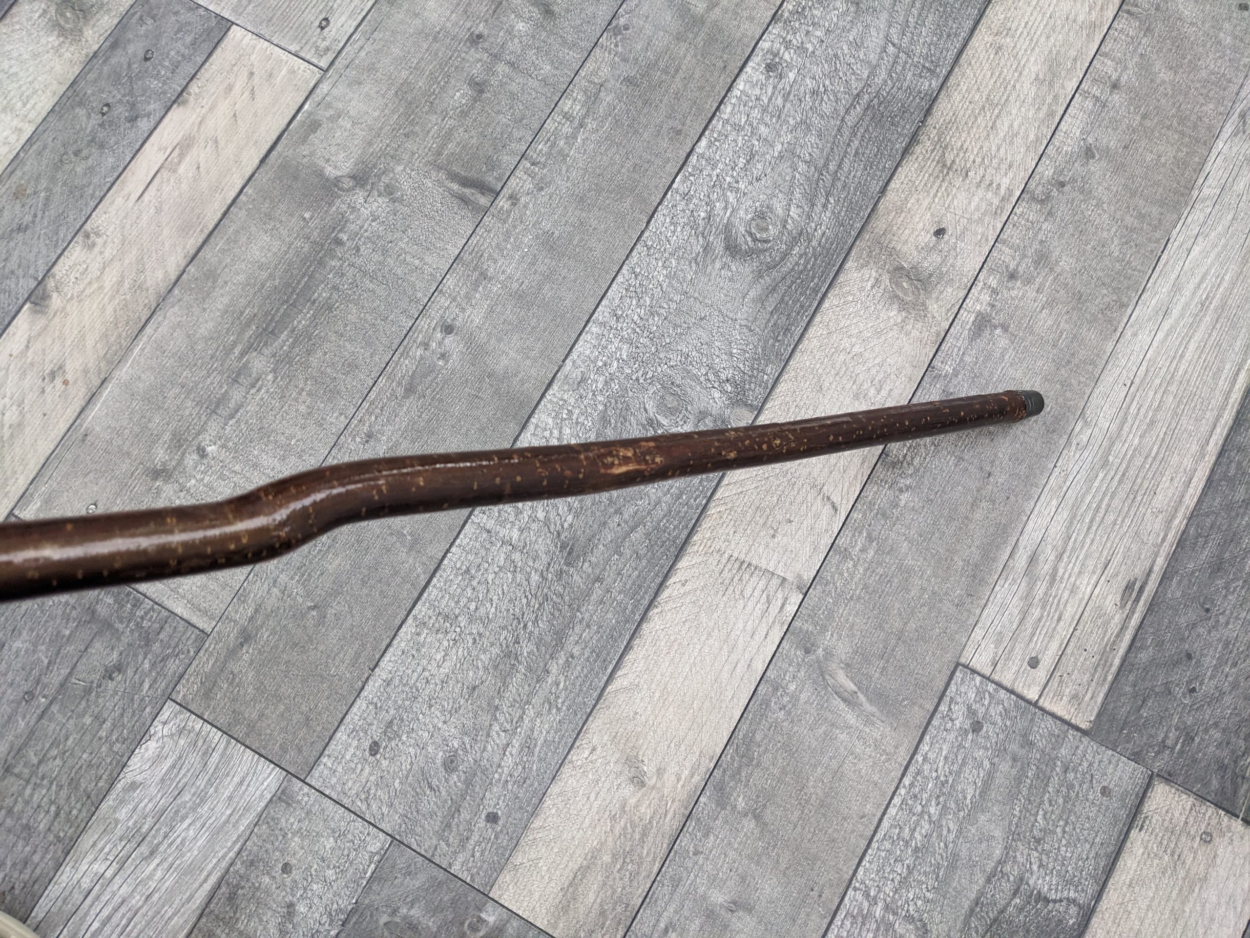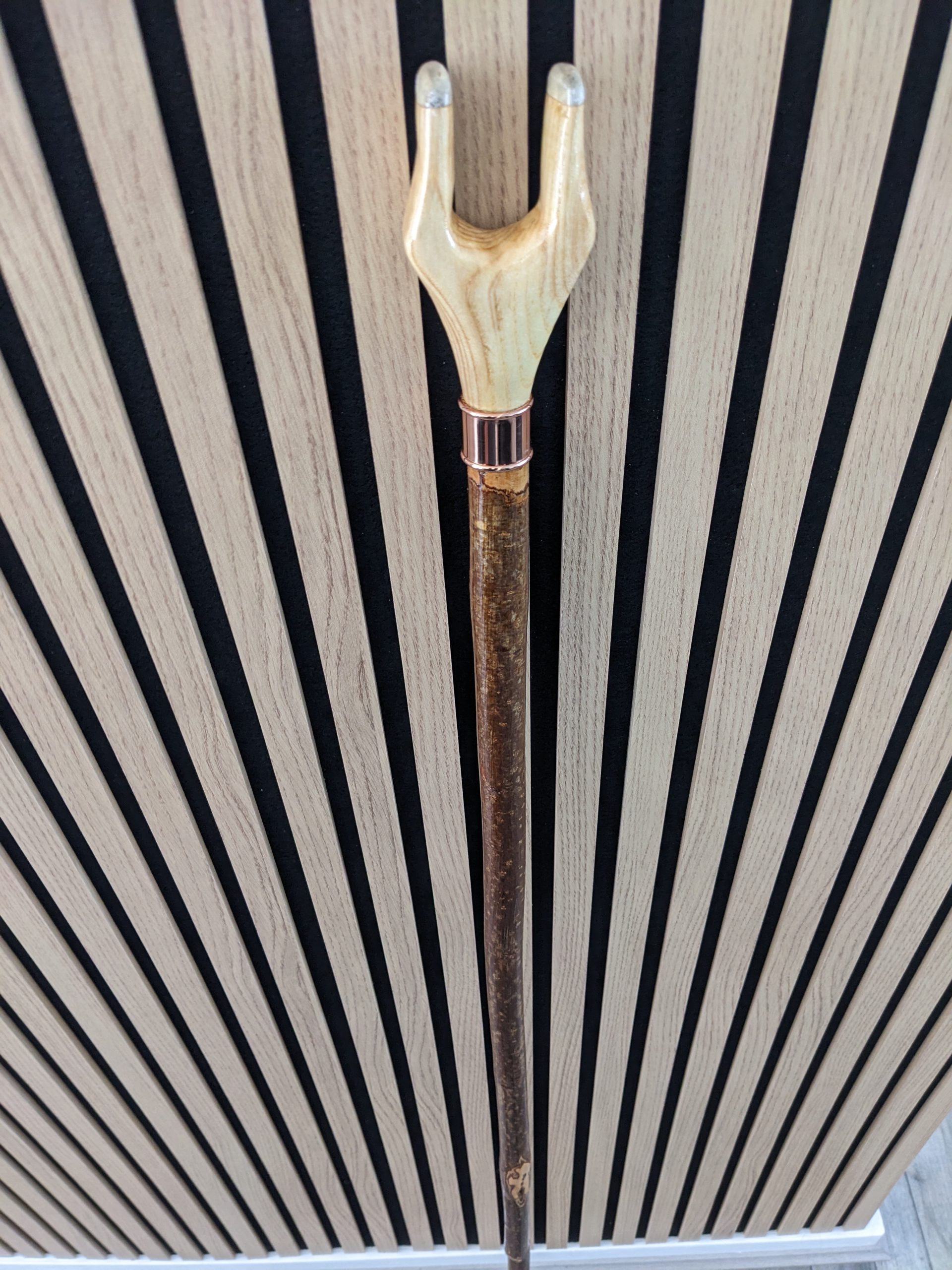 Very nice thumb stick hiking stick in ash with Stag horn tips on a very nice hazel shank lovely stick very strong and very light pp is £13.00 contact me for more information