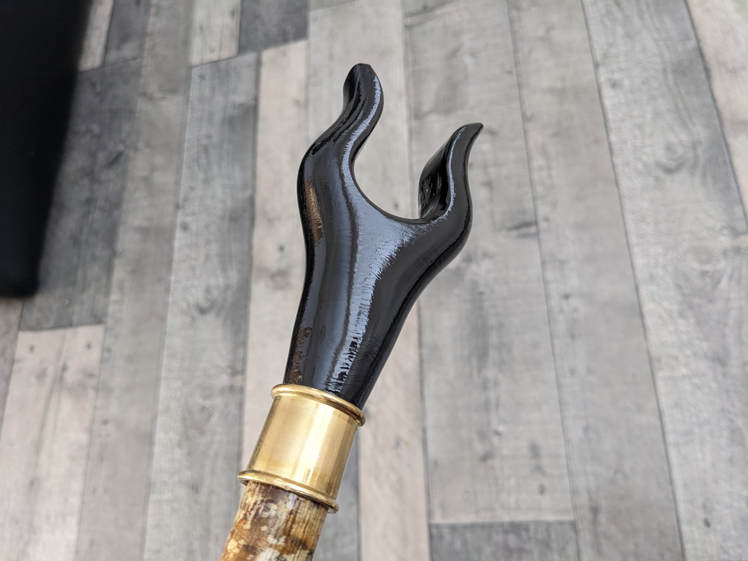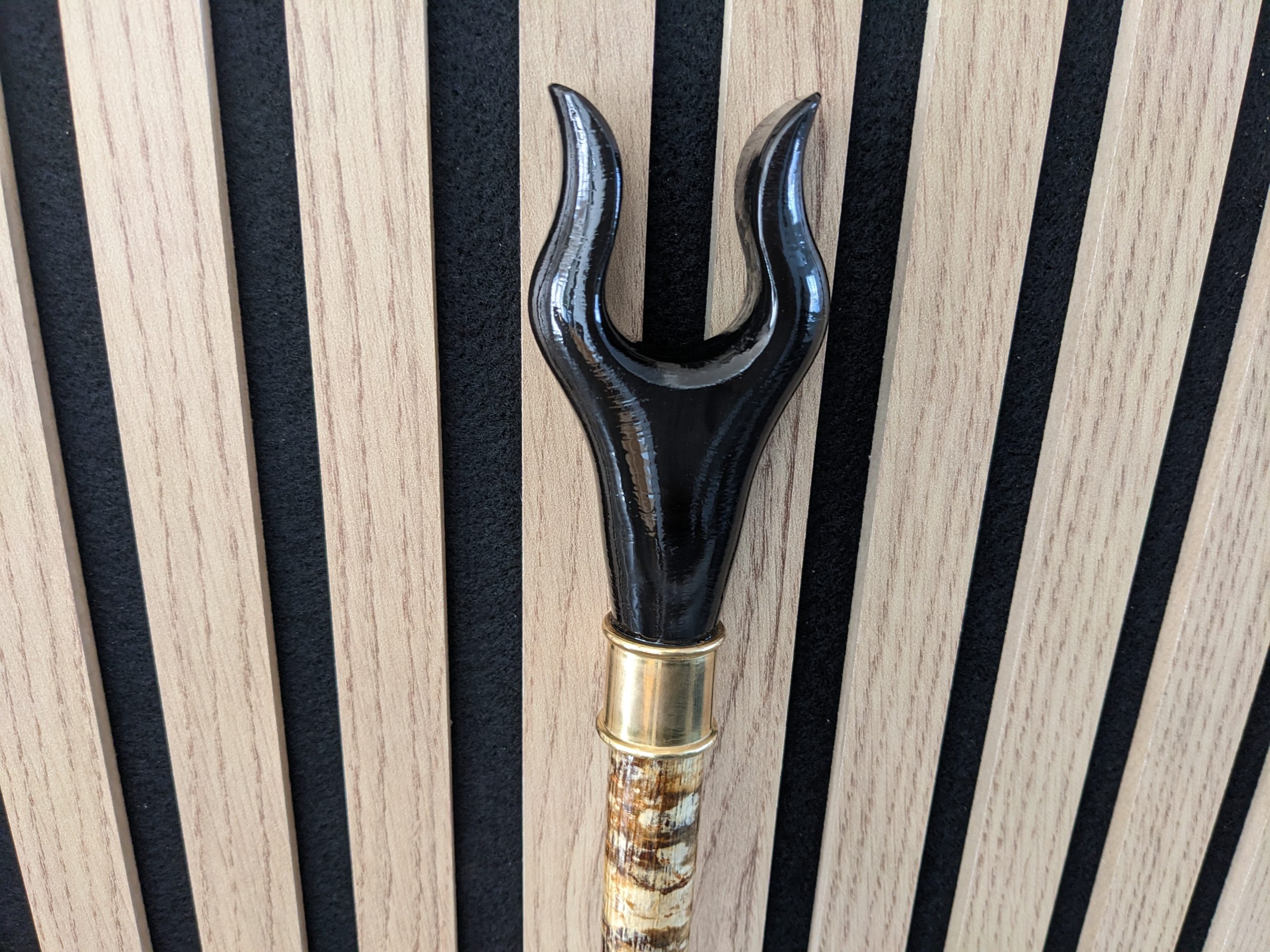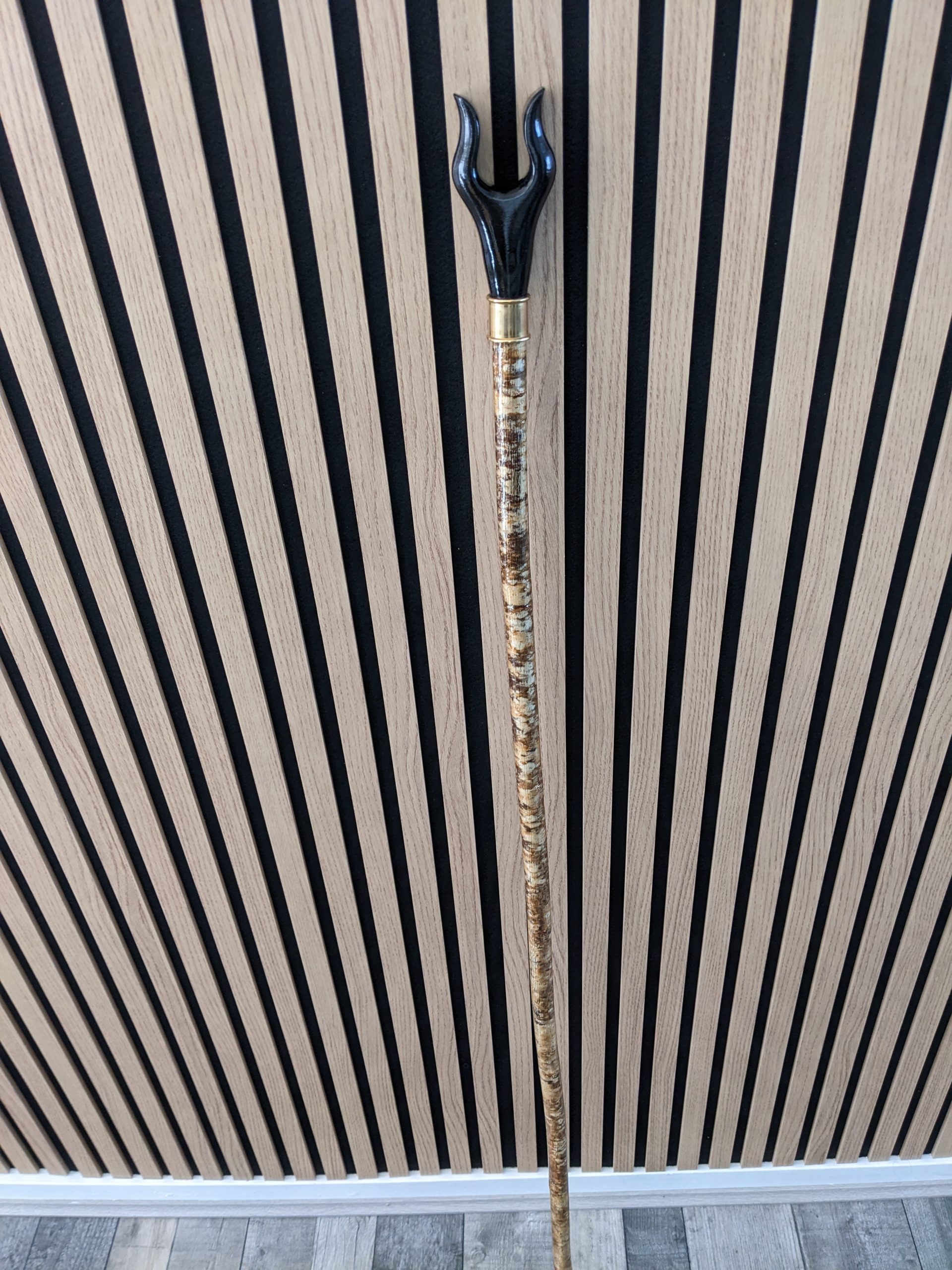 Lovely thumb stick hiking stick in real buffalo horn with brass collar on a very nice hazel shank very strong stick pp is £13.00