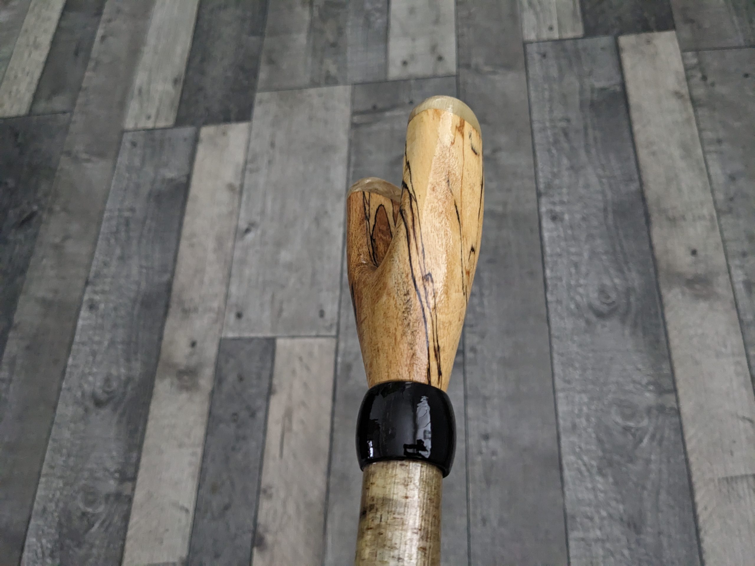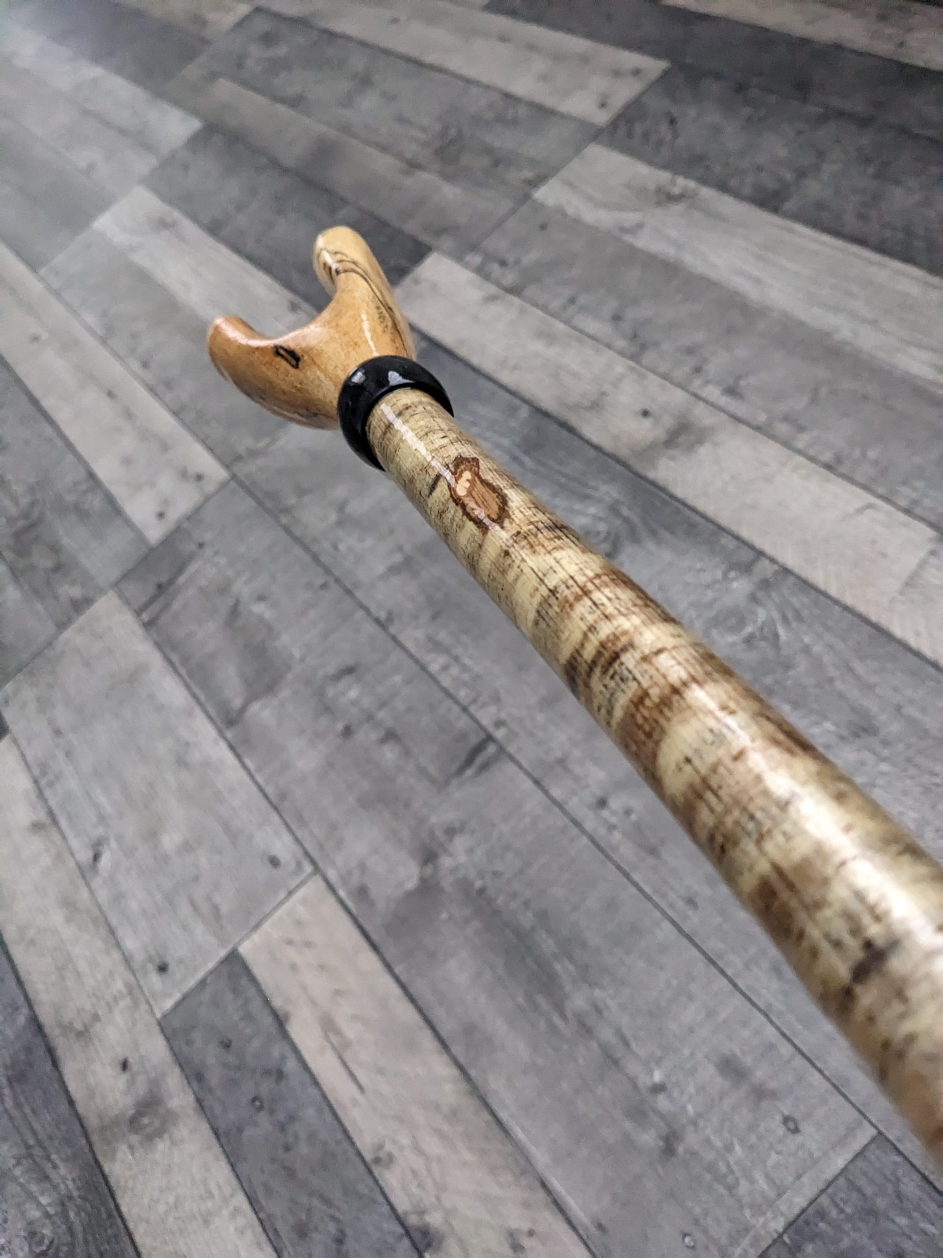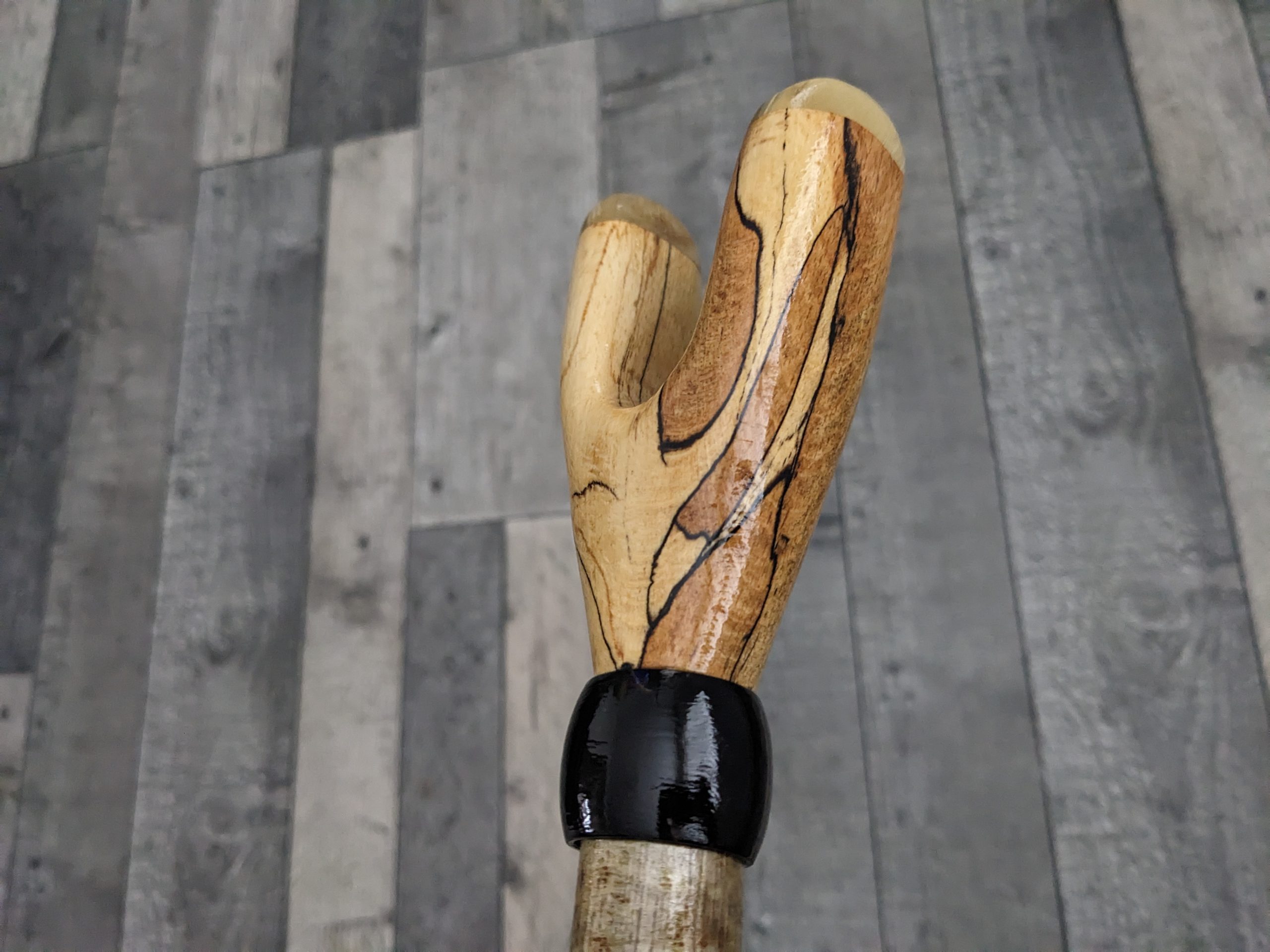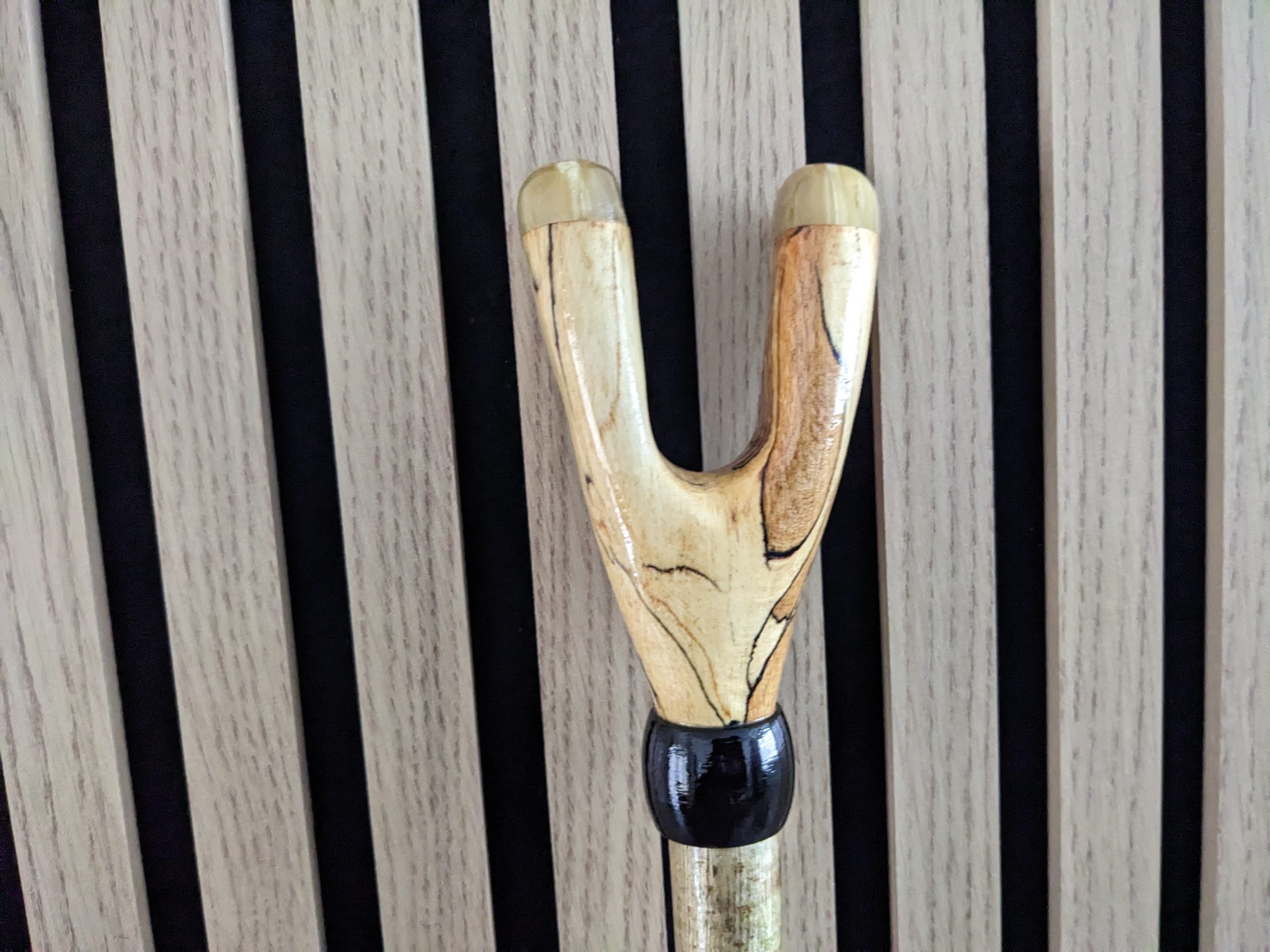 Spelted Beech thumb stick hiking stick with rams horn tips and buffalo collar on a hazel shank lovely stick very strong and lite pp is £13.00