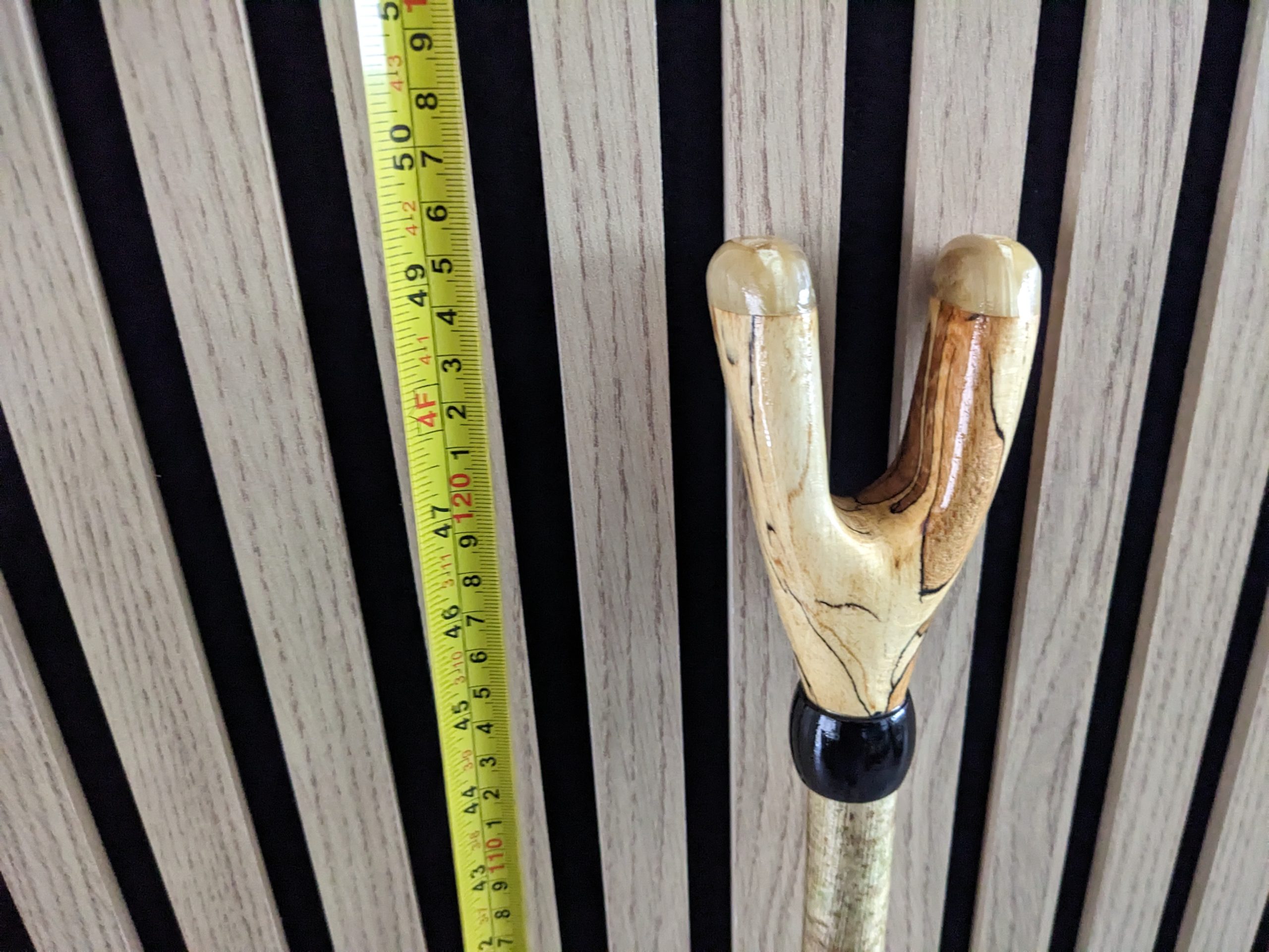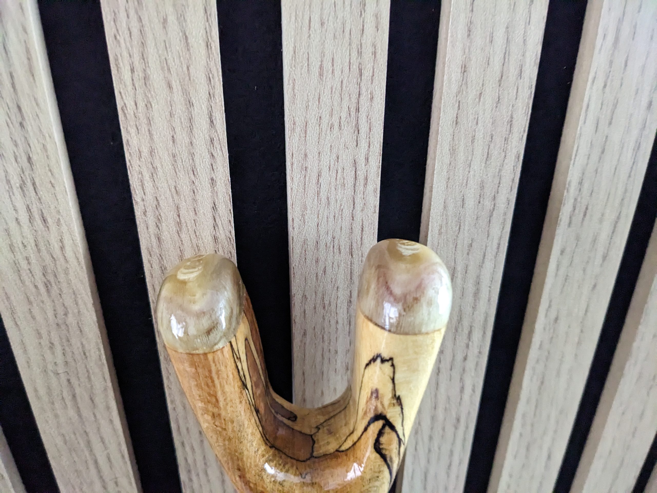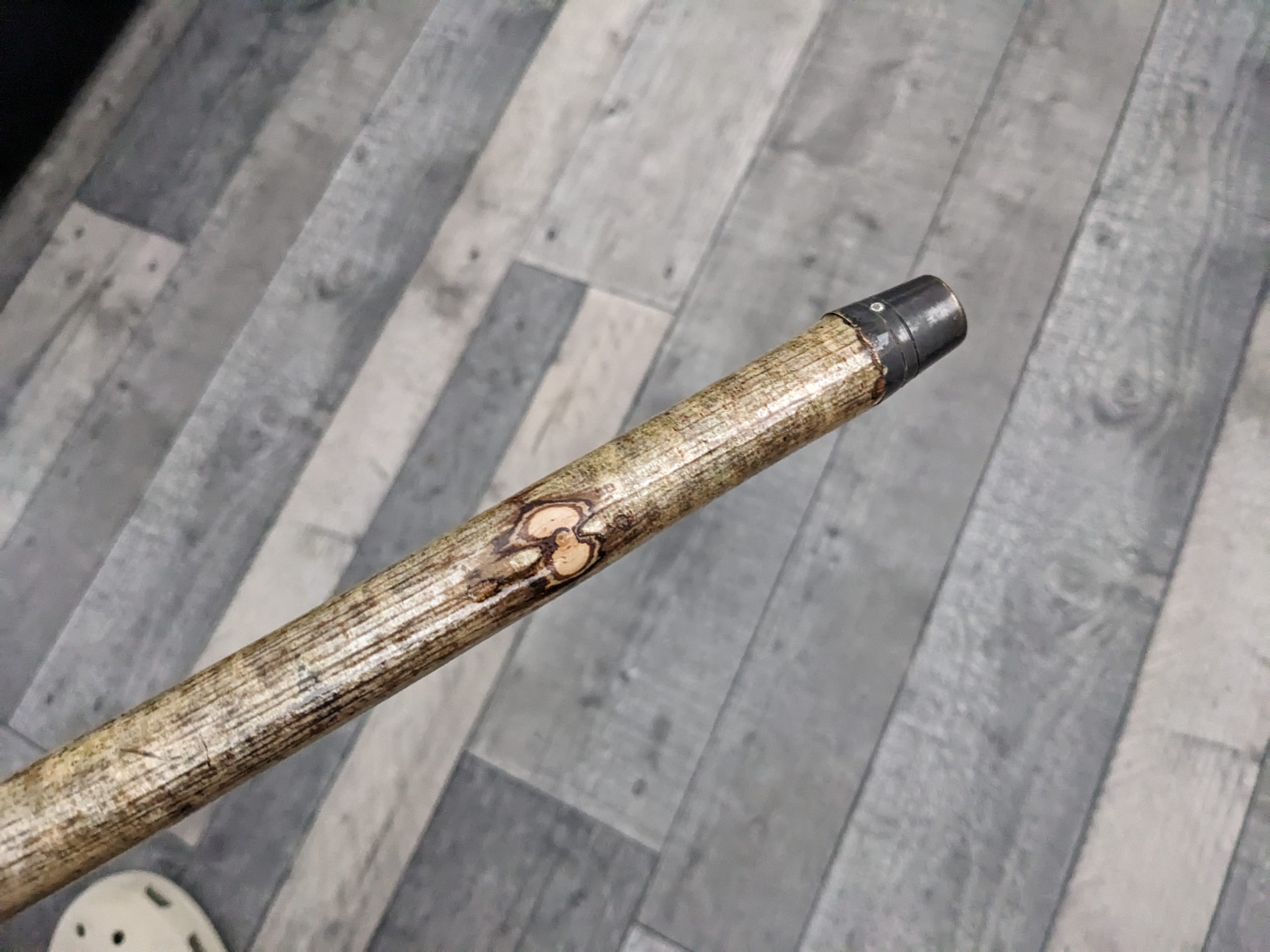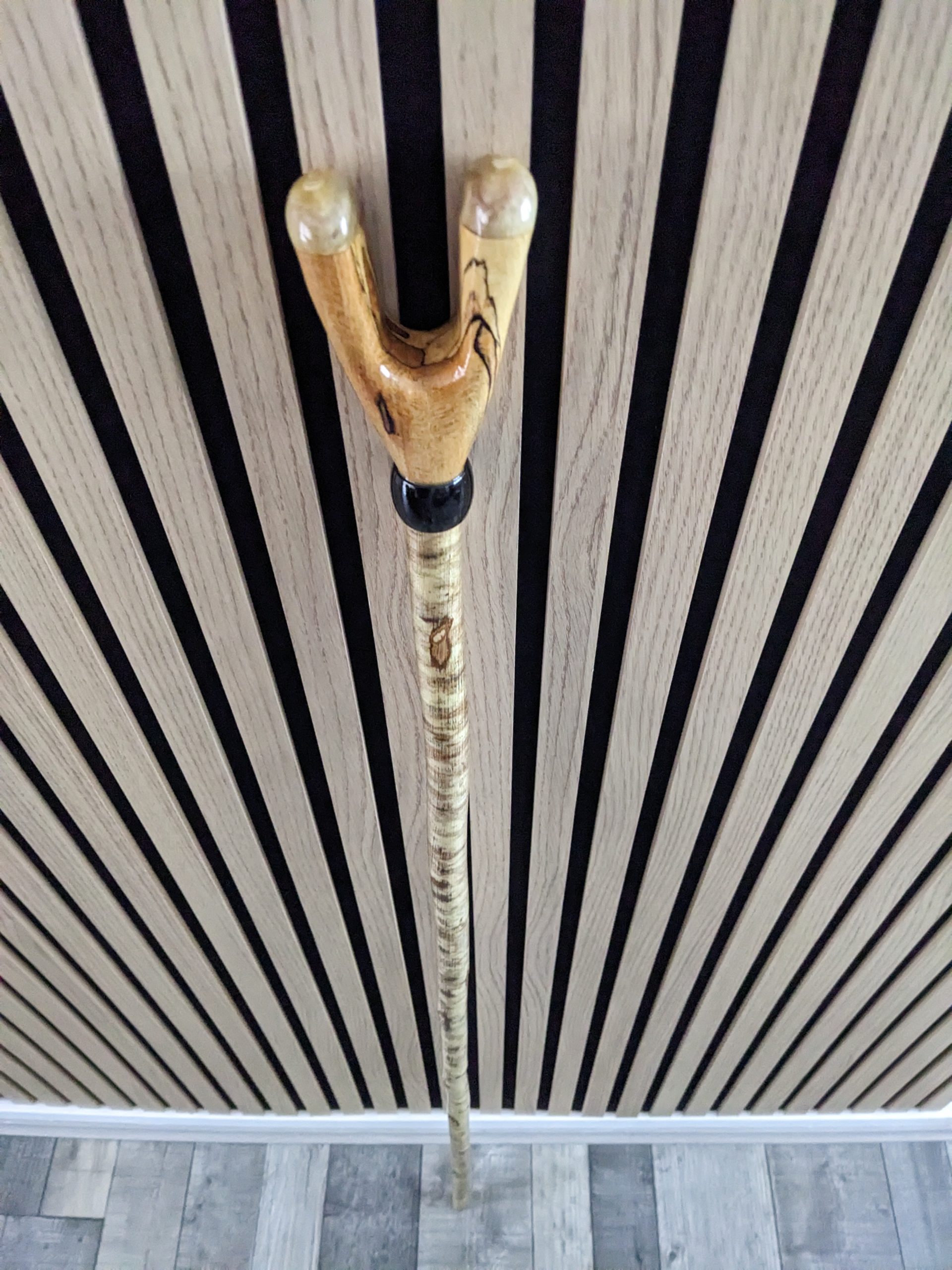 Spelted Beech thumb stick hiking stick with rams horn tips and buffalo collar on a hazel shank lovely stick very strong and lite pp is £13.00