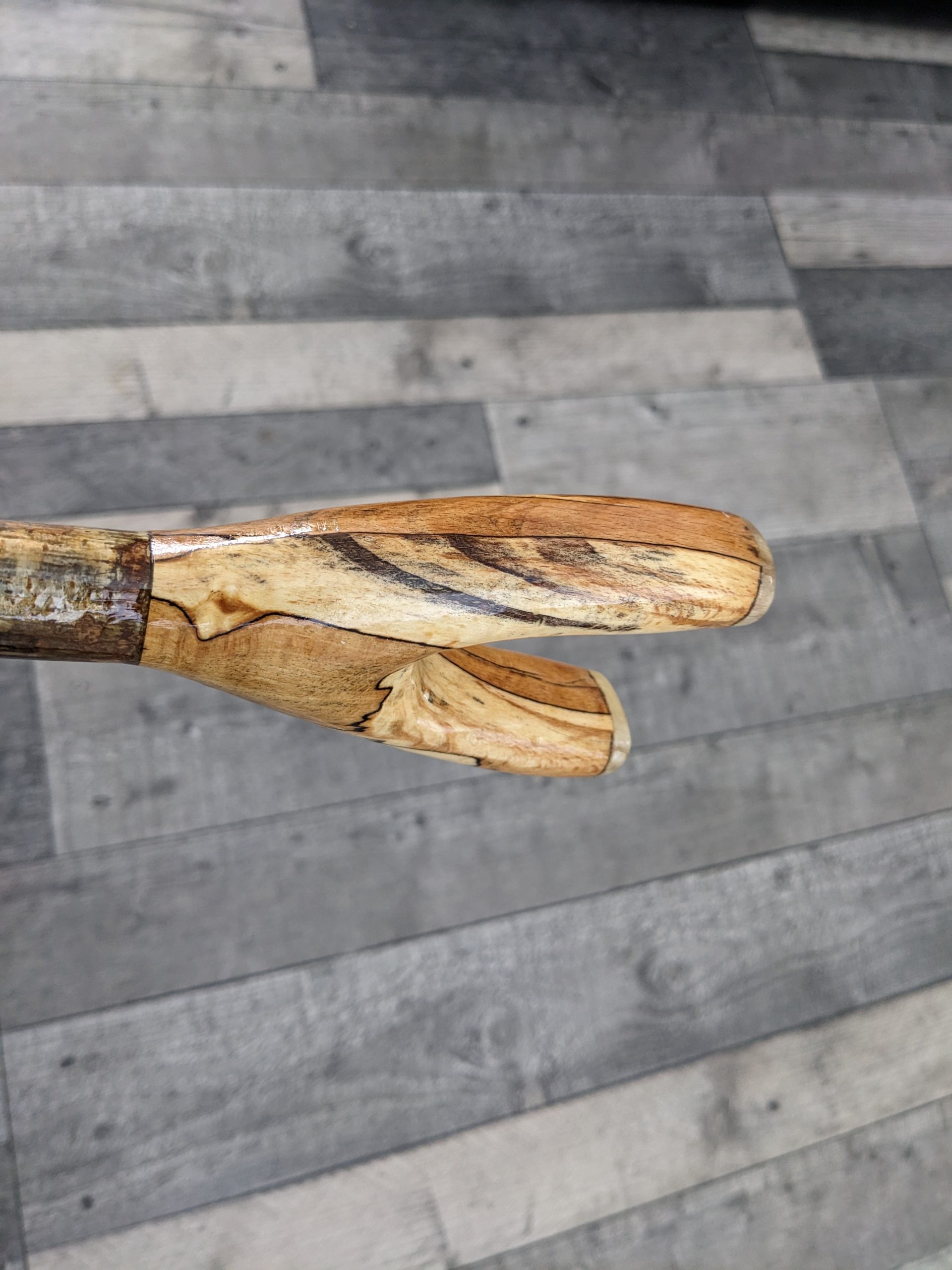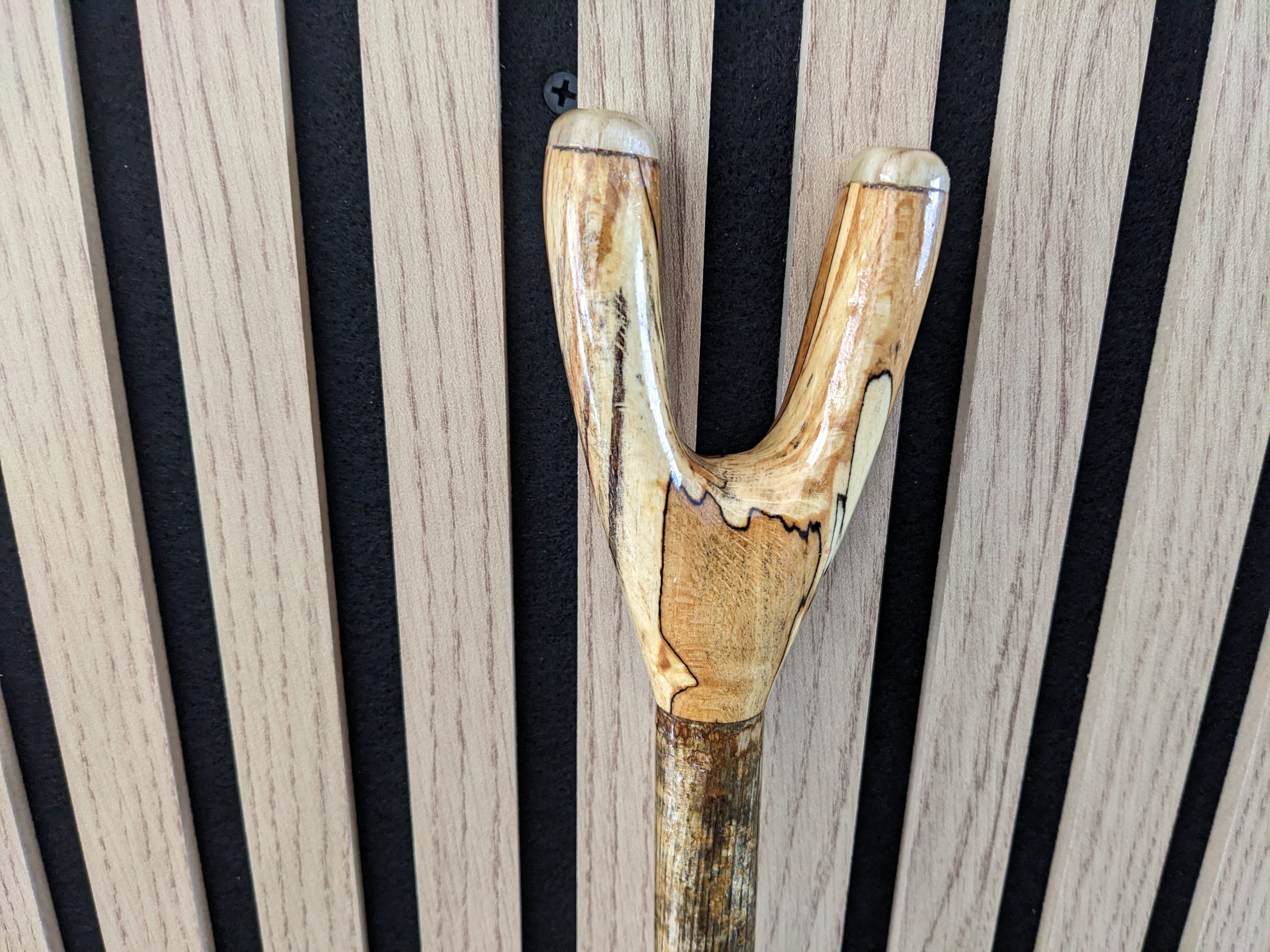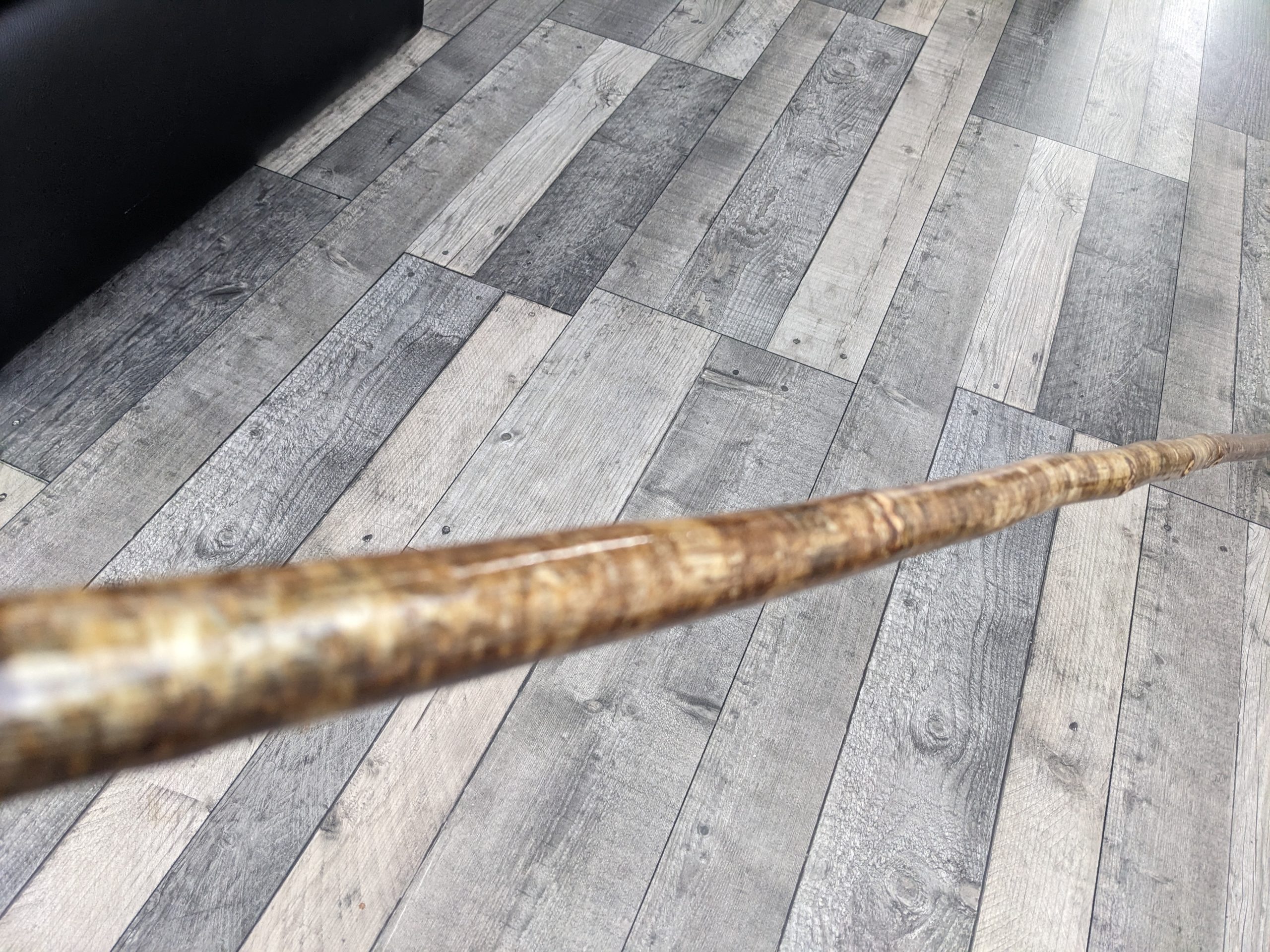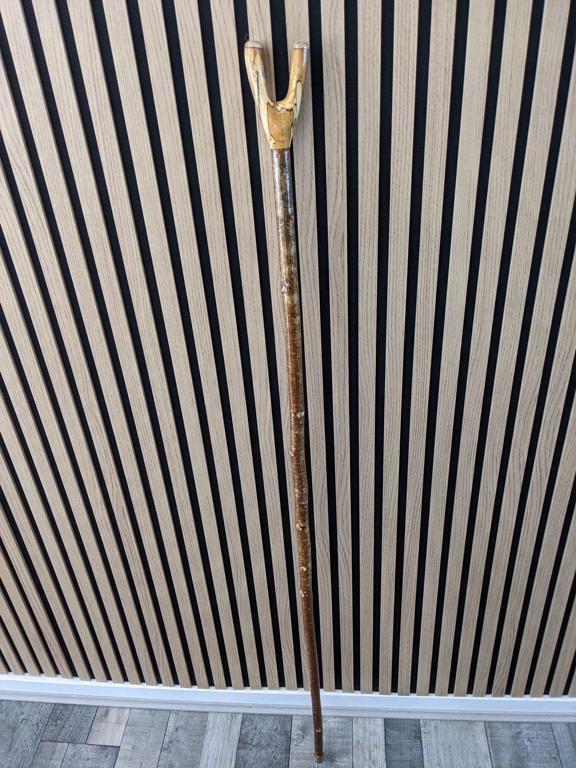 Very nice thumb stick hiking stick Spelted Beech with rams horn tips on a very nice hazel shank very strong stick very light pp is £13.00 contact me for more information