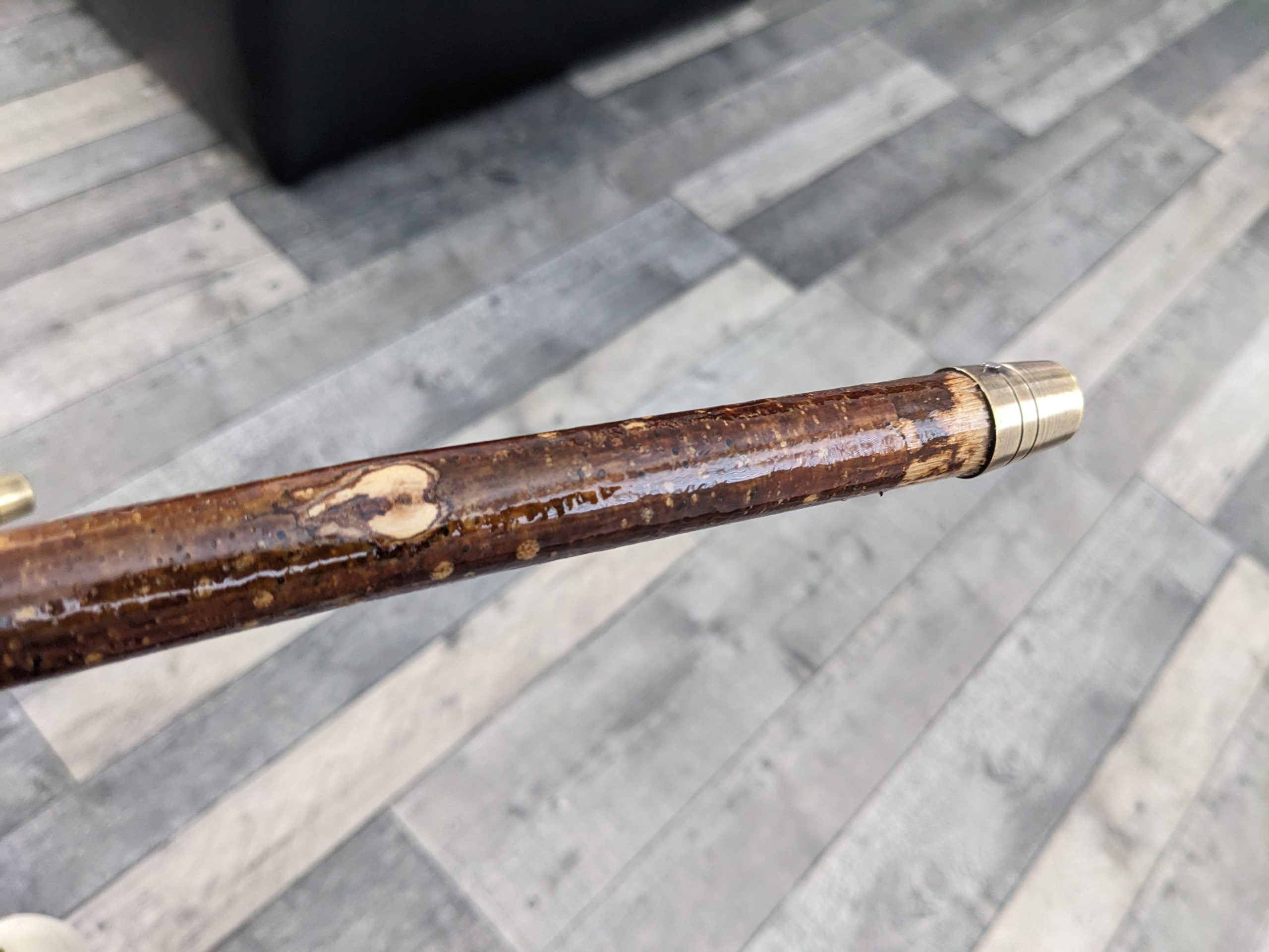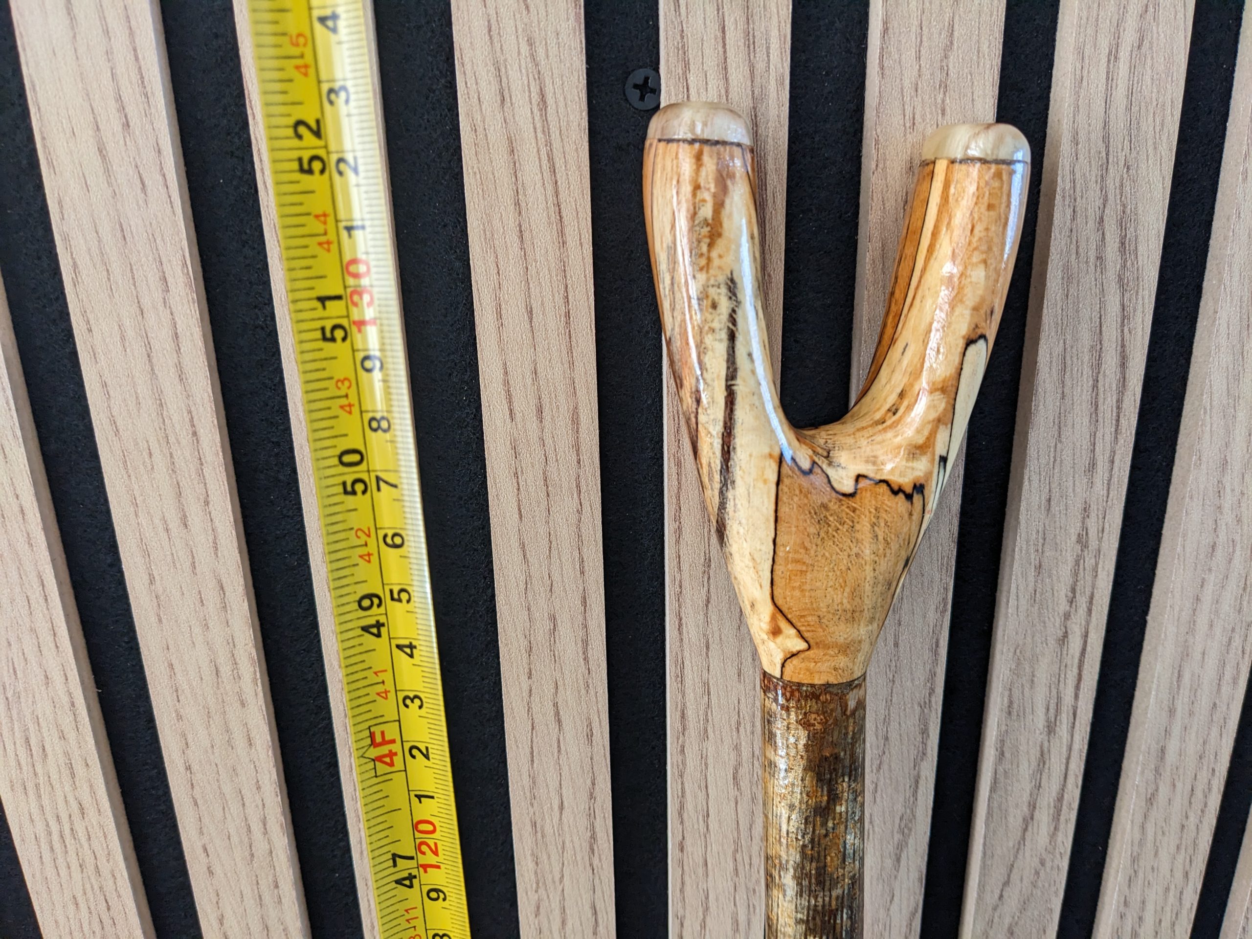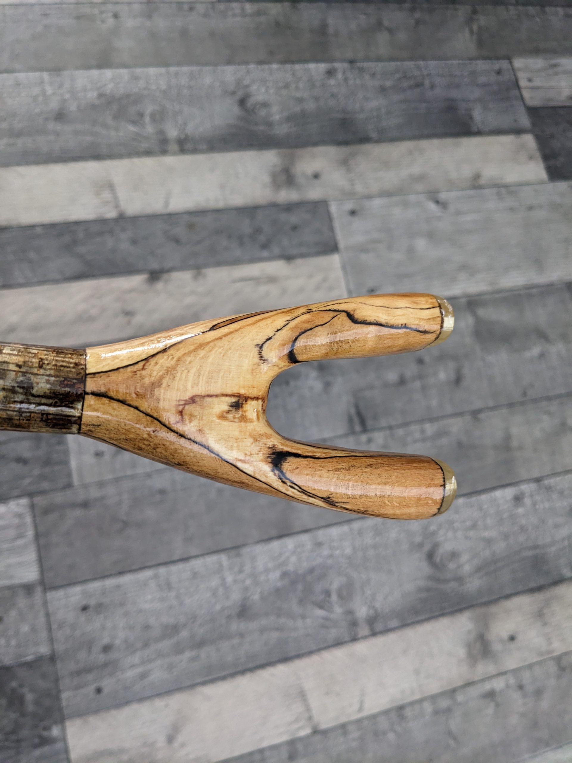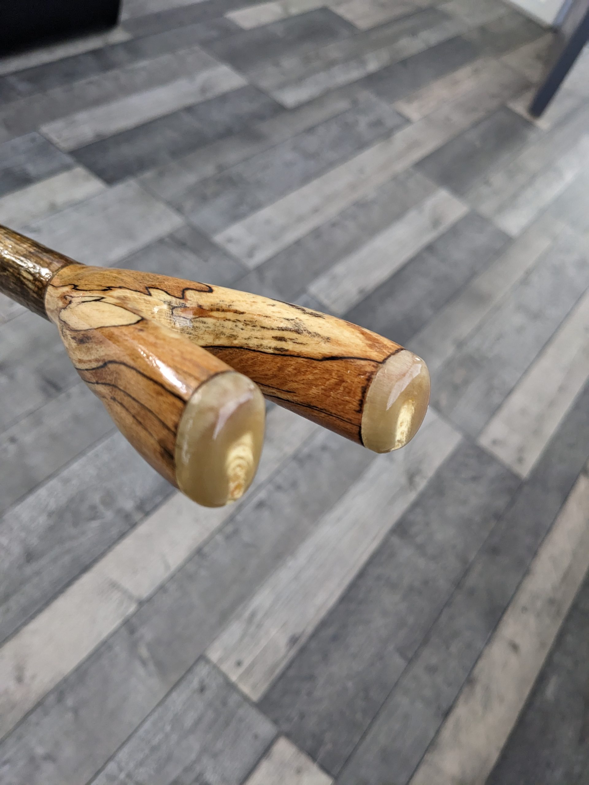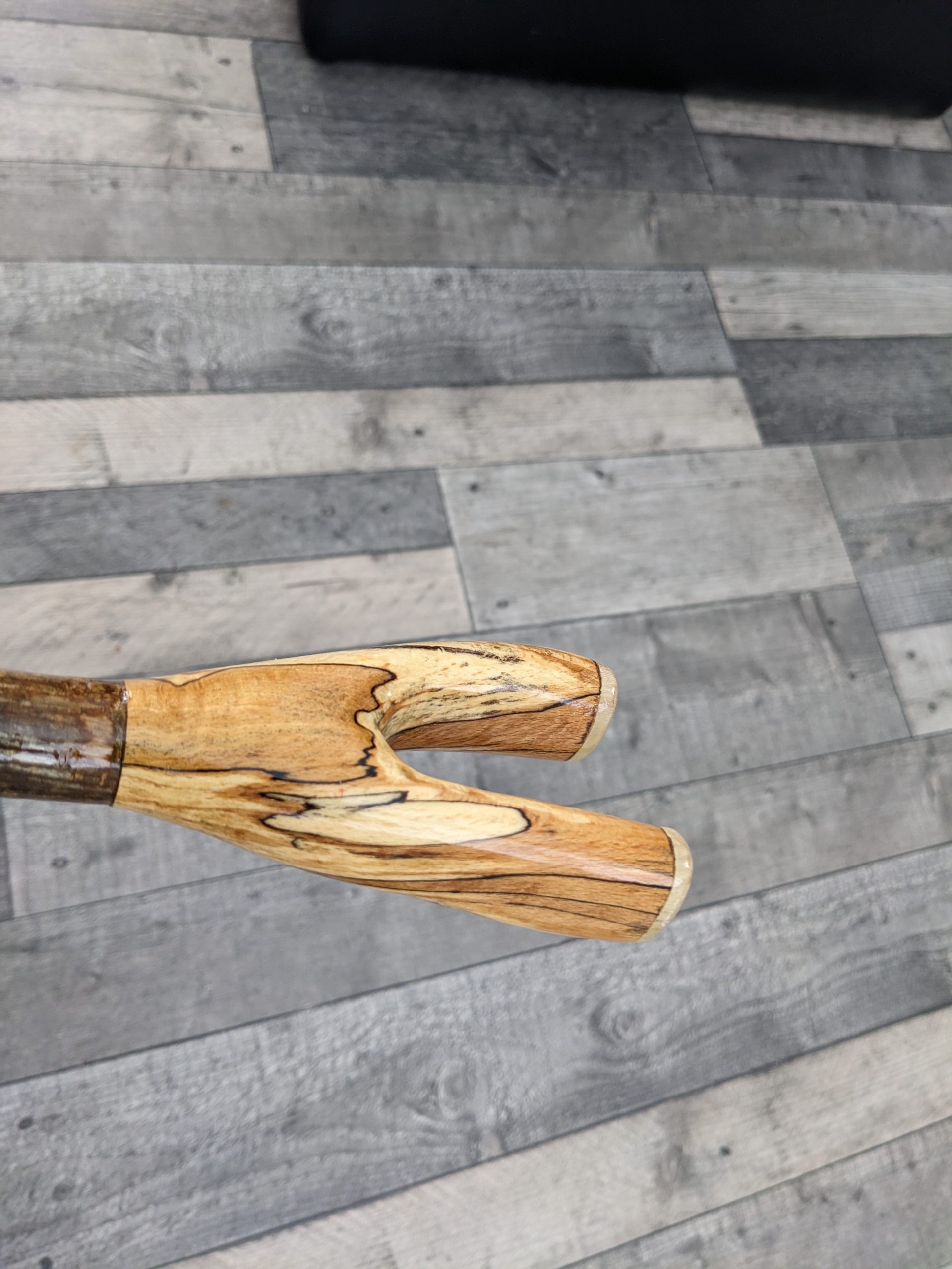 Very nice thumb stick hiking stick Spelted Beech with rams horn tips on a very nice hazel shank very strong stick very light pp is £13.00 contact me for more information
