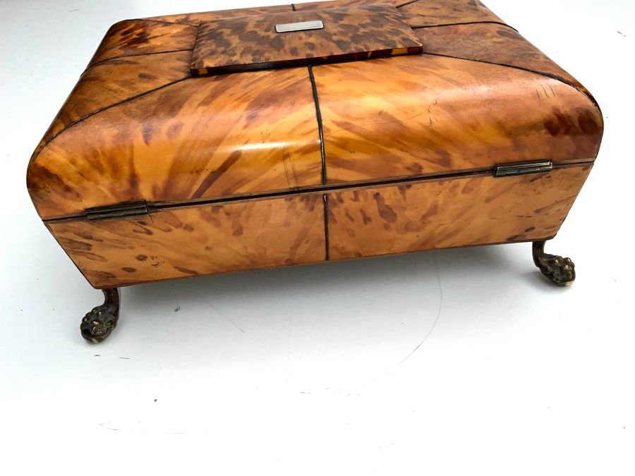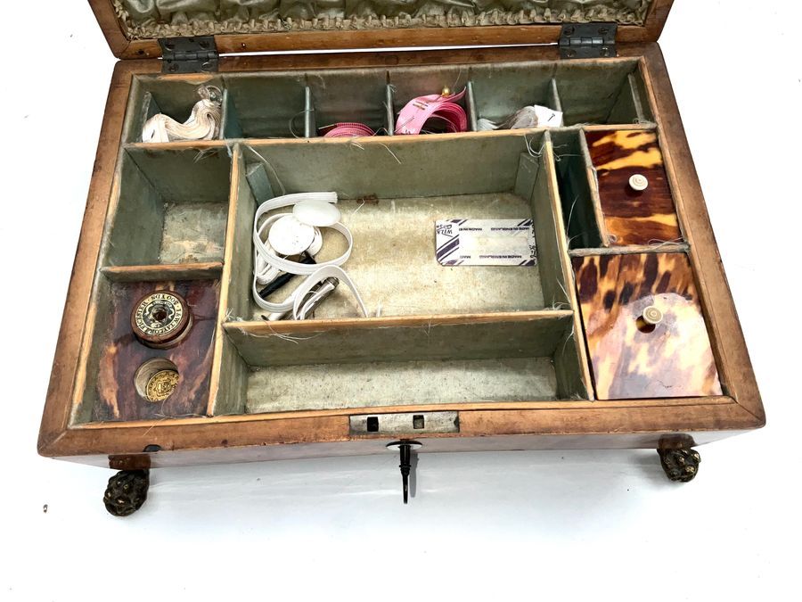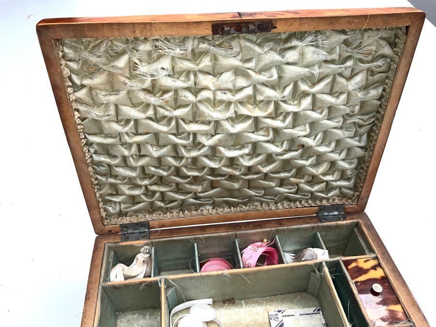 This exceptional sewing box circa 1800’s with original liners and accessories, has four brass feet that are also original. the key sadly doesn’t work the lock but looks nice, the boxes length is 25 cm depth of 19cm height to include feet 12 cm, offering free UK delivery reference DBSS Tel: +44 7505 165 843 We accept online payments for all our items listed: Bank transfer cash on collection personal cheques or if wishing over the phone using your debit or credit cards, also doing lay by payments plan, or email giving your address details & contact number and we shall send you your items invoice to make payment with your card. Send your request to – john.strong2@gmail.com