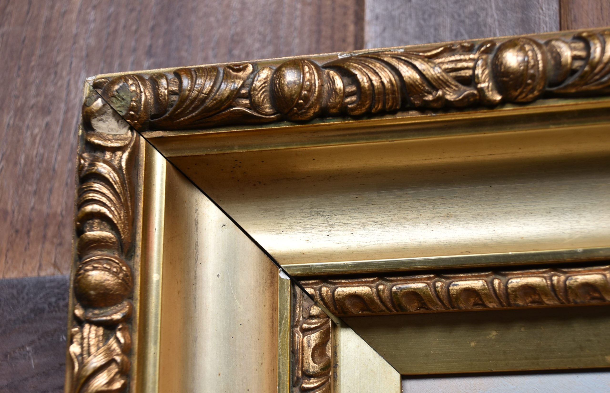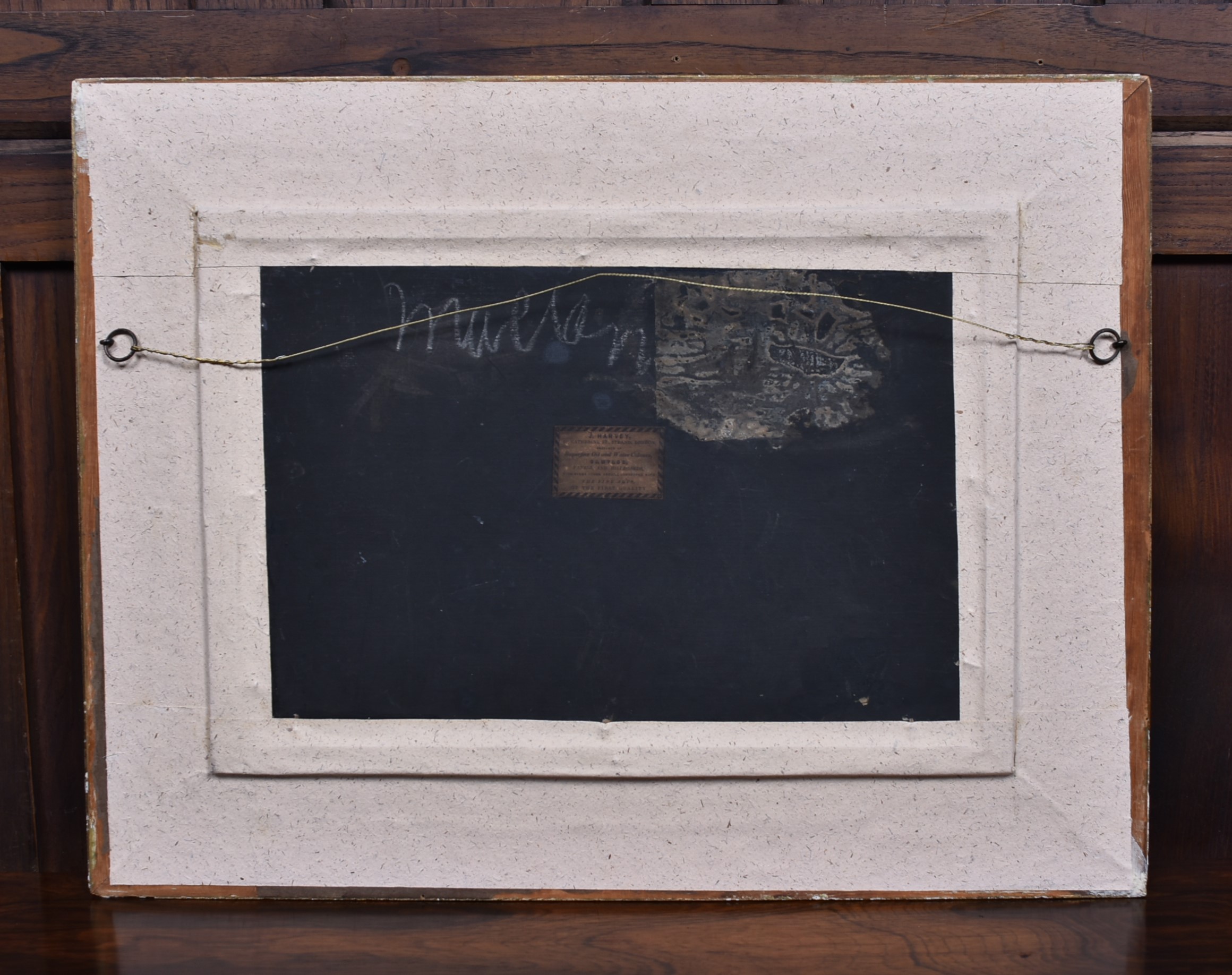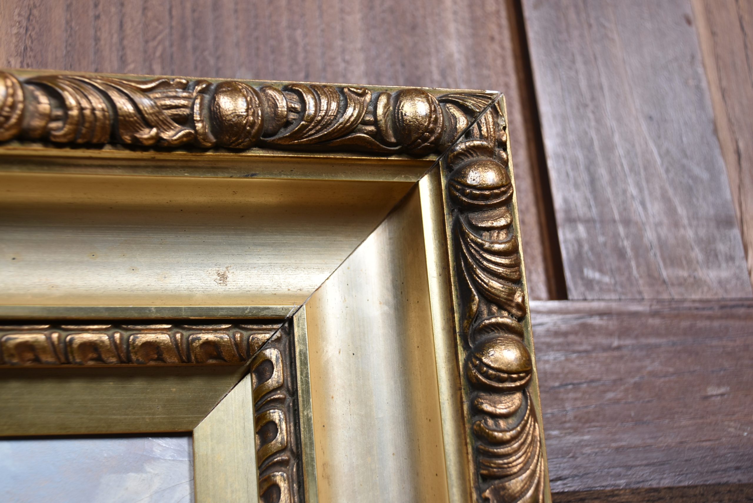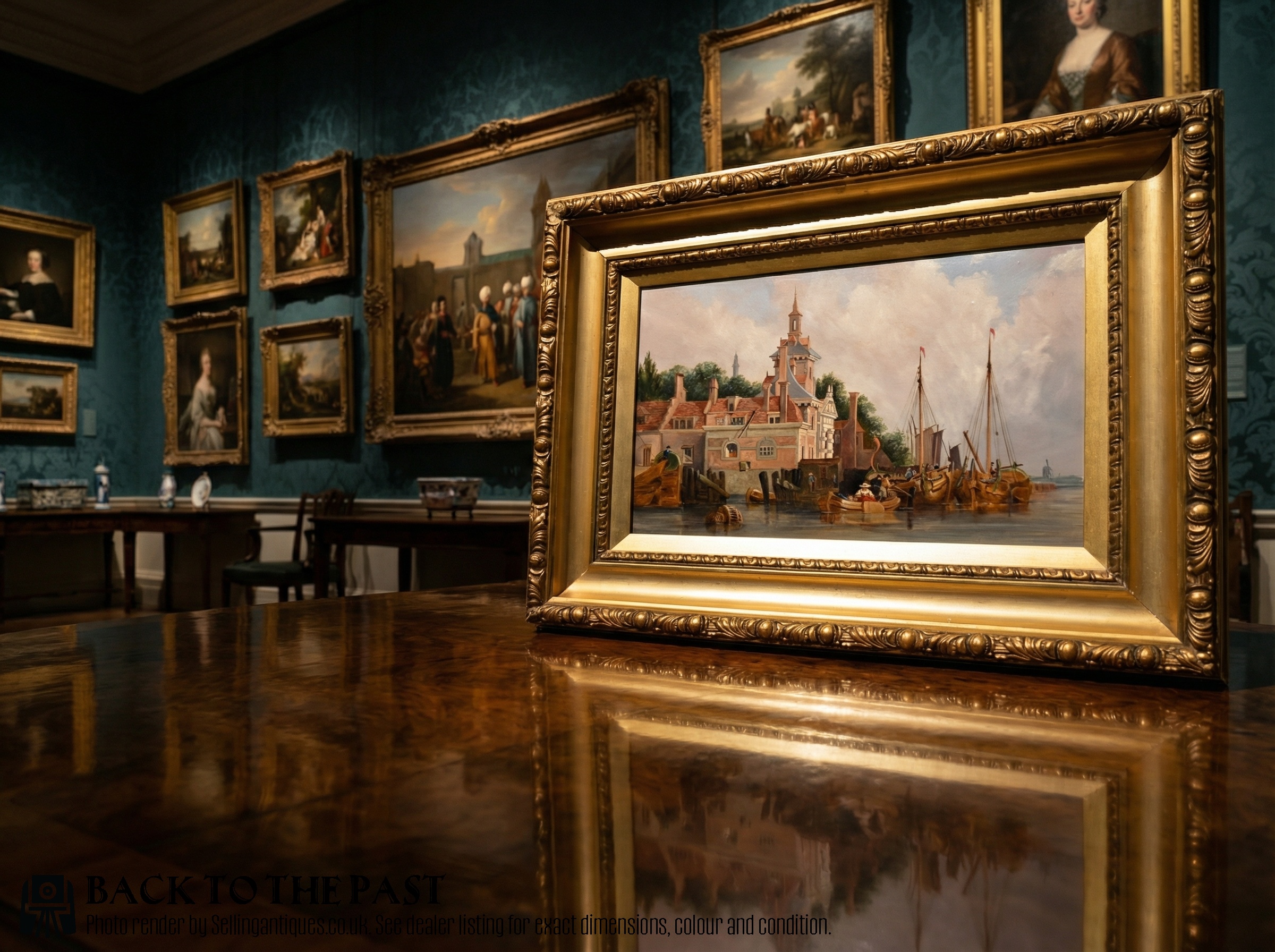 A wonderful unsigned oil painting depicting the historic Oudehoofpoort at Rotterdam, rendered in the manner of Alfred Gomersal Vickers. The composition reflects Vickers’ hallmark blend of architectural fidelity and atmospheric romanticism, with the medieval gateway and surrounding buildings mirrored in the still harbour waters. Moored boats with tall masts lend rhythm and scale to the scene, while the restrained palette, dominated by ochres, umbers, and slate blues, infuses the work with a quiet, nostalgic beauty. The ornate frame, showing gentle age-related wear, remains a sympathetic and characterful companion to the painting. Rich in charm and presence, this piece would make a distinguished and evocative addition to any interior.
