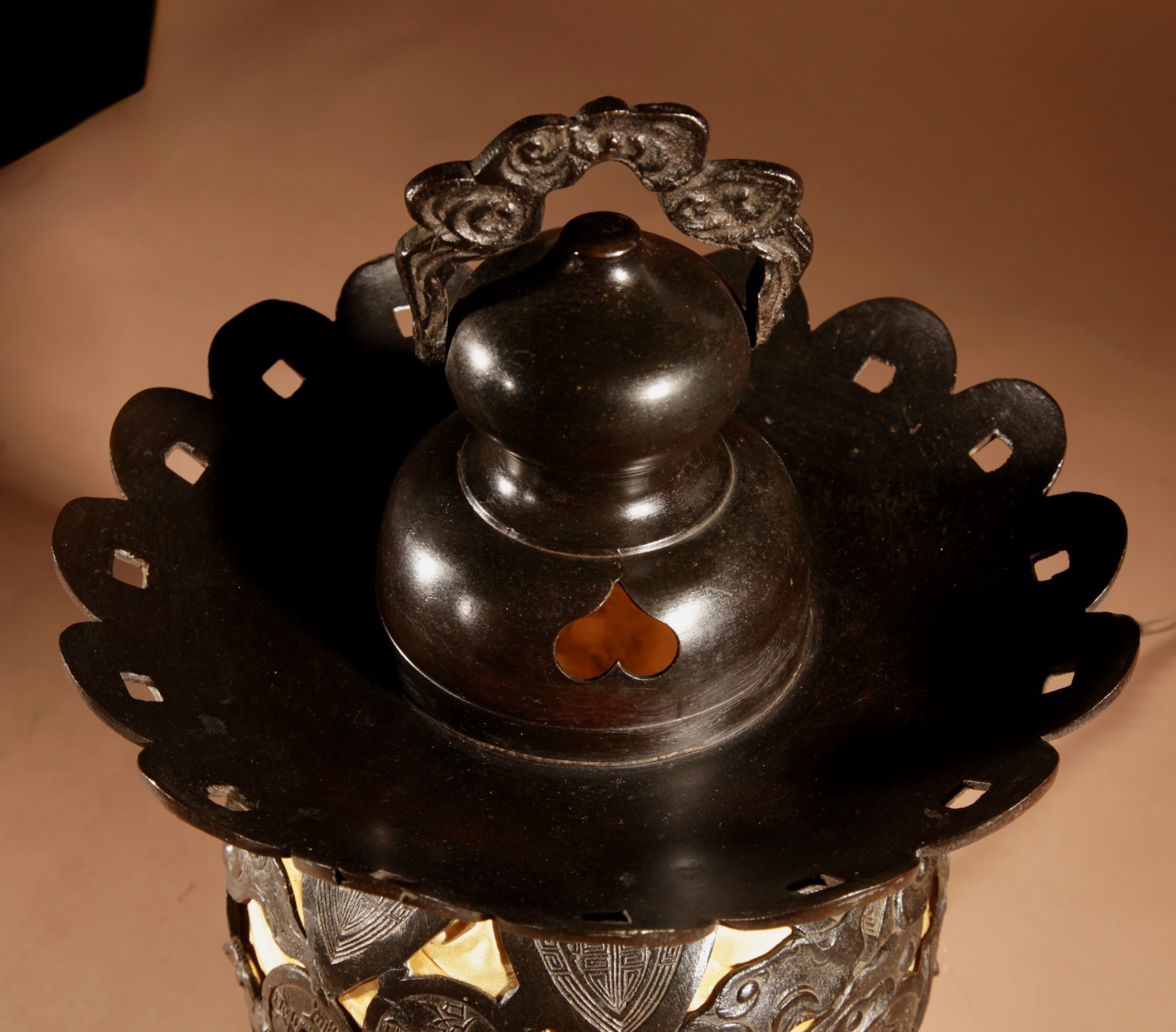 Unusual Large Bronze Japanese Table/Hanging Lantern Lamp, Circa 1900-20.
