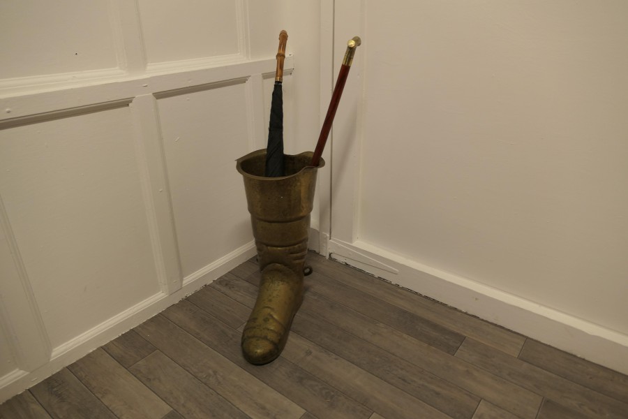 A very unusual stick stand a brass deep sea diver’s boot. This is a very unusual slightly quirky stick stand, the boot is made in hand beaten brass and will hold many sticks or umbrellas. The stand is in good used condition, it is 24” high and 16” long and 11” wide. CC181 Manufacture Date : 1930 Materials : Brass