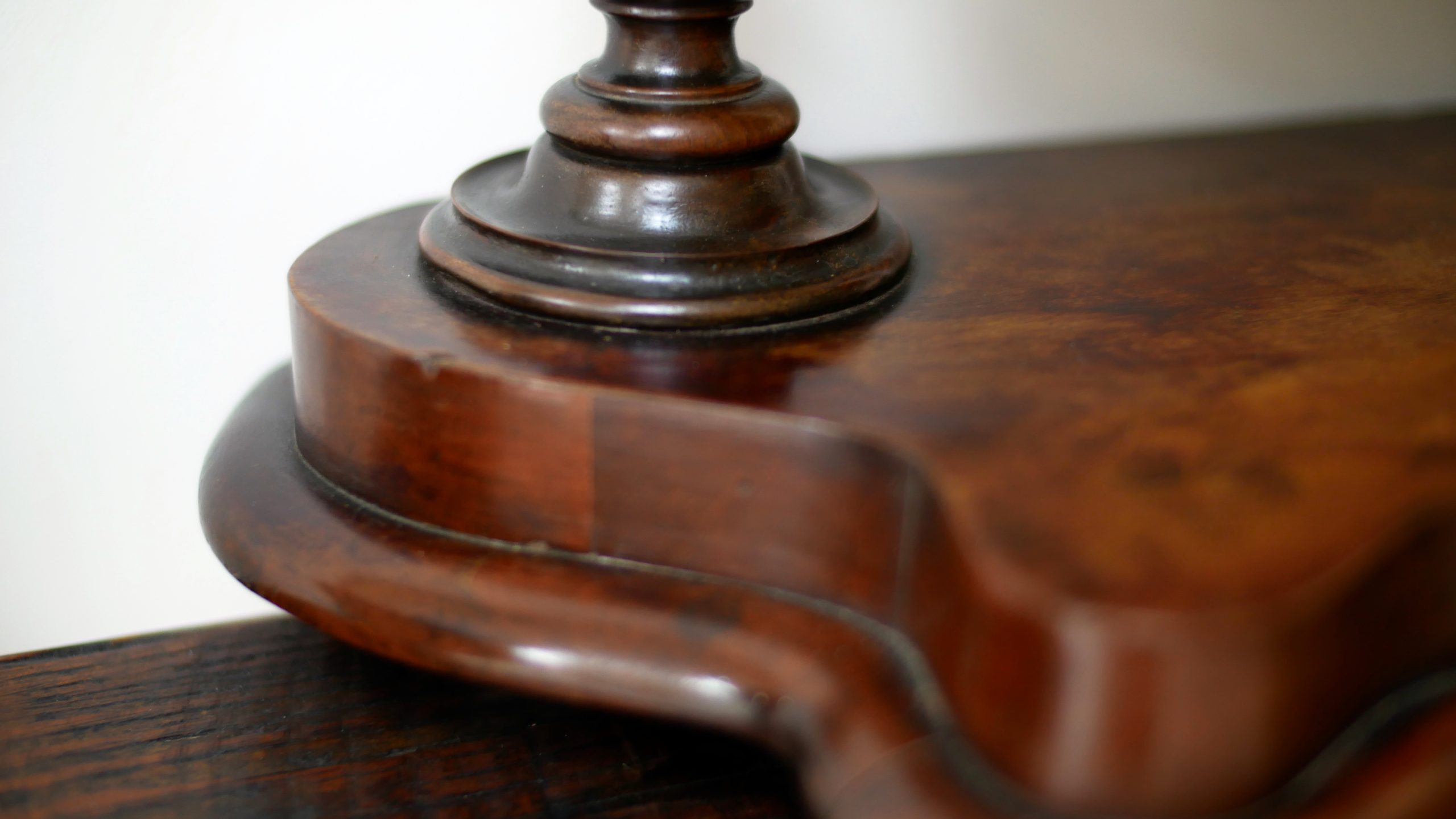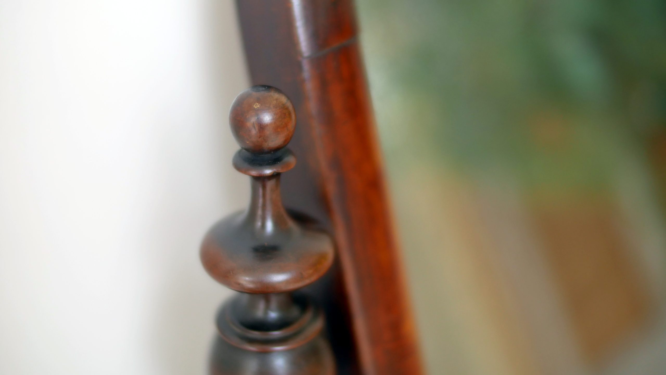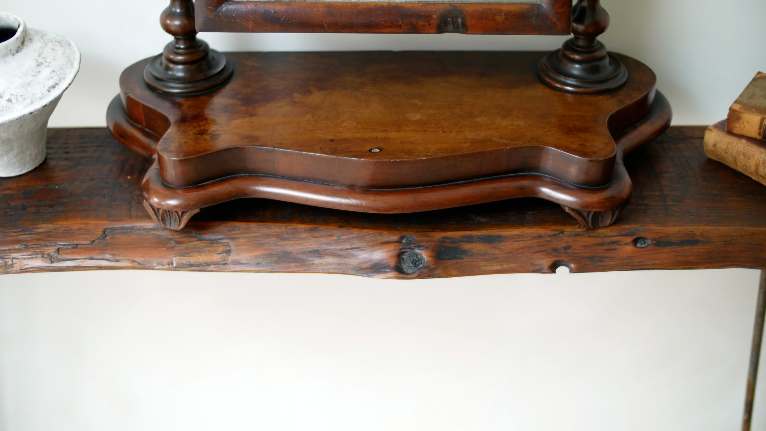 The Base: The mirror sits on a handsome, shaped mahogany plinth, providing a stable foundation and adding a layer of architectural sophistication to the piece.