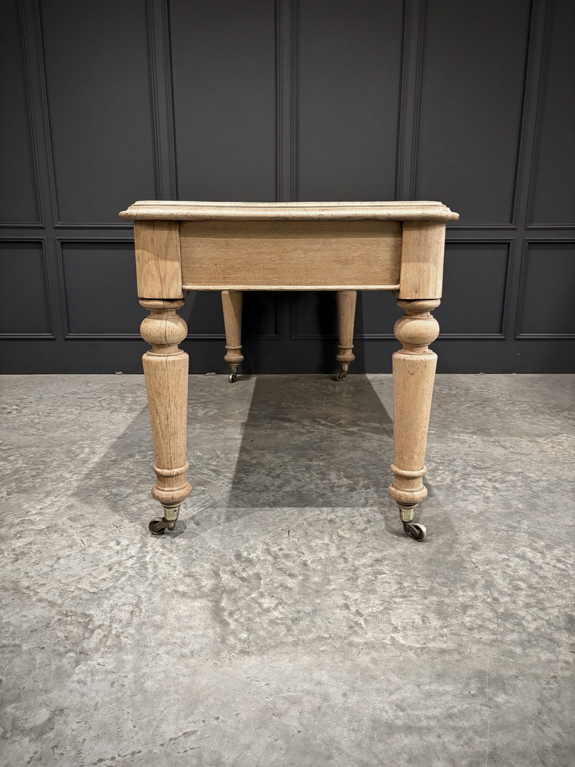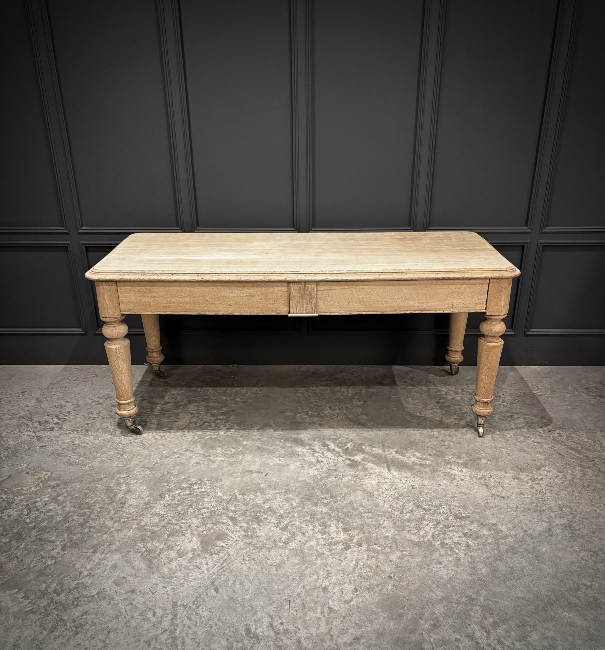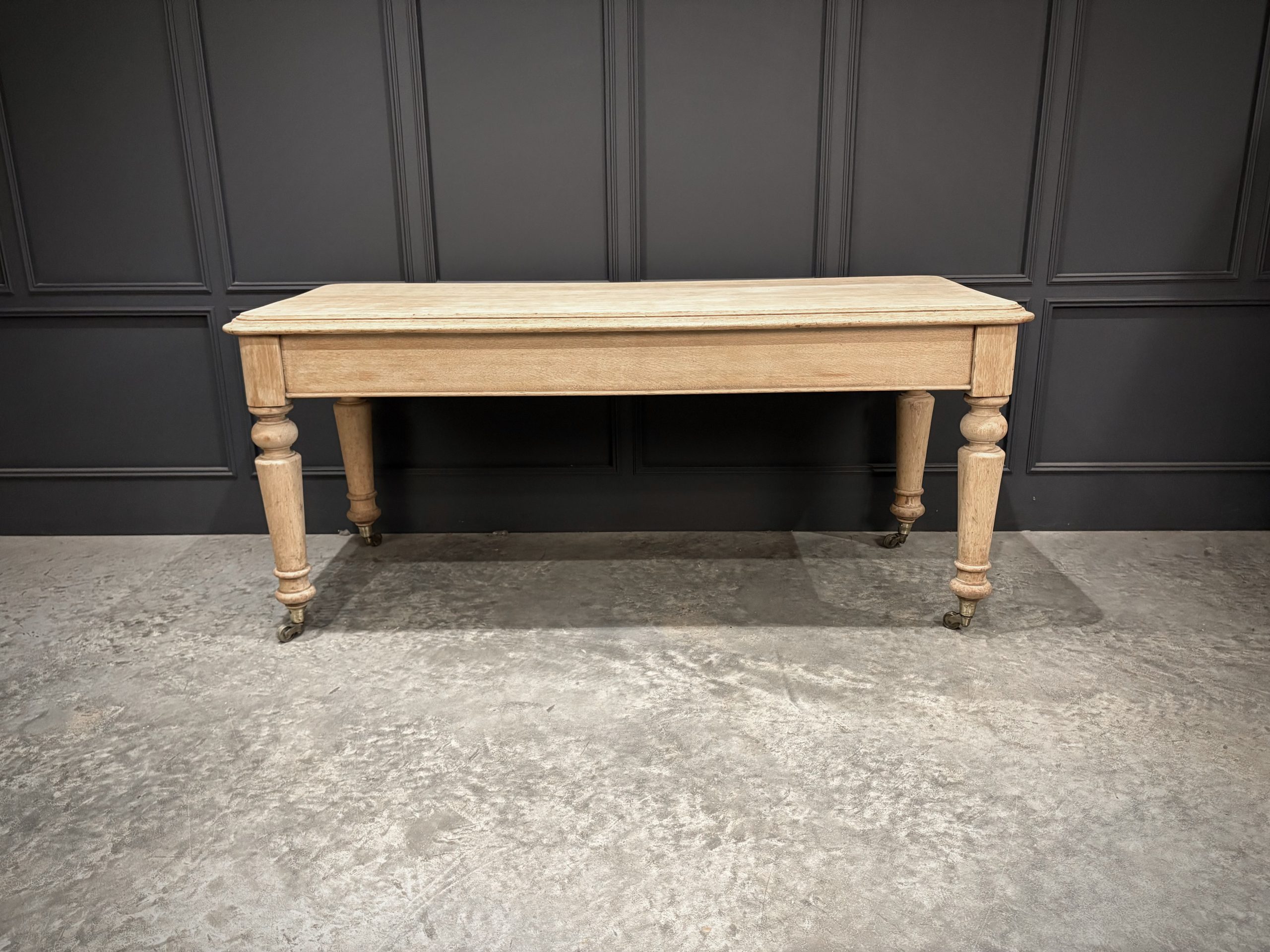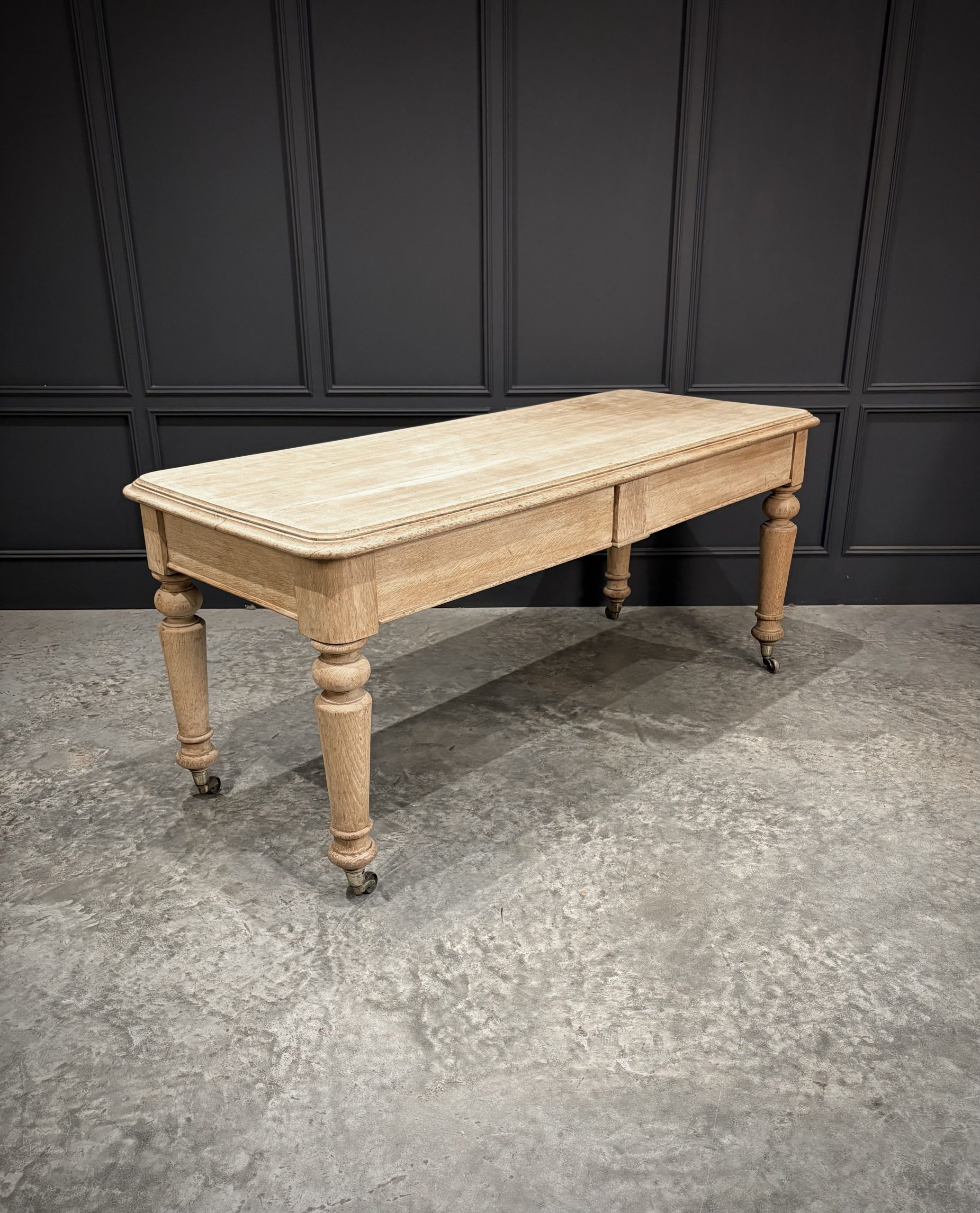A fine Victorian bleached oak side table of substantial proportions, dating from the late 19th century. Crafted from solid oak, this piece has been sympathetically bleached to reveal the natural grain and give it a lighter, more contemporary finish while retaining its antique character.