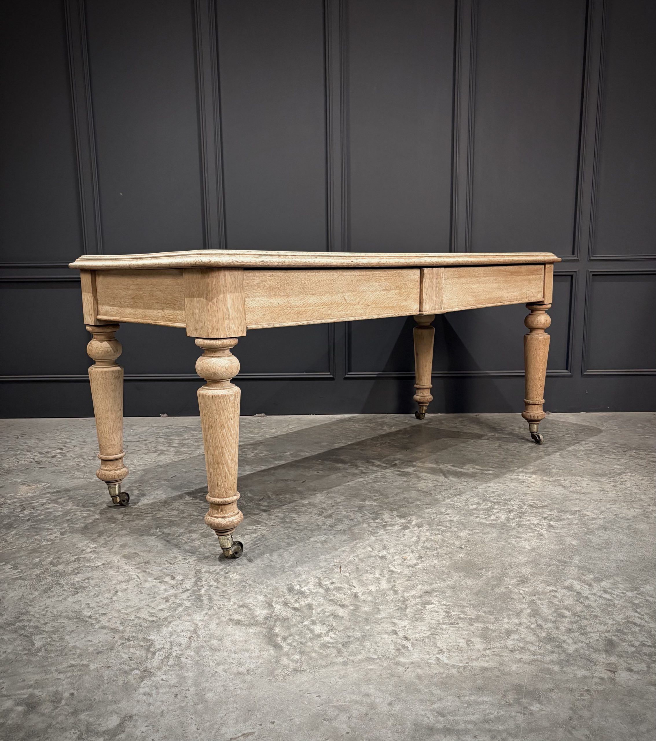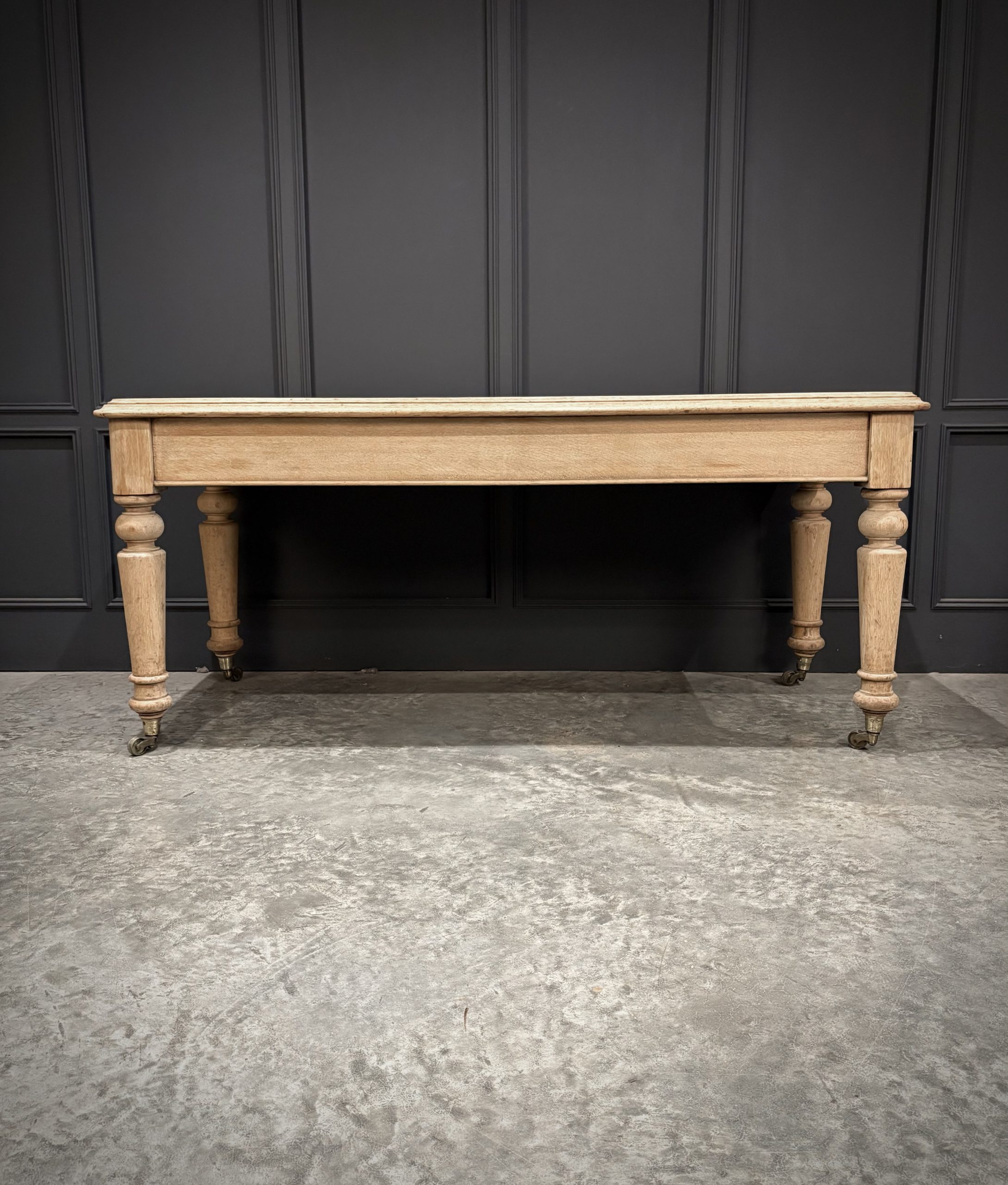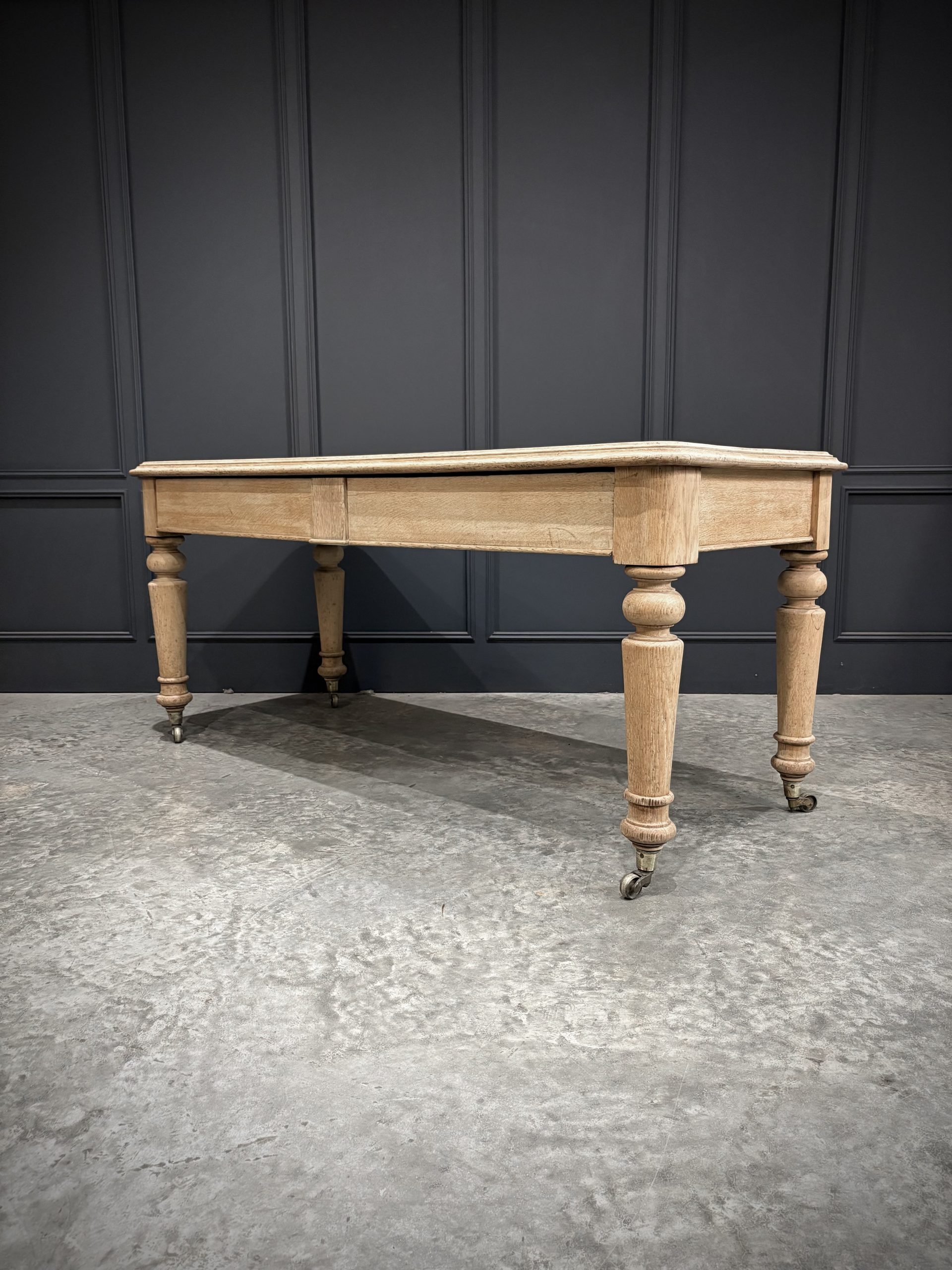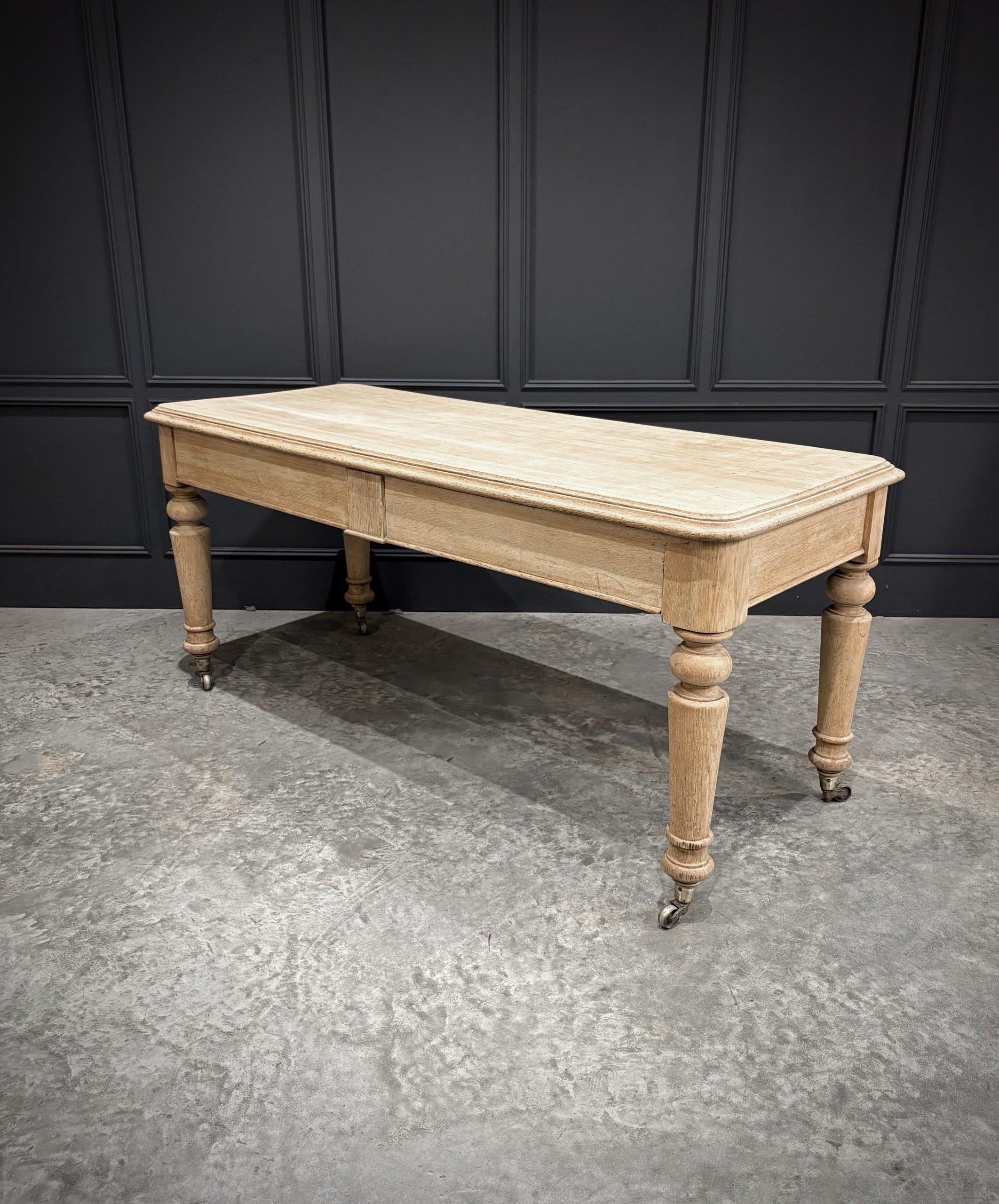 A fine Victorian bleached oak side table of substantial proportions, dating from the late 19th century. Crafted from solid oak, this piece has been sympathetically bleached to reveal the natural grain and give it a lighter, more contemporary finish while retaining its antique character.