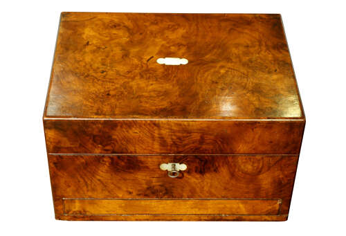 A fine Victorian burr walnut dressing and jewellery box of rich colour and beautifully figured grain.