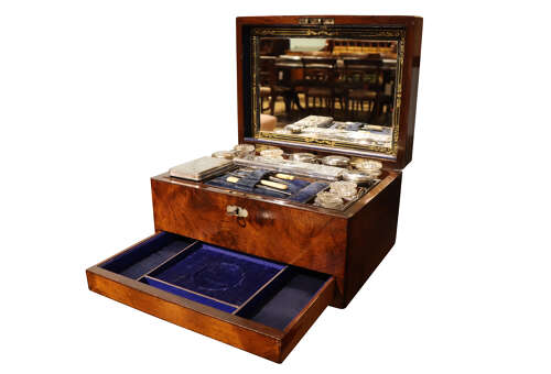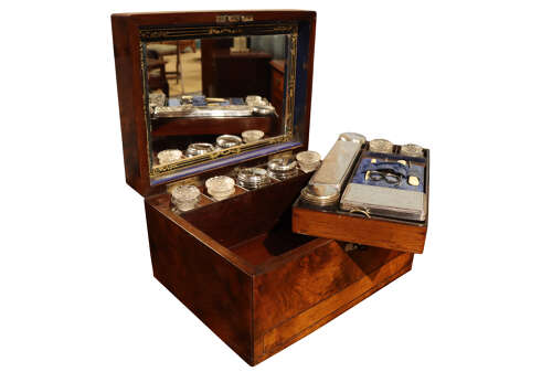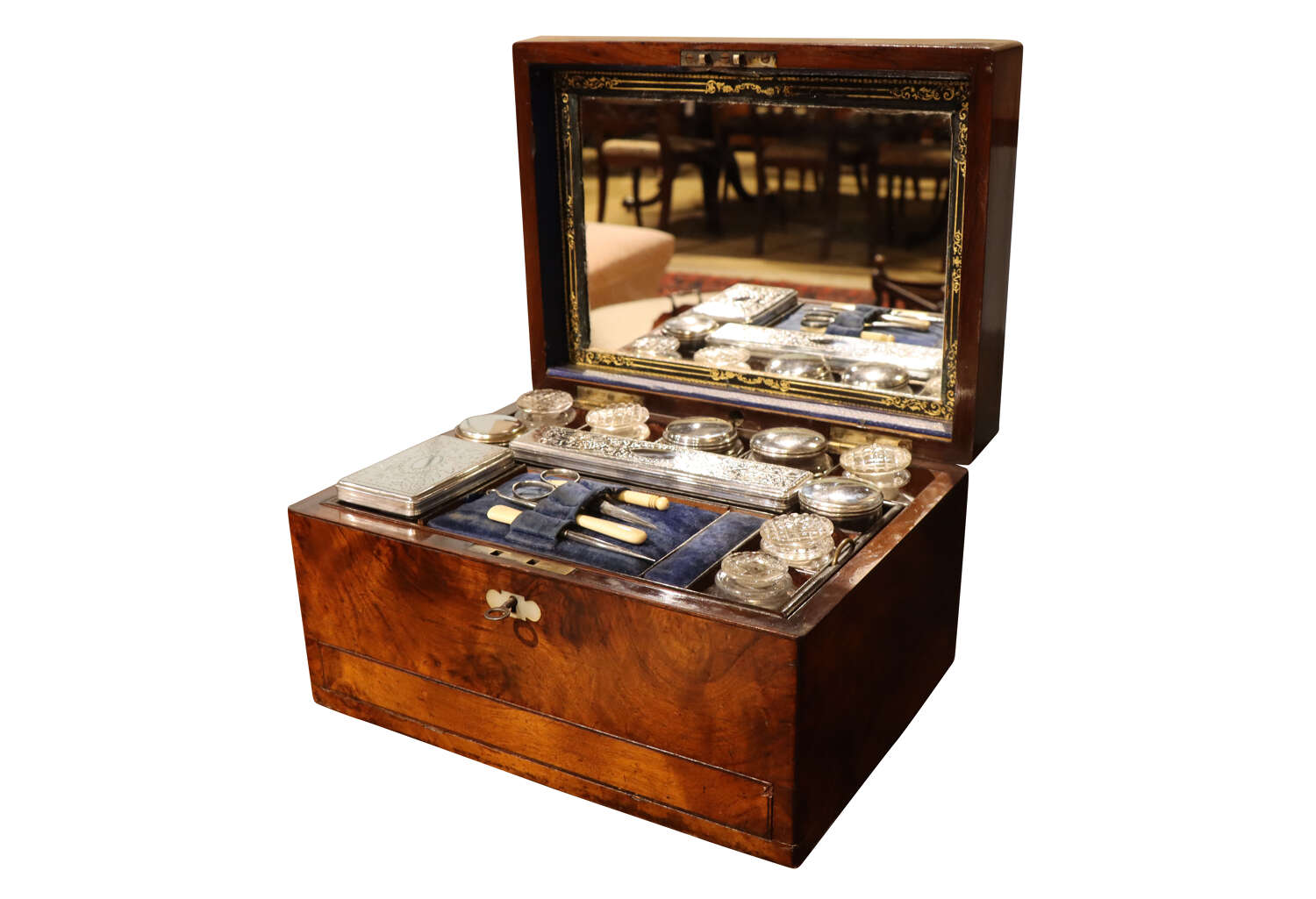 Victorian Burr Walnut Dressing & Jewellery Box with Fitted Interior and Mirror