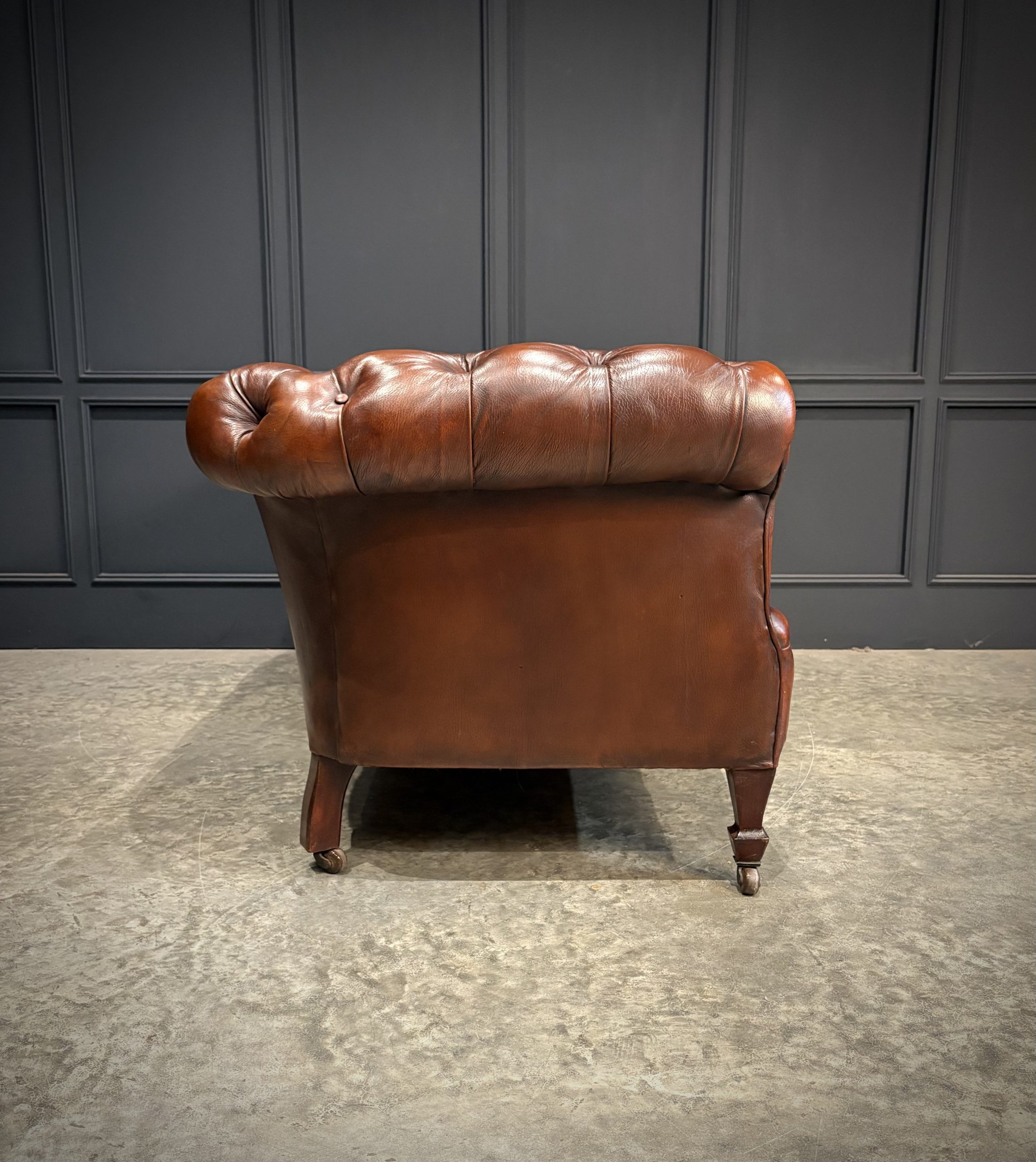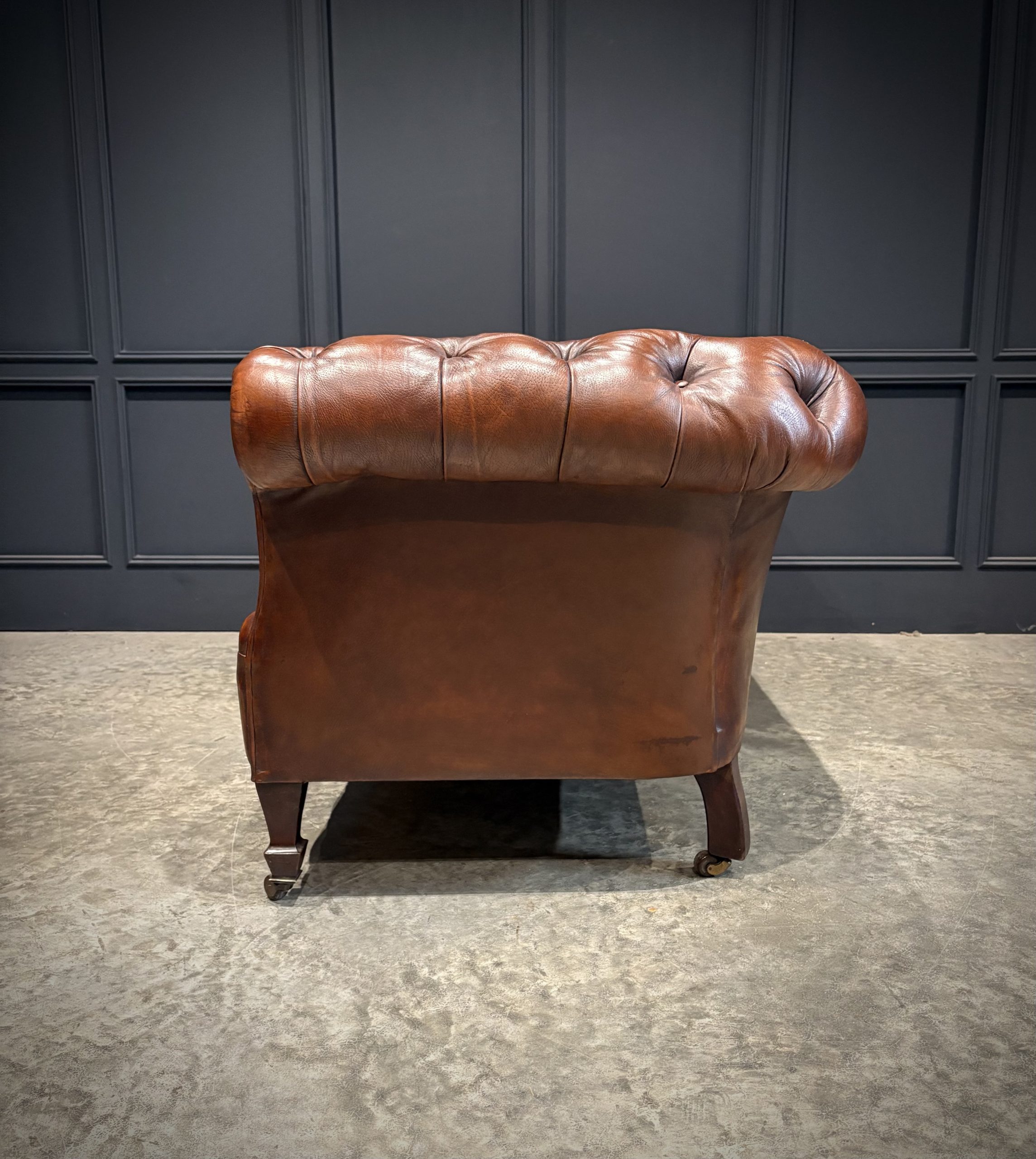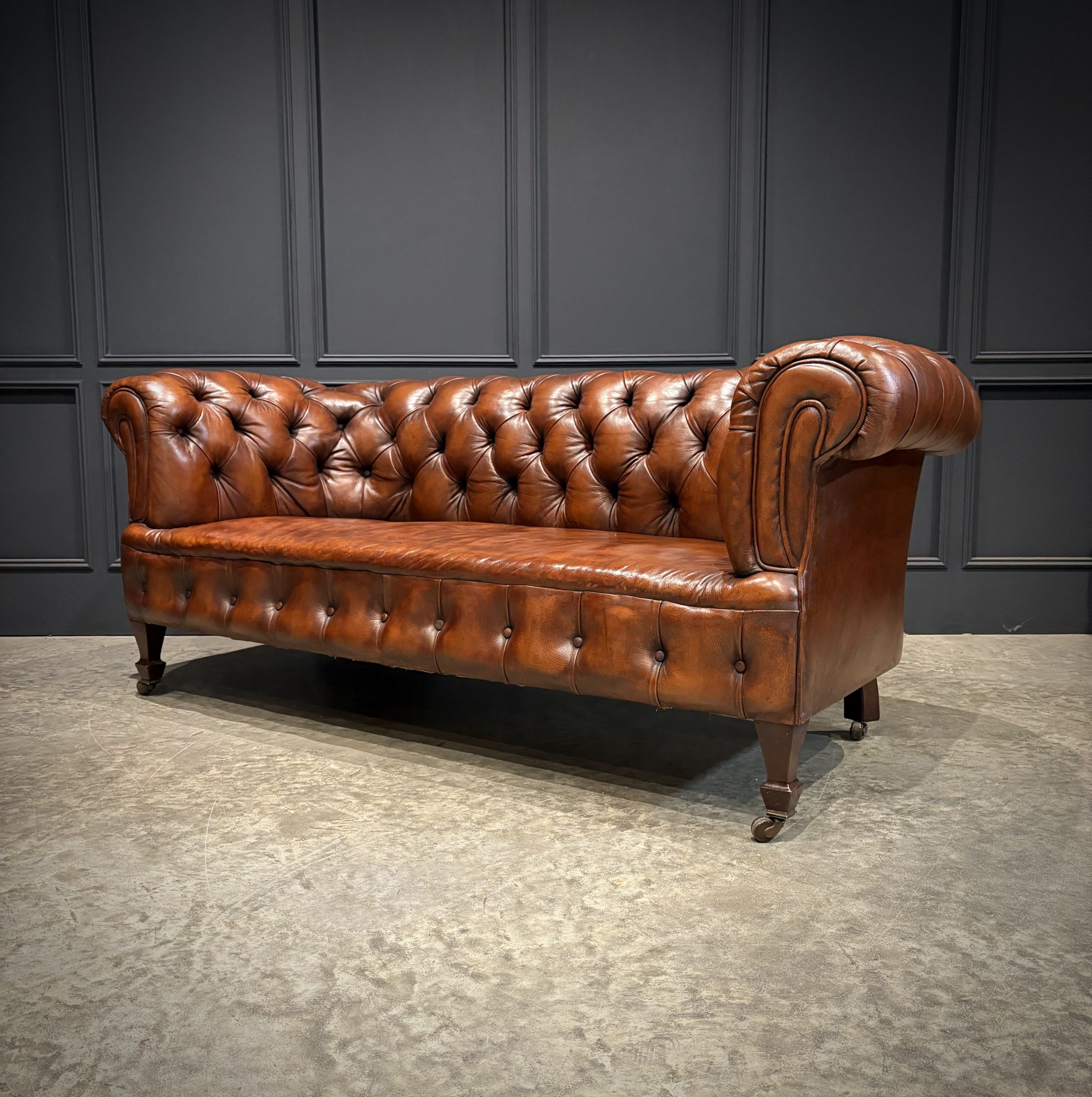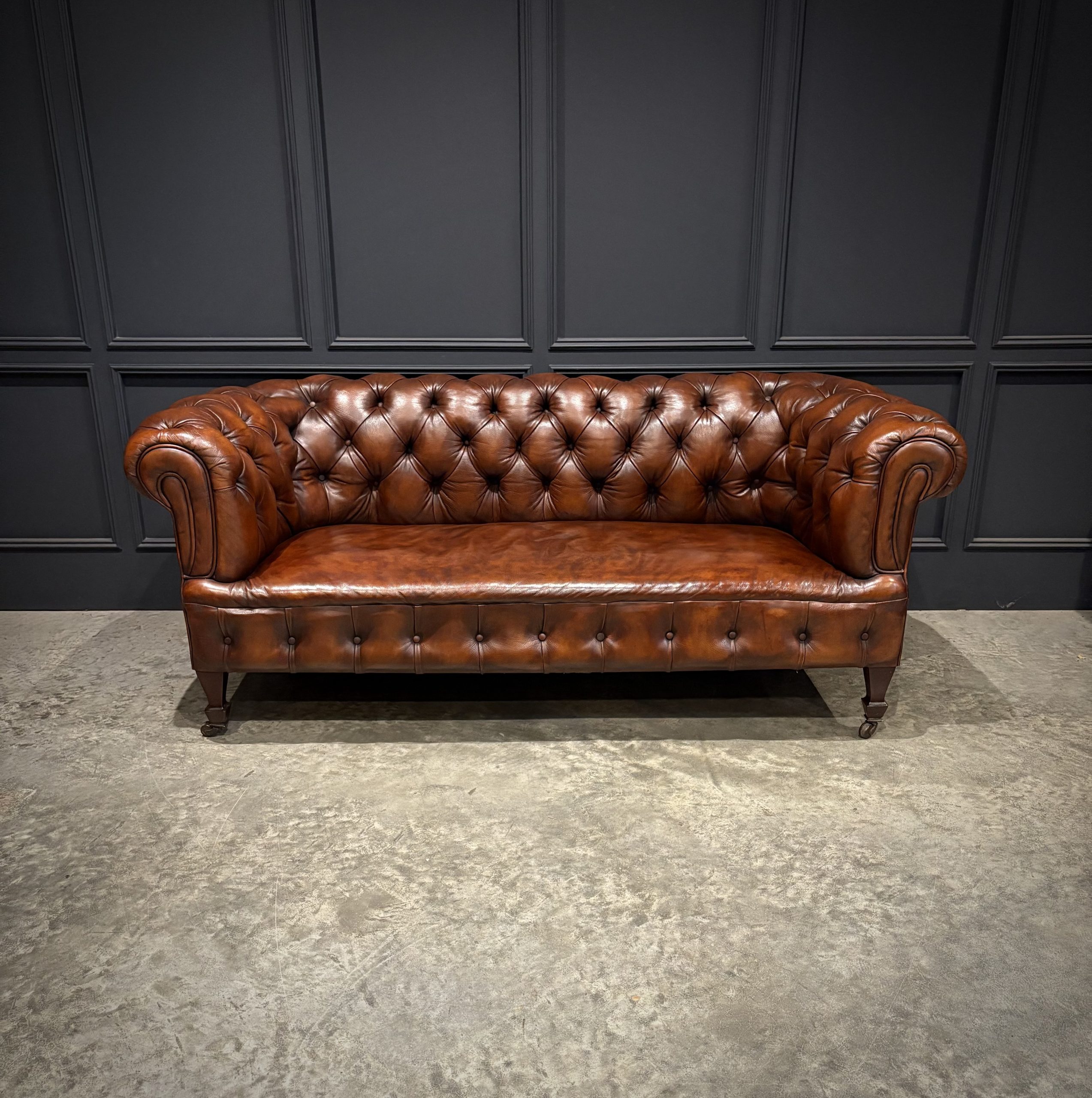 A fine example of a genuine Victorian buttoned Chesterfield sofa, beautifully refurbished and upholstered in hand-dyed tobacco brown leather.