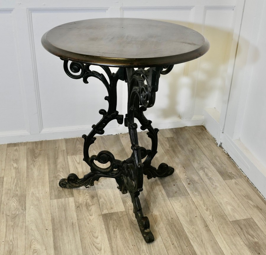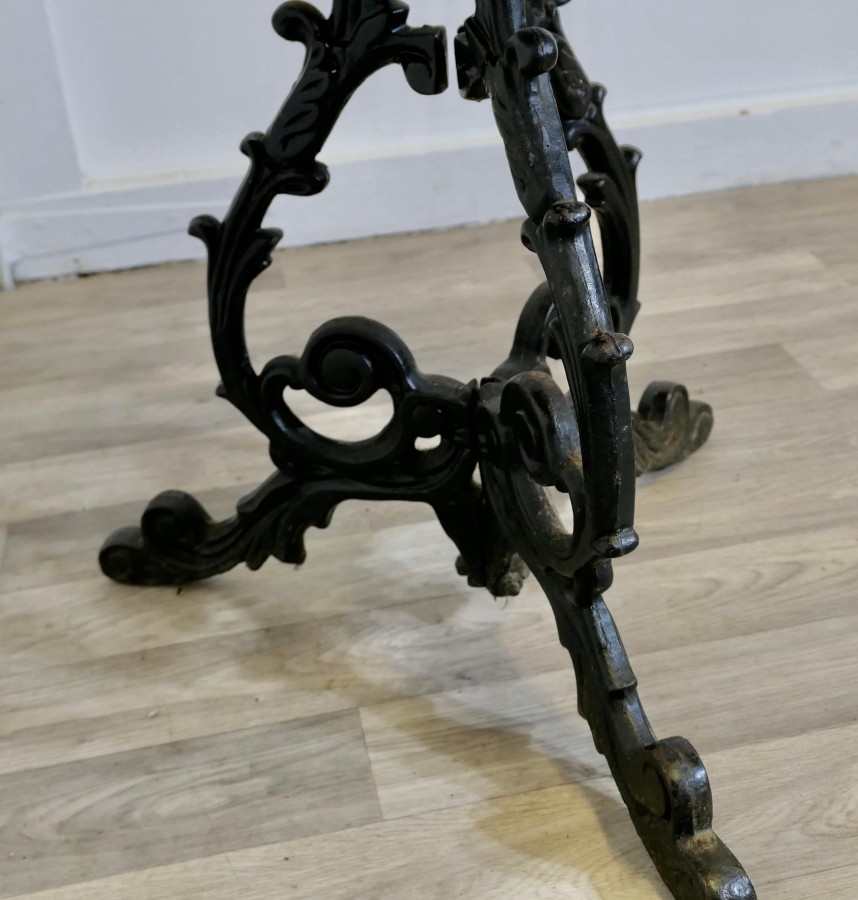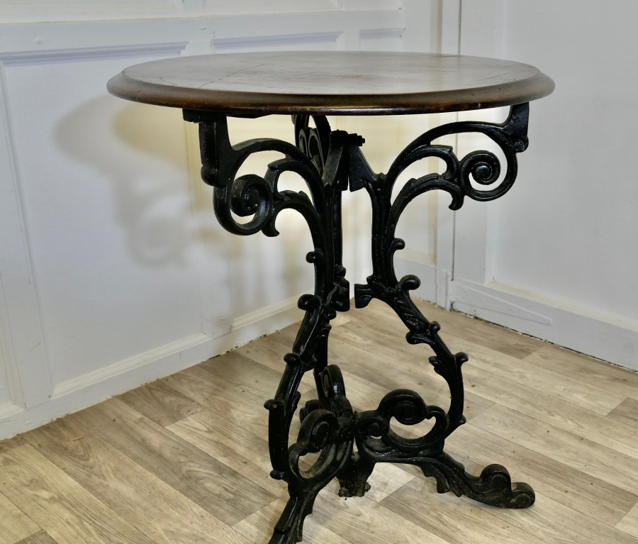 Victorian Cast Iron Scroll Work Occasional Table This lovely table stands on a very attractive heavy iron 3 footed scroll work base The table is in good sound condition it stands 27” high and it is 23” in diameter ZX49 Manufacture Date : 19th century Materials : Iron