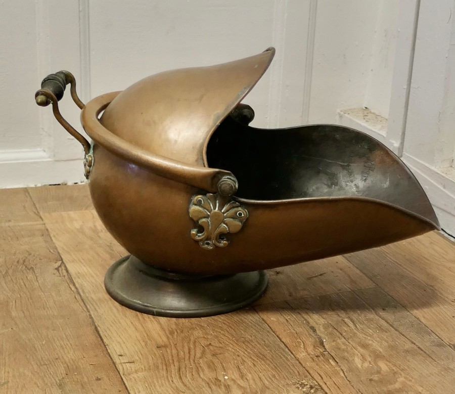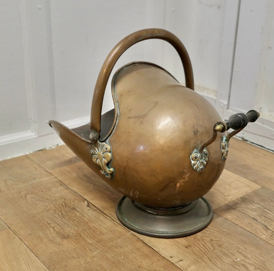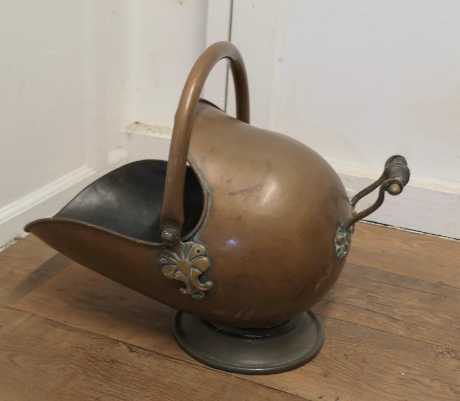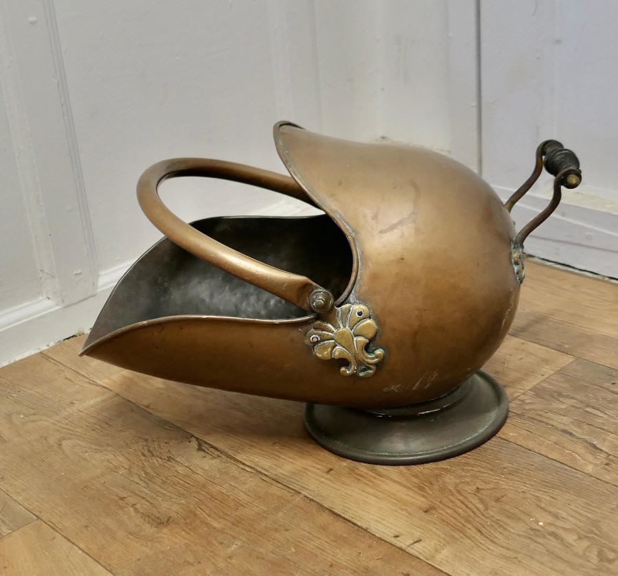 Victorian Copper Helmet Coal Scuttle This bucket is a very attractive Enclosed Oval shape, it is made in hand beaten Copper with a hooped handle The Scuttle is in good used condition, it has no faults just lots of character and is ready to go to work and grace your fireside at the same time The Bucket is 13” tall, 21” long and 12” wide SW183 Manufacture Date : 1850 Materials : Copper