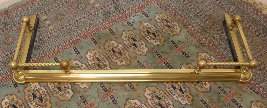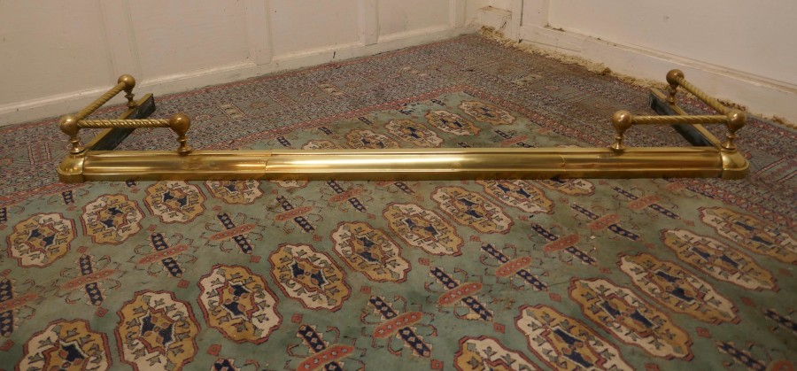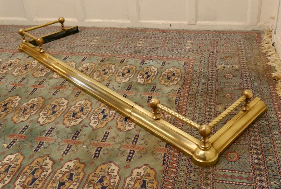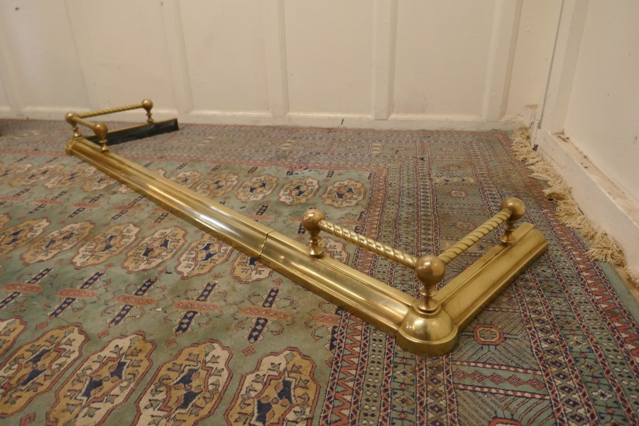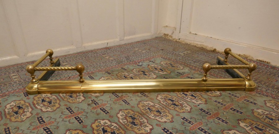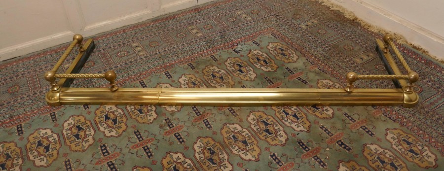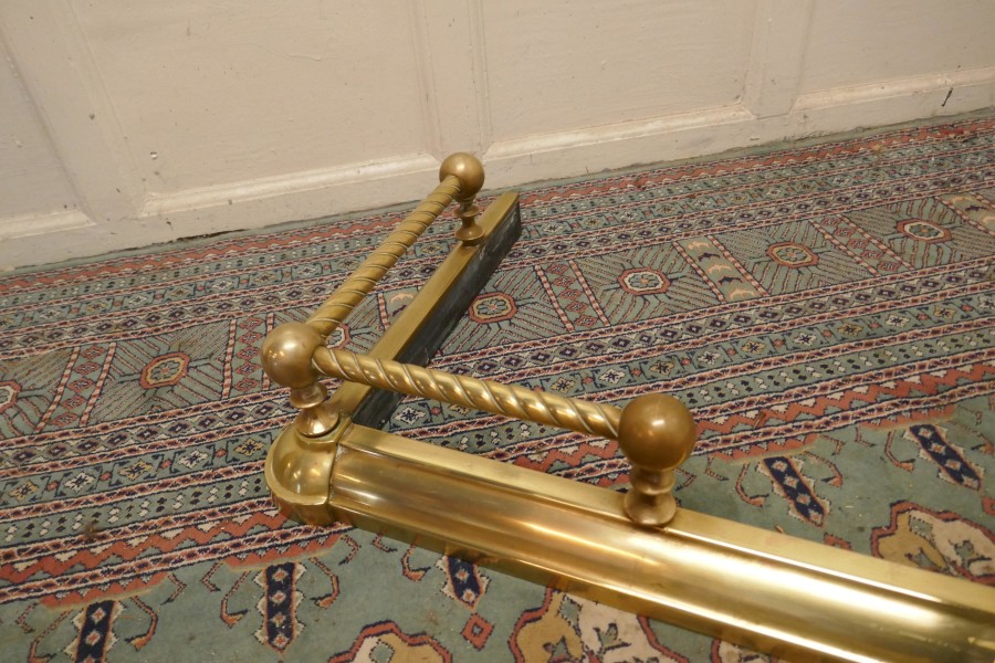 Victorian extending barley twist brass fender This is a very attractive brass fender it has a simple brass base with a barley twist brass rail above and small decoration to the corners of the base The fender is in very good condition it is 6” high, 50” to 62” long and 18” deep NV104. Manufacture Date : 1880 Materials : Brass