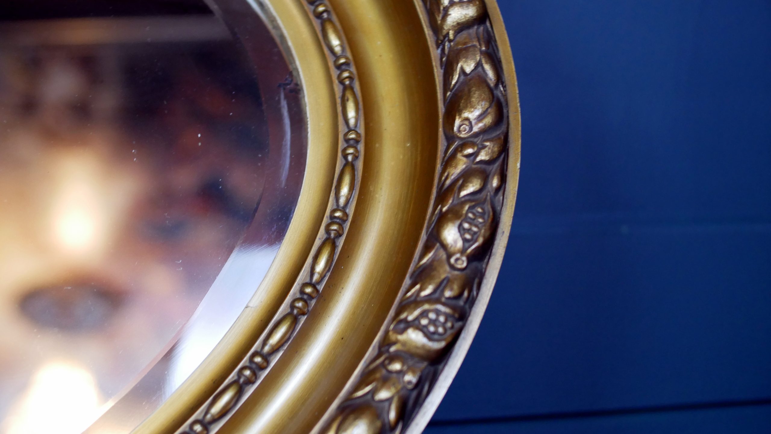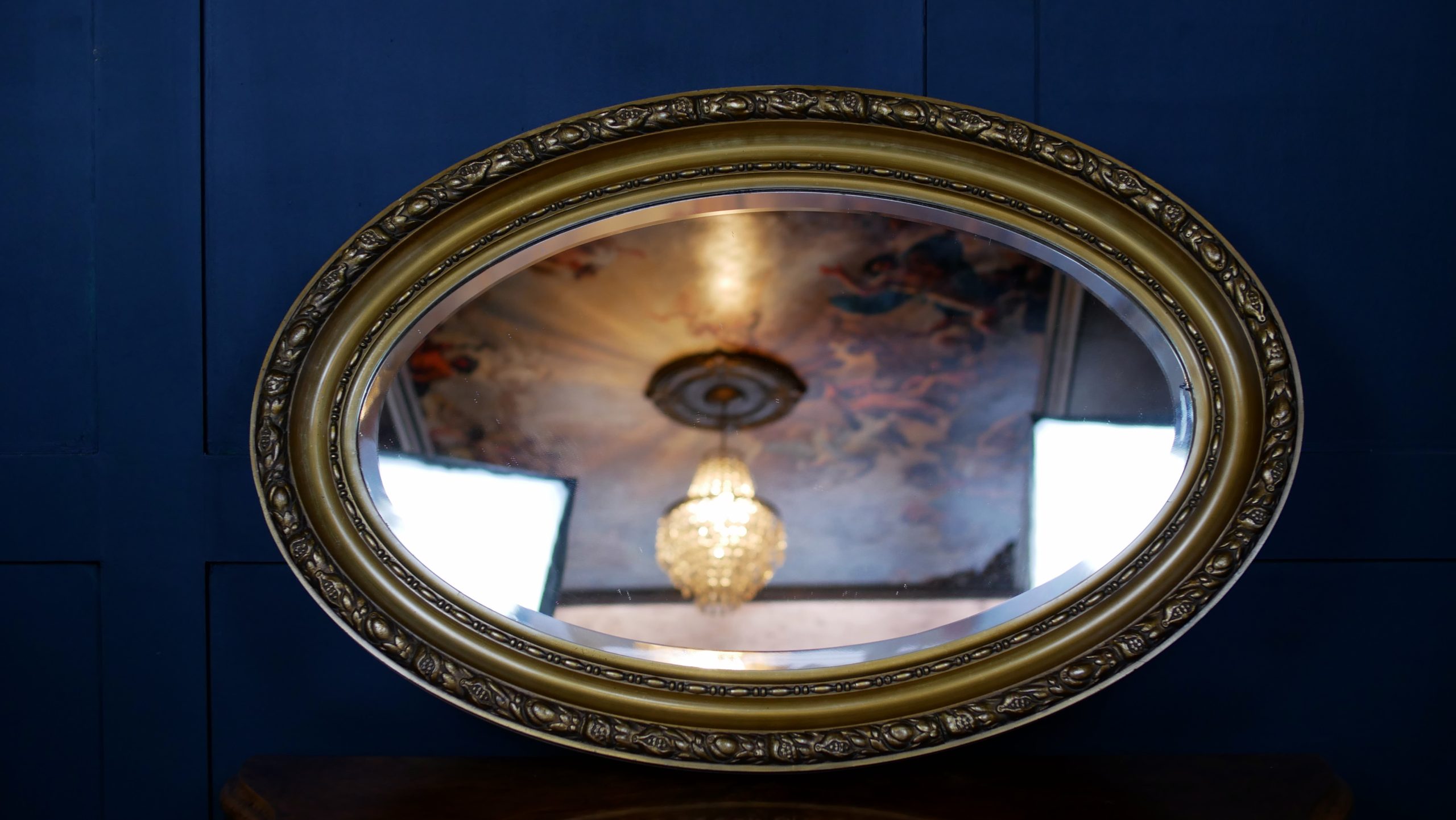 Add a touch of refined history to your home with this beautiful late 19th-century Victorian oval mirror. Perfectly proportioned for an entryway console, powder room, or bedside vanity, this piece captures the romantic, storied aesthetic of the Victorian era.