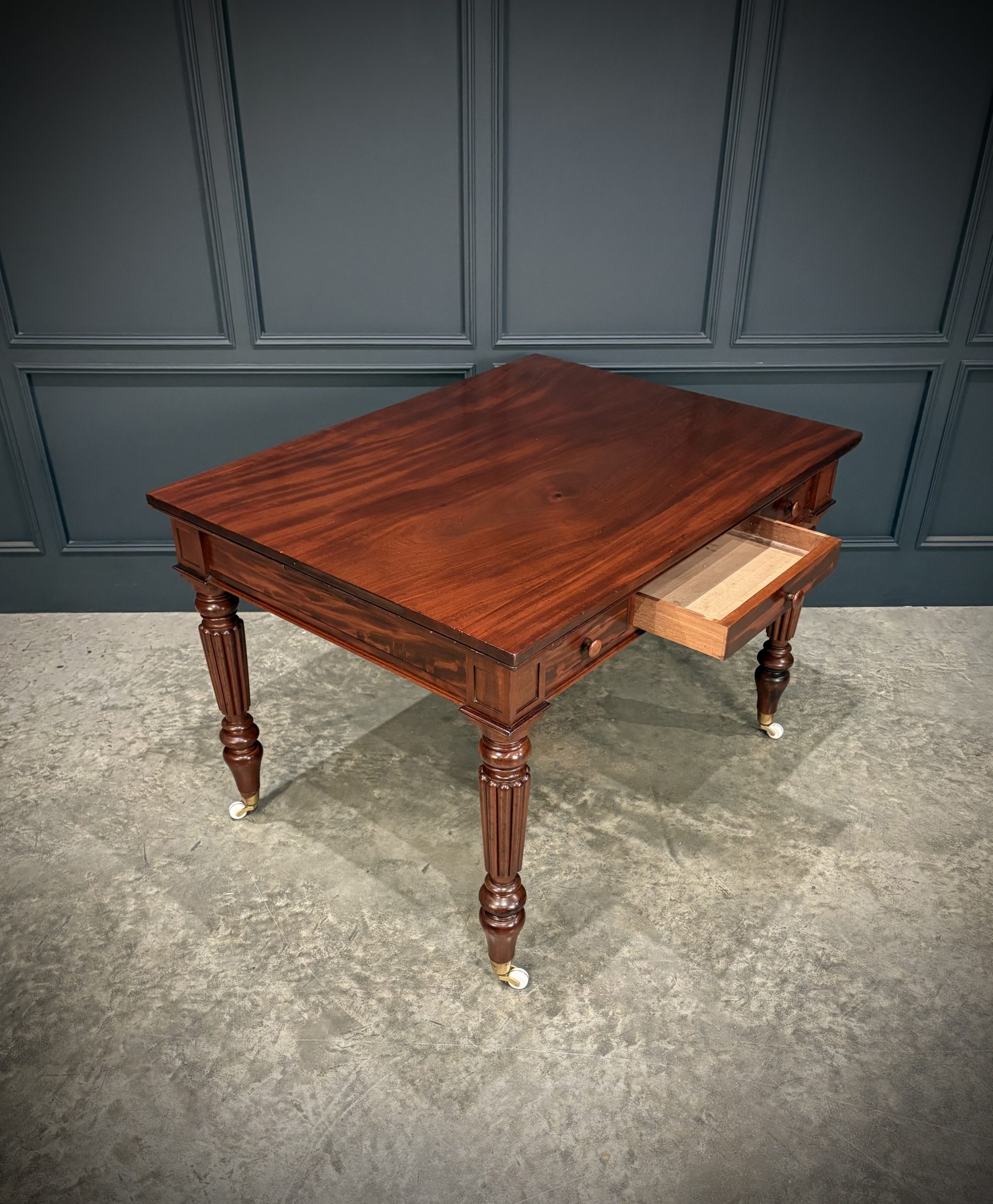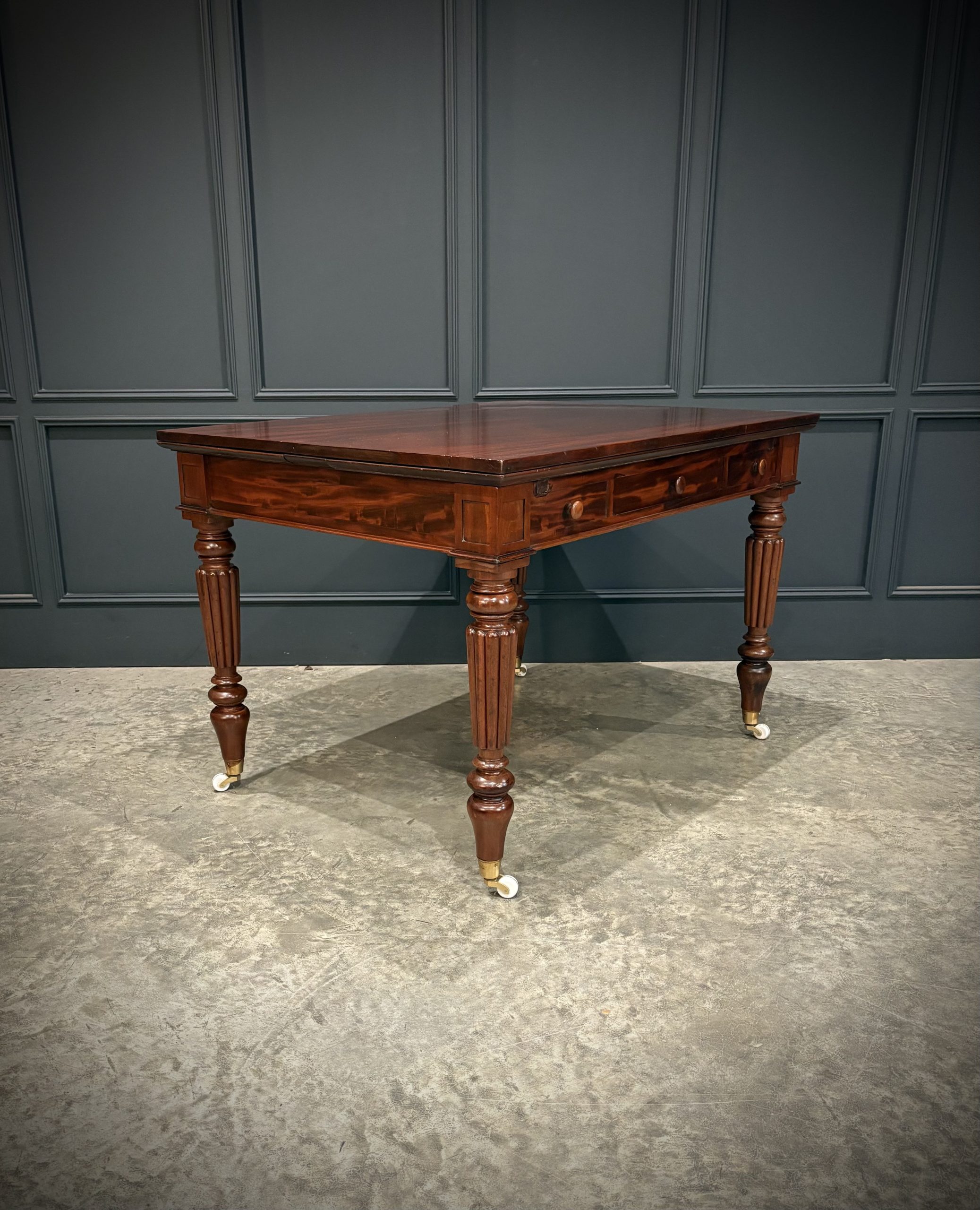 A rare and attractive early Victorian mahogany extending writing table, circa 1840, of notably fine quality and very much in the manner of Gillows.