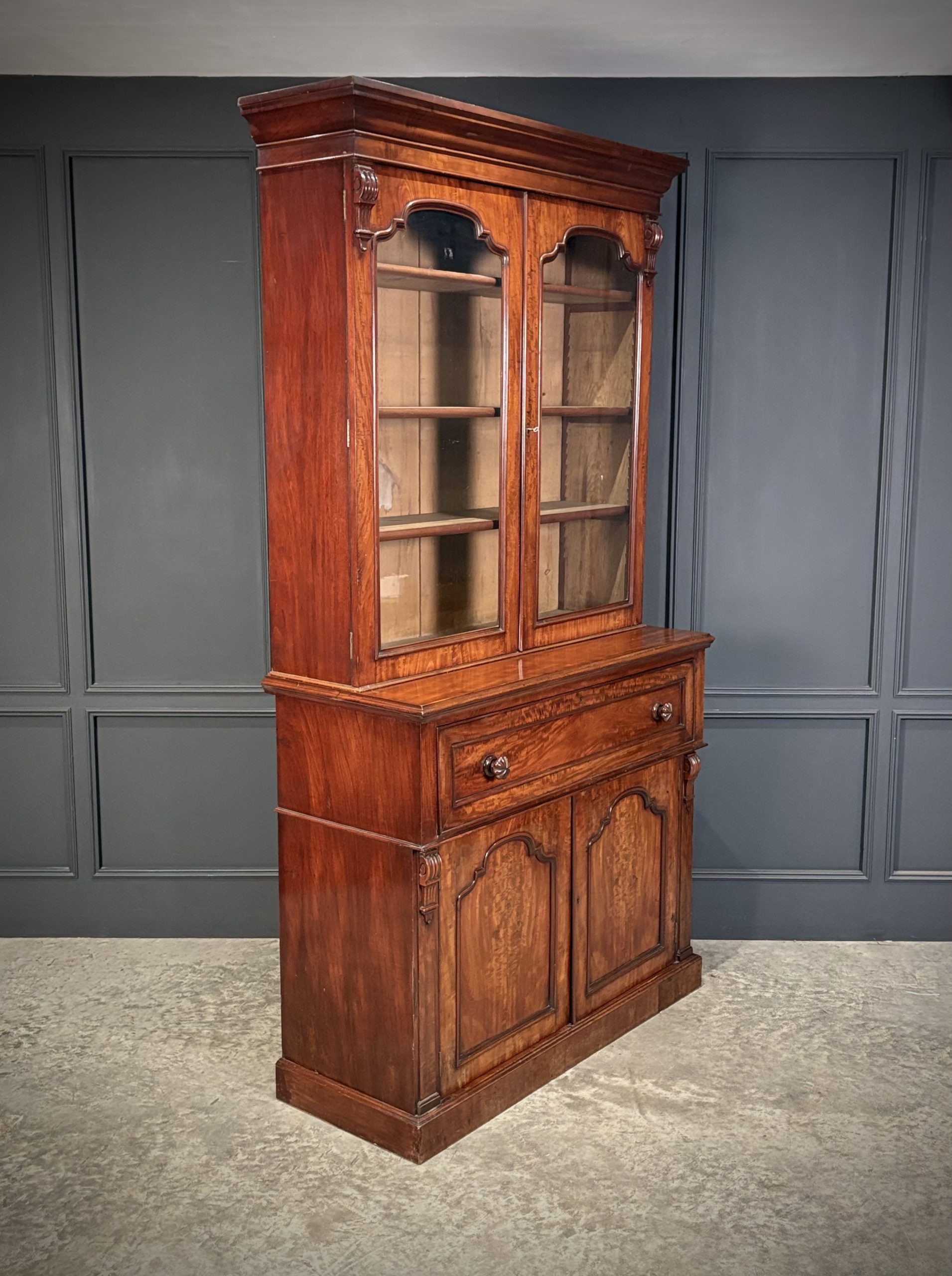 A handsome Victorian mahogany secretaire bookcase in very good condition, presented in two sections for ease of transport.