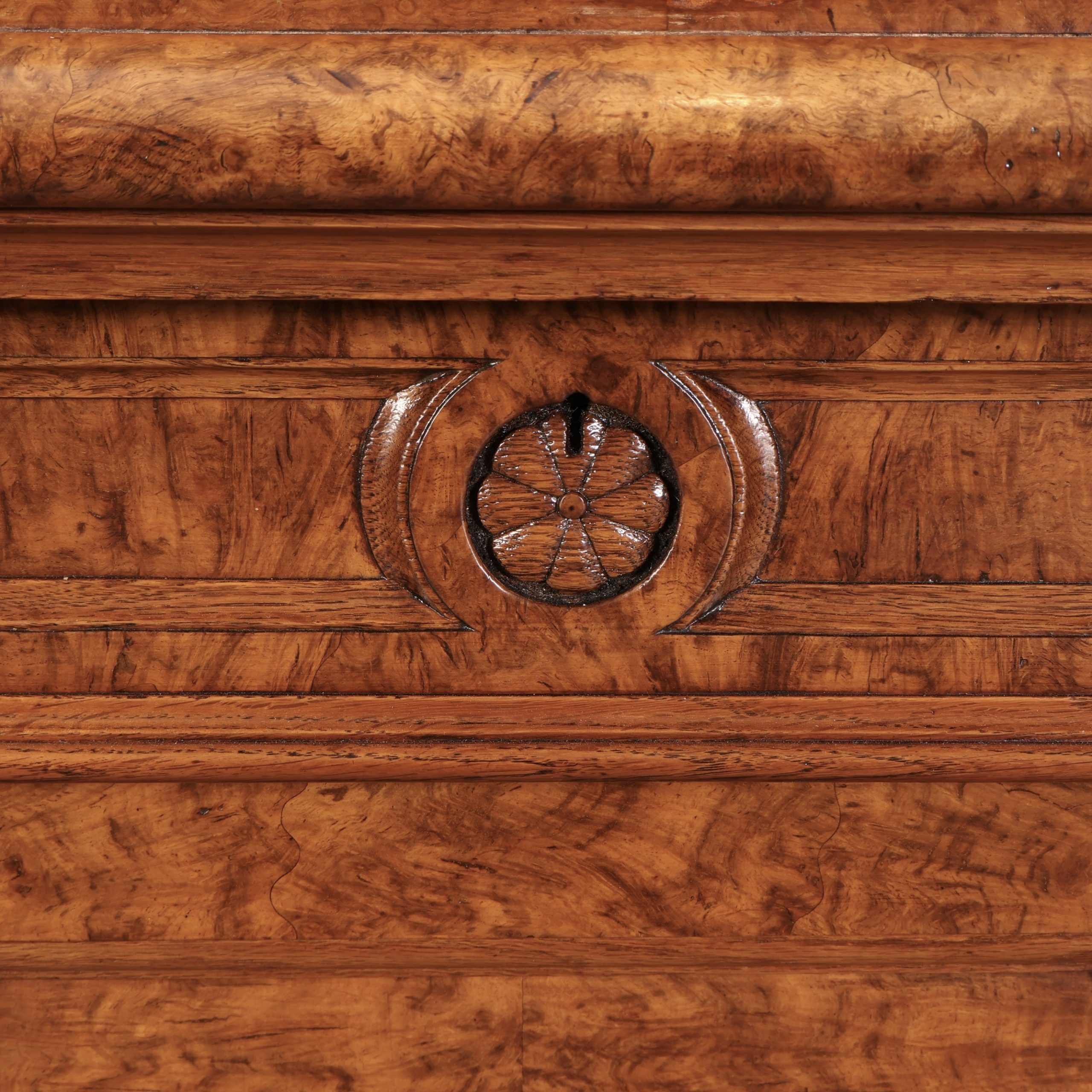Exquisite carved embellishments adorn the uprights, including floral roundels and trailing foliage motifs.
