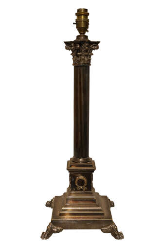 A superb Victorian silver plated Corinthian column table lamp, dating to circa 1880, of elegant and classical design.