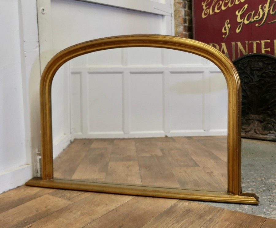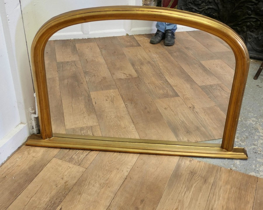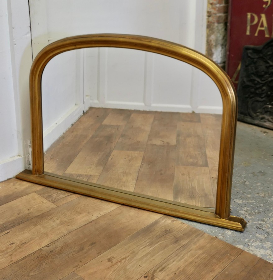 Victorian Style Arched Gold Overmantel Mirror A Lovely Over Mantle Mirror This is a charming piece, the 3” arched moulded frame is lightly curved with a flat base The Mirror is in good attractive condition The Mirror is 31” high, 47” wide, and 3” deep at the base TSC245 Manufacture Date : 1960 Materials : Giltwood