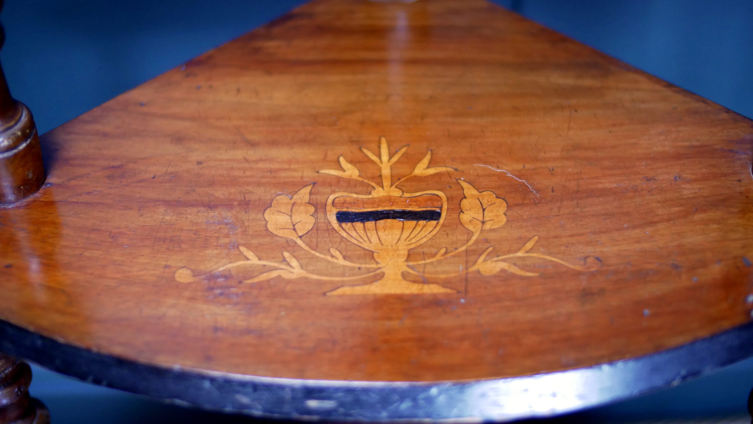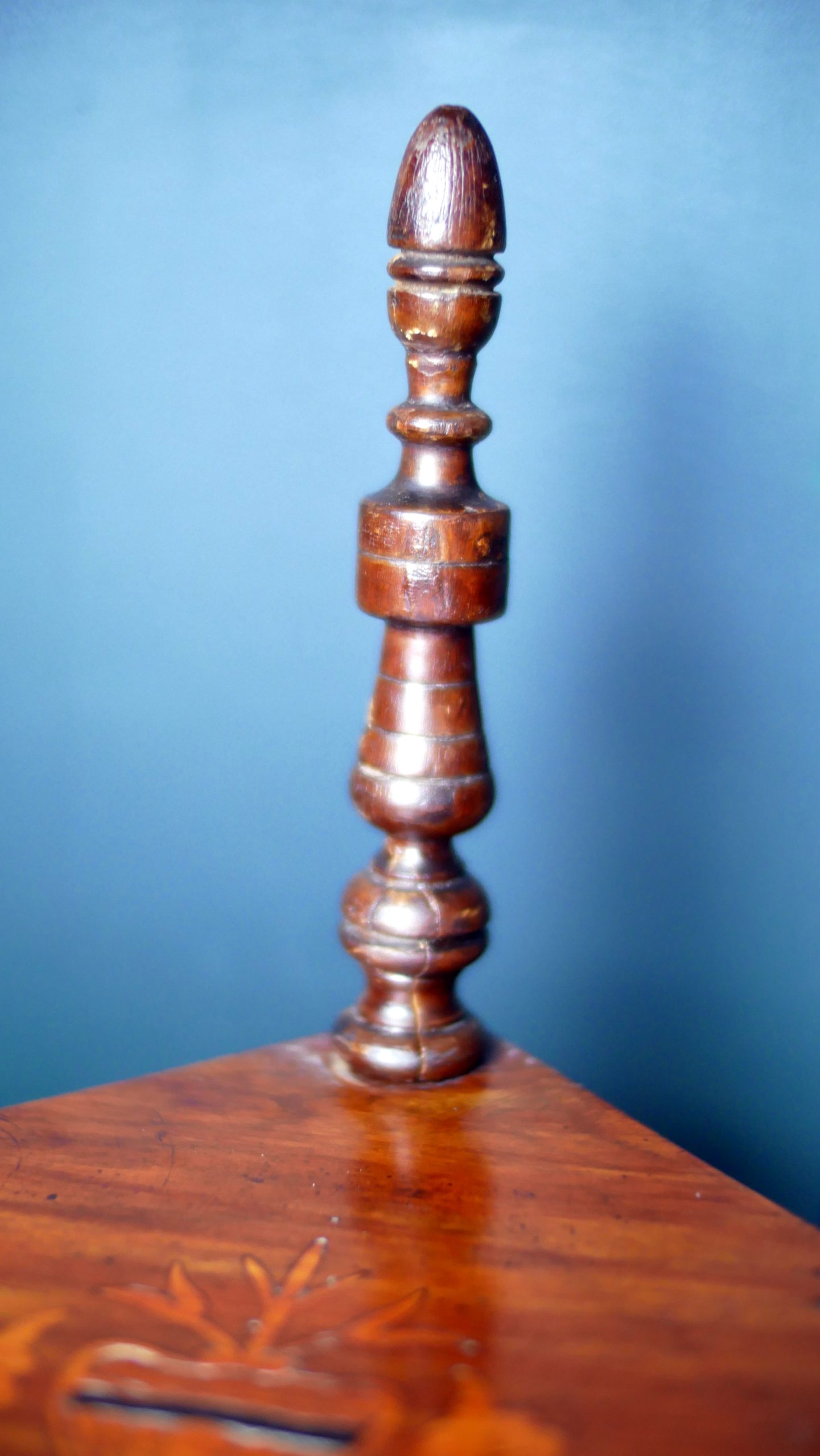 This piece has been beautifully preserved, retaining its original structural integrity and a deep, authentic patina. The delicate inlays remain crisp, and the barley-twist carvings are sharp and well-defined, standing as a proud example of Victorian joinery.