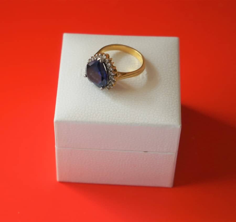 Vintage Gold Blue Sapphire Heart Shaped Ring – Boxed