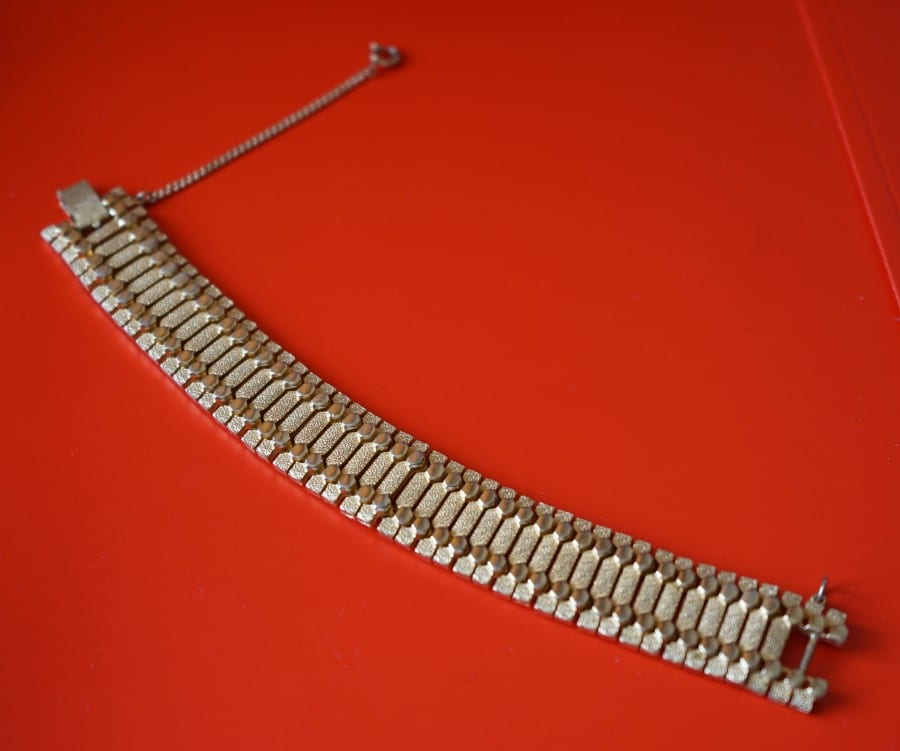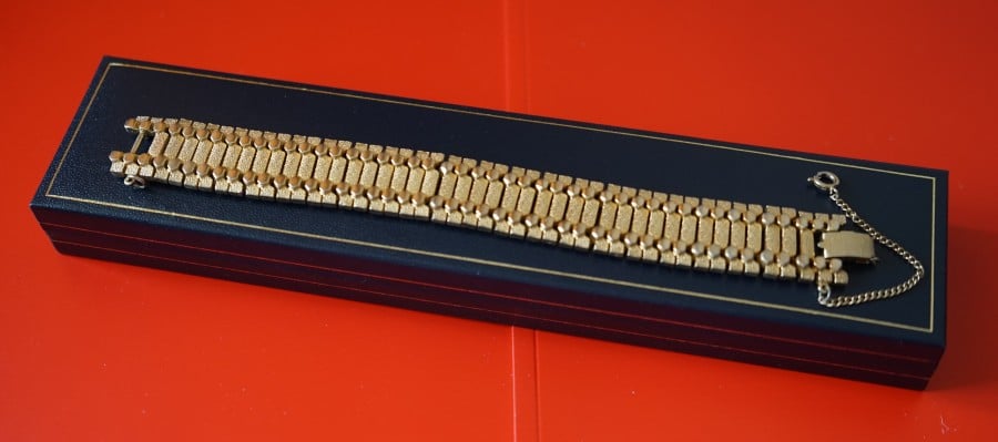 Vintage Quality Ornate Wide Gold Plated Bracelet with Safety Chain Boxed – Ideal Gift