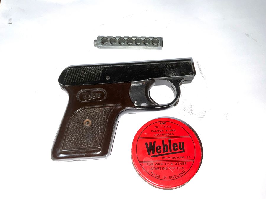 Pistols in good working order and condition comes with the hard to find WEBLEY Tin of blanks, offering free delivery UK reference DR6. Tel: +44 7505 165 843 We accept online payments for all our items listed: Bank transfer cash on collection or if wishing over the phone using your debit or credit cards, also doing layby payments plan, or email giving your address details & contact number and we shall send you your items invoice to make payment with your card. Send your request to – john.strong2@gmail.com