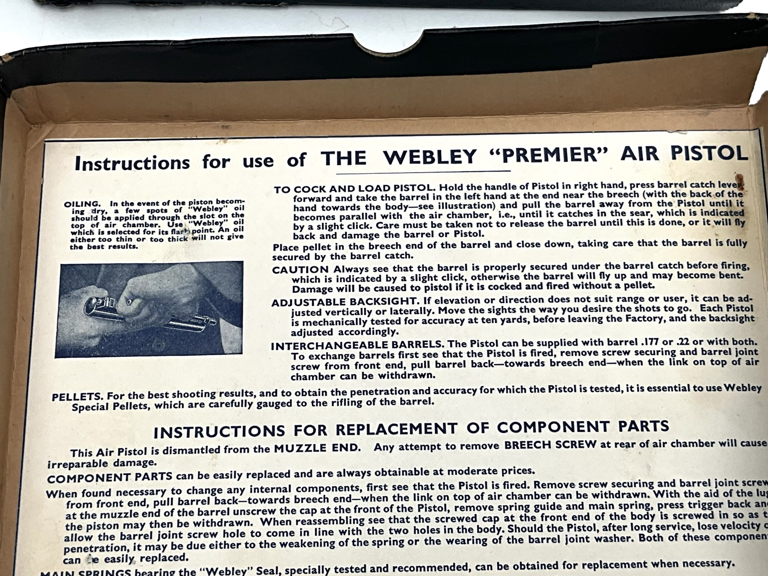 WEBLEY PREMIER .22 PISTOL ORIGINAL BOX
