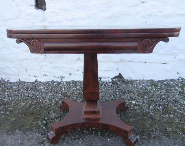 Superb William 1V rosewood fold over card table. With a dark rosewood crossbanded top.