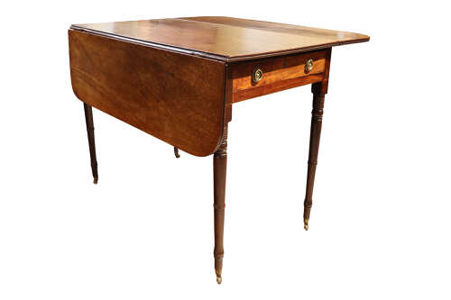 The table stands on slender, finely turned legs and castors —a hallmark of early 19th-century design. The compact size and versatile design make it ideal as a side table, lamp table, or occasional writing desk in both period and modern interiors.