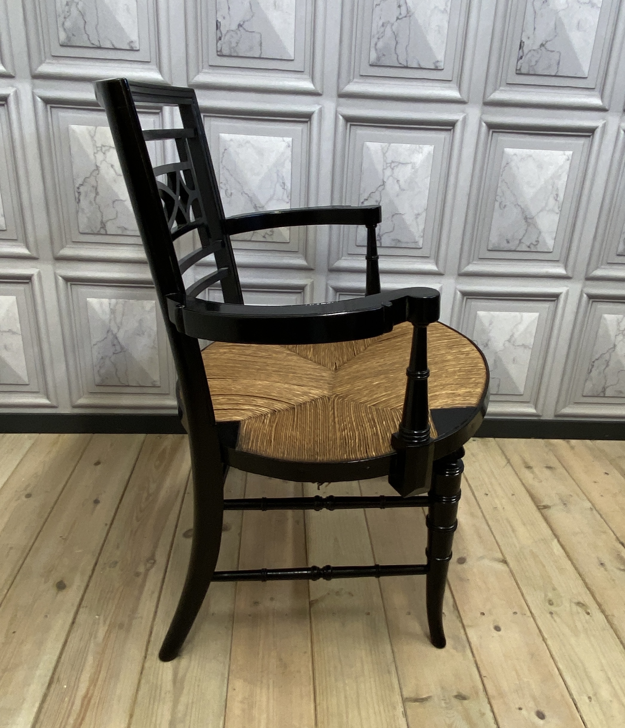 Designed with inspiration from earlier chairs commonly found in Sussex, the style of chair soon became iconic in the Arts and Crafts era.