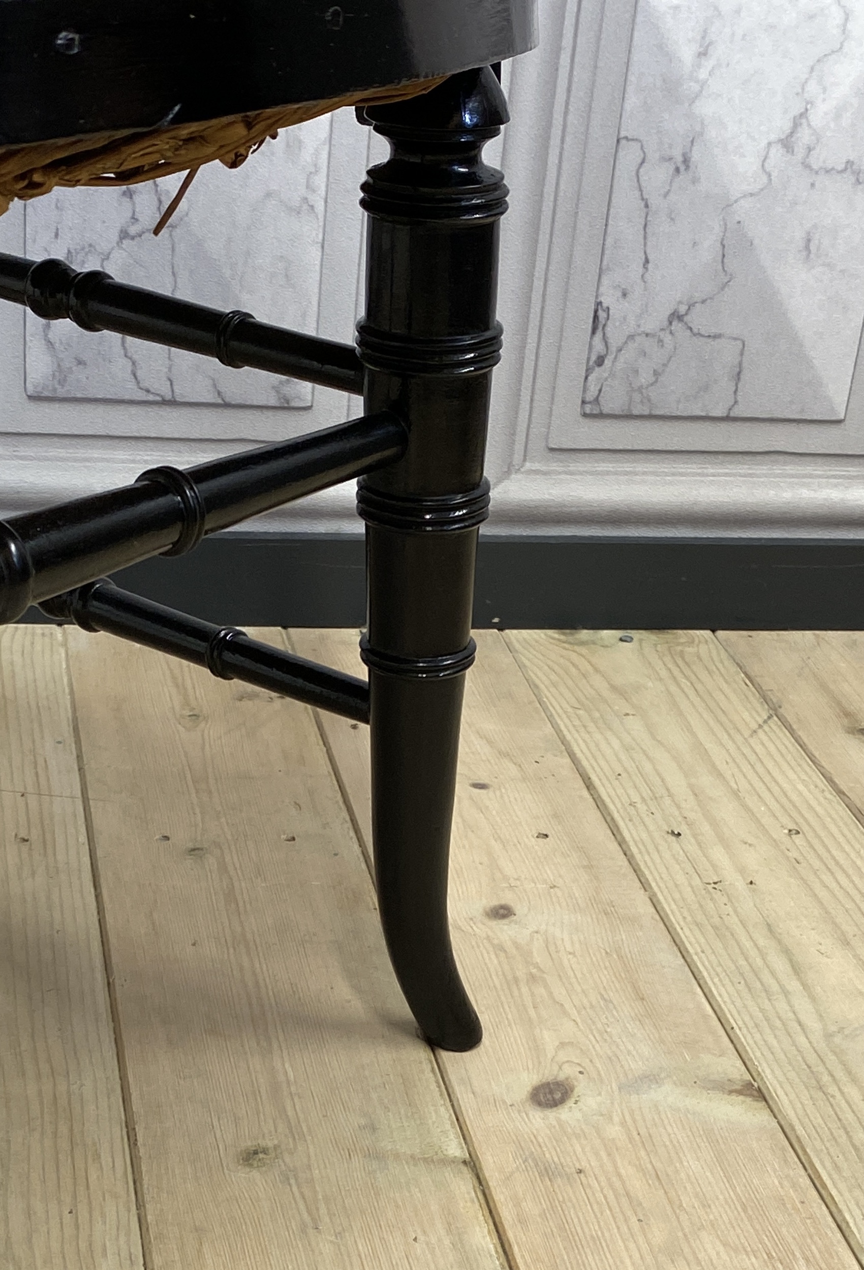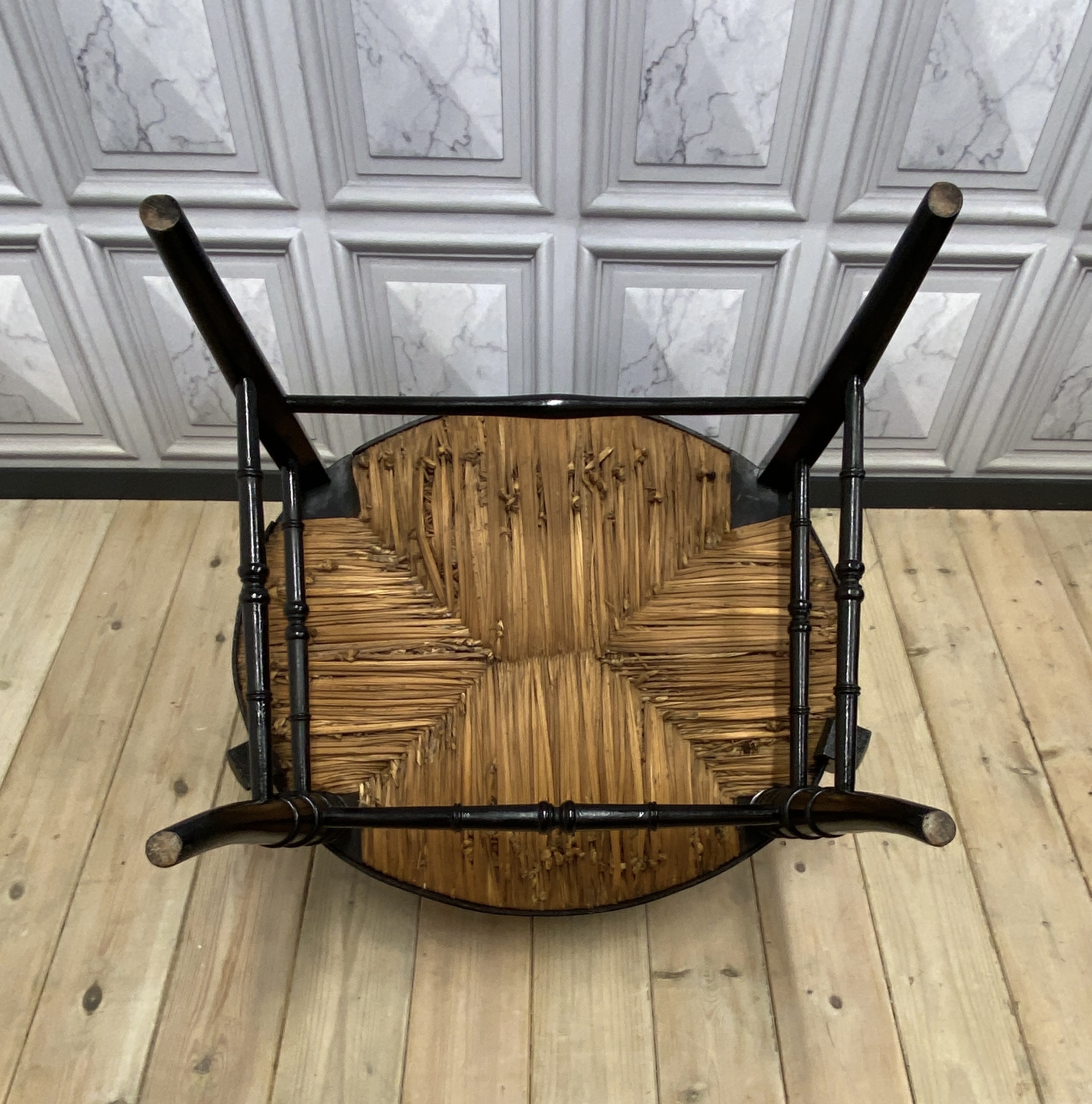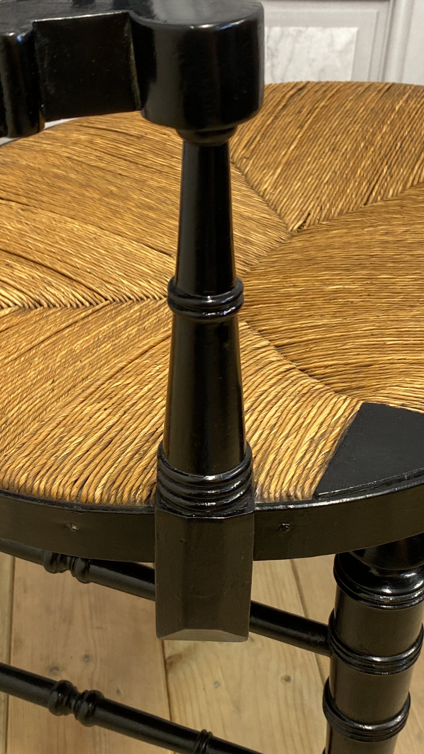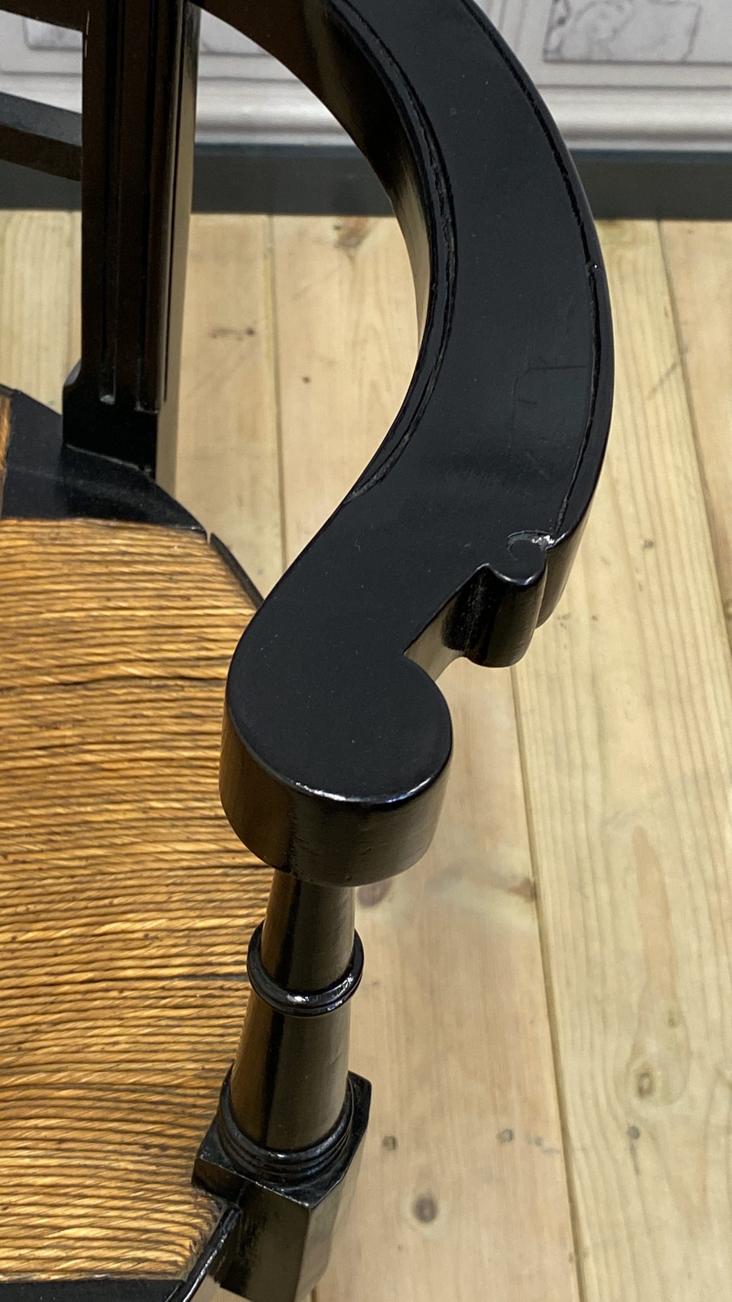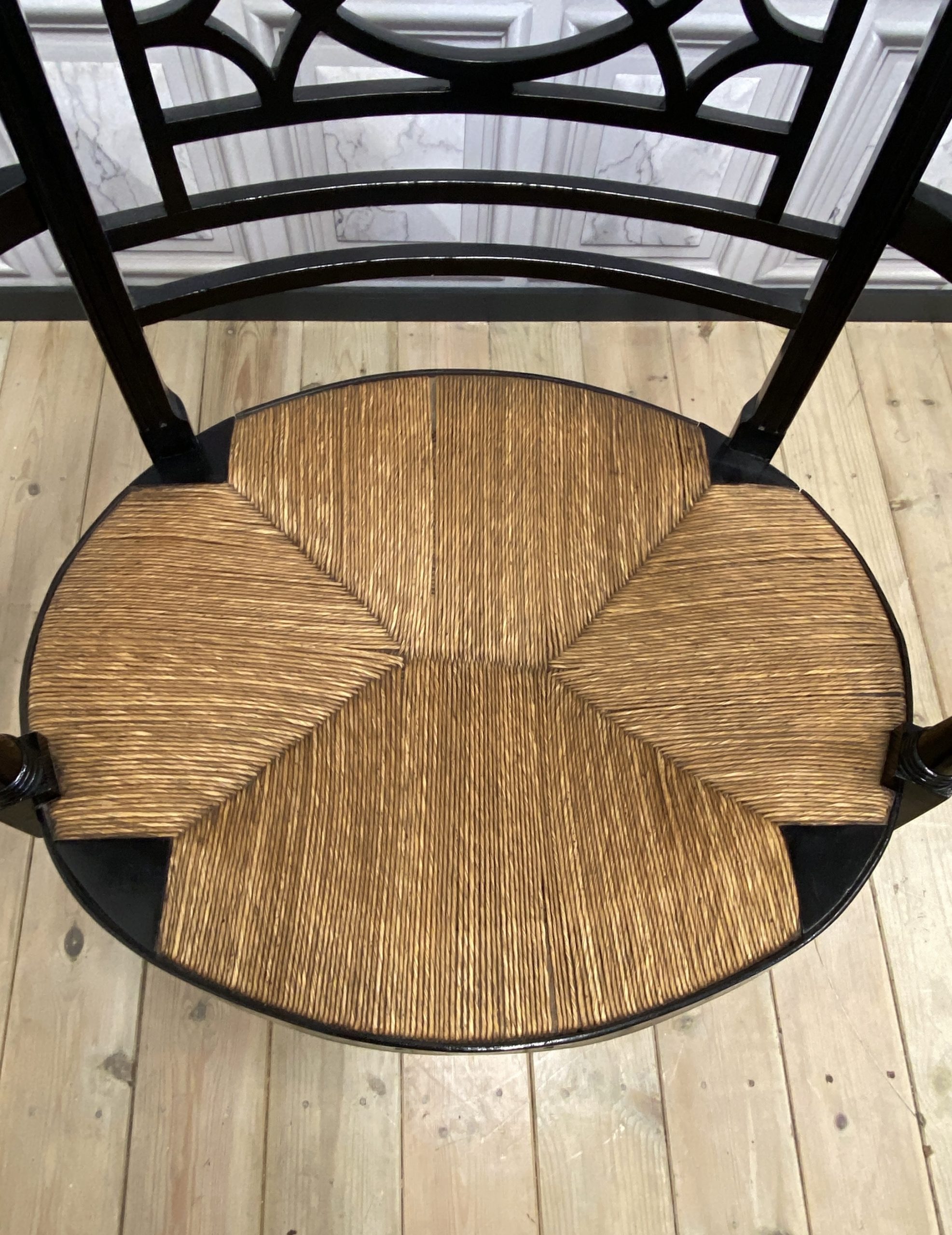 Very nice condition with only one strand of rush broken (see photos)