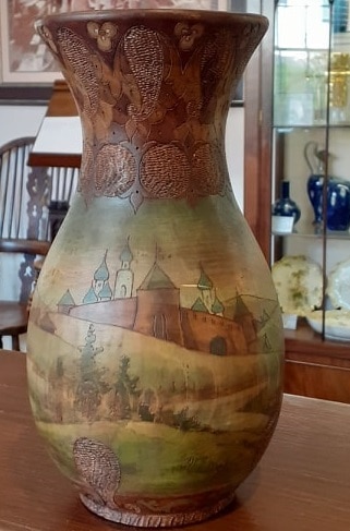 This is a unique Russian folk vase. Made from Wood. Hand carved and painted.