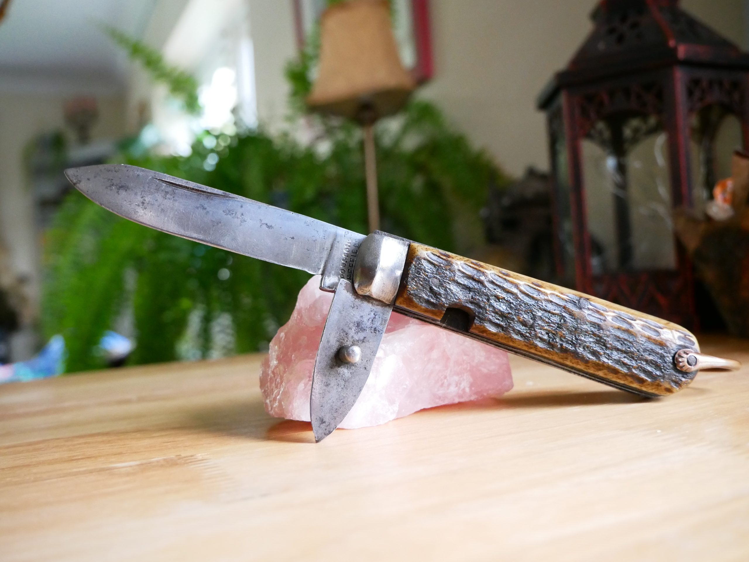 Woods and Sons WW1 era Bone Handle Pocket Knife with Blade & Tin Opener