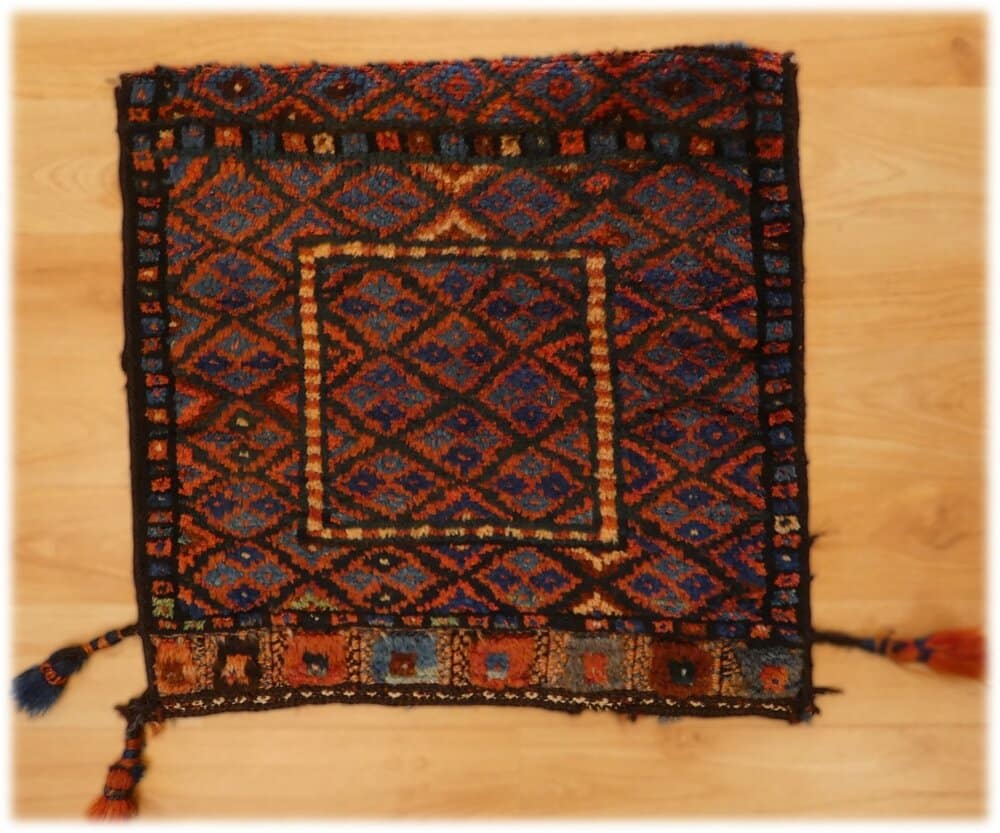 This pretty bagface, handmade in the 1900’s with soft natural wool on wool, has an interesting detail, highlighted with bold colours derived from all natural dyes.